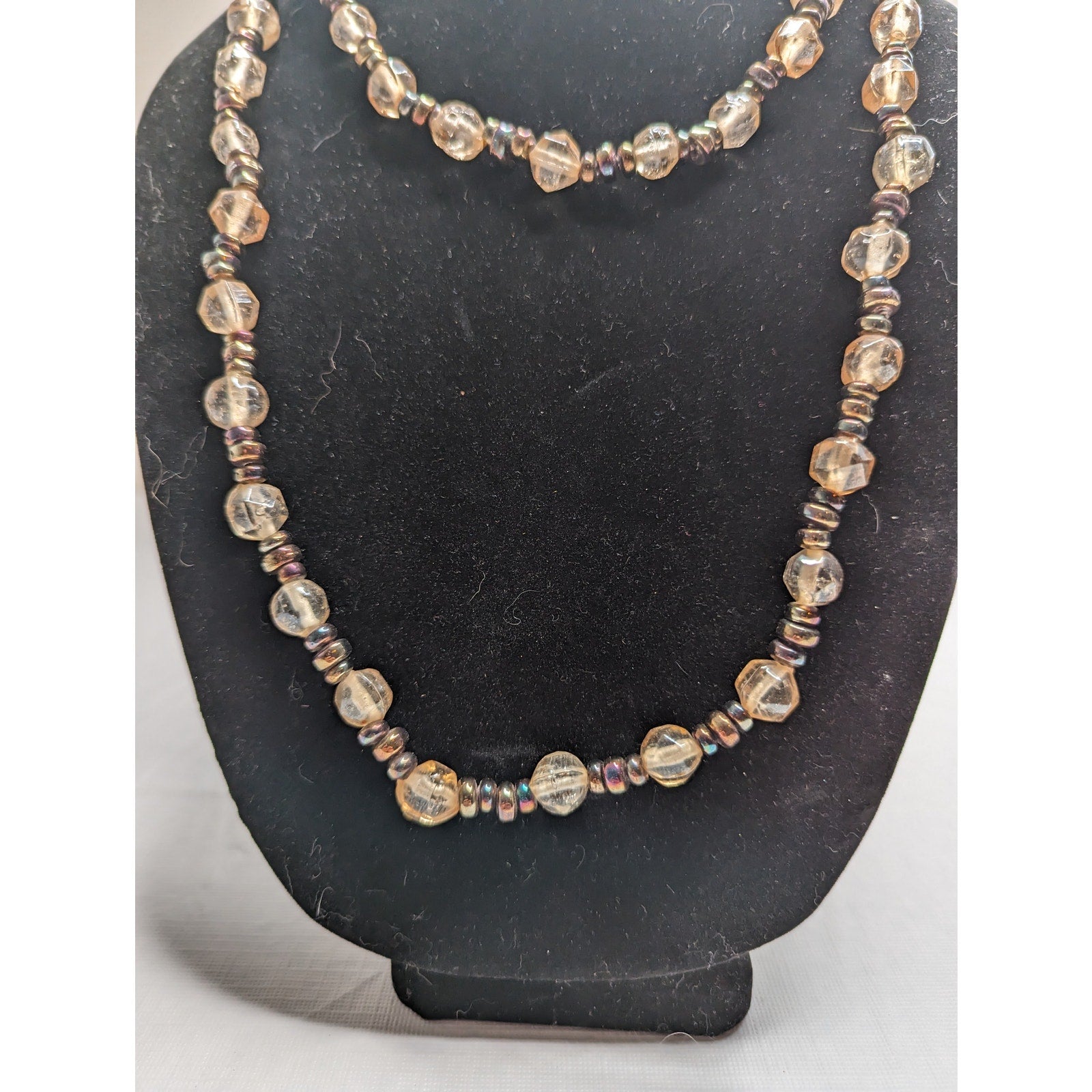 Vintage Mid Century Geometric Glass Single Strand Beaded Necklace