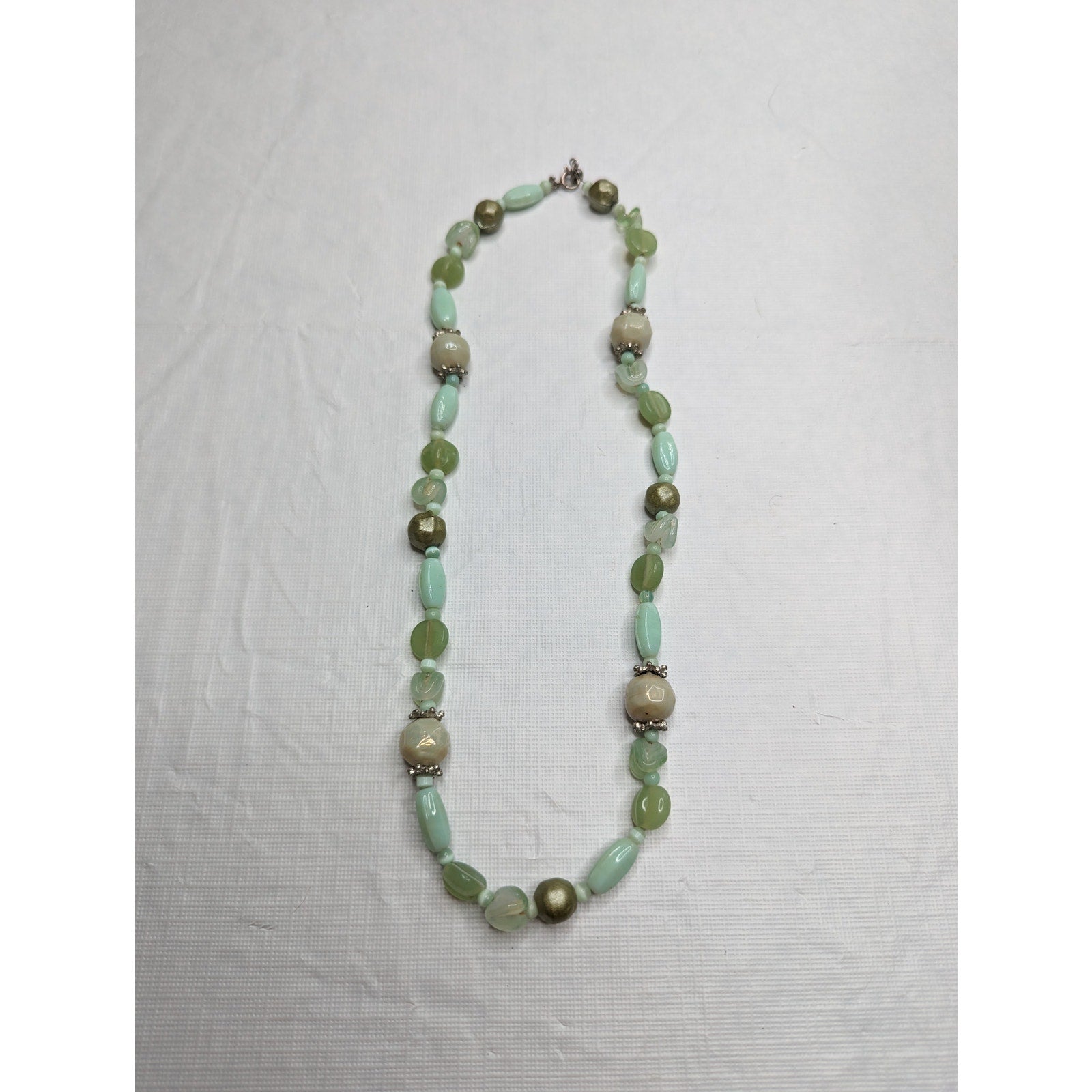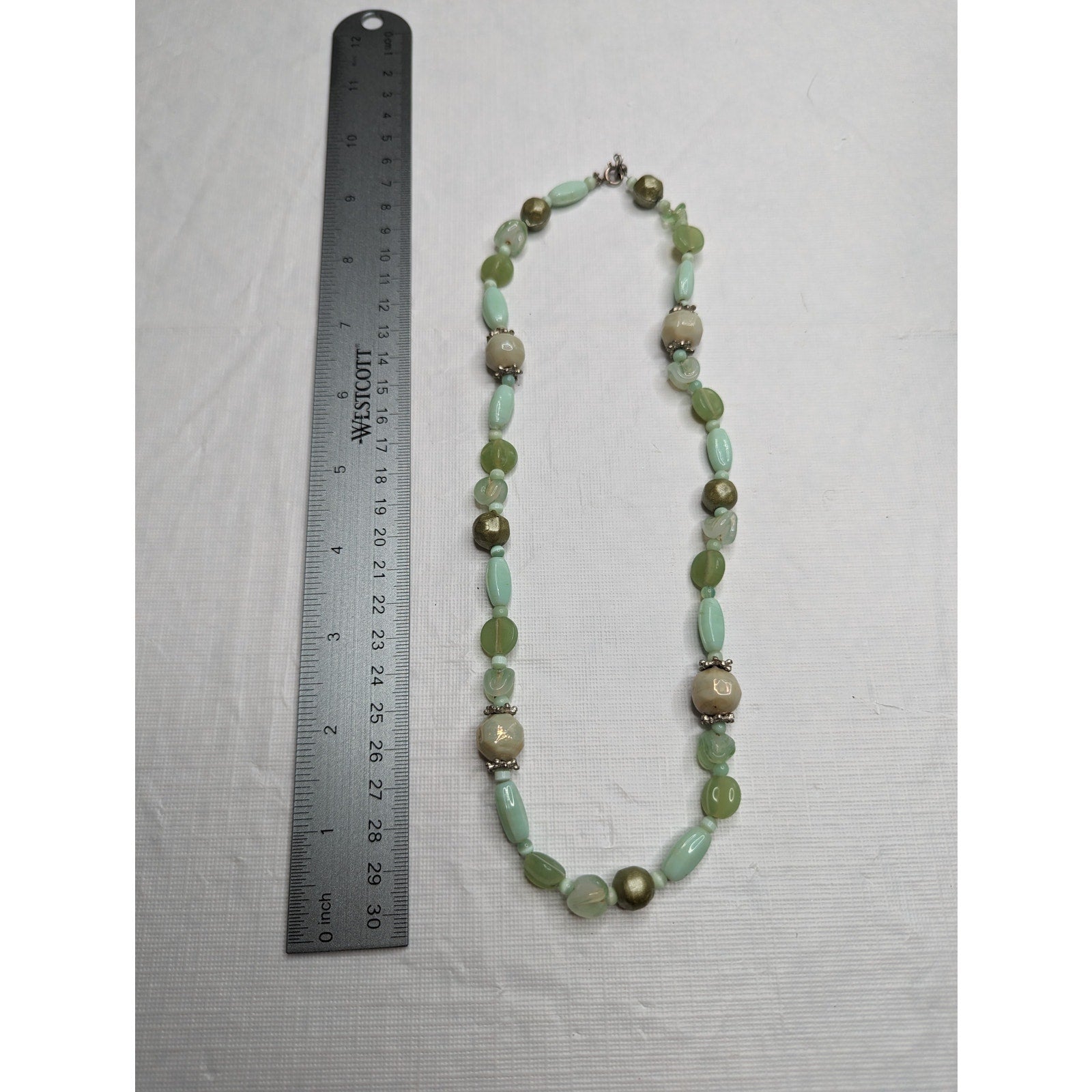 Vintage Mid Century Glass Beaded Single Strand Necklace Seafoam Green