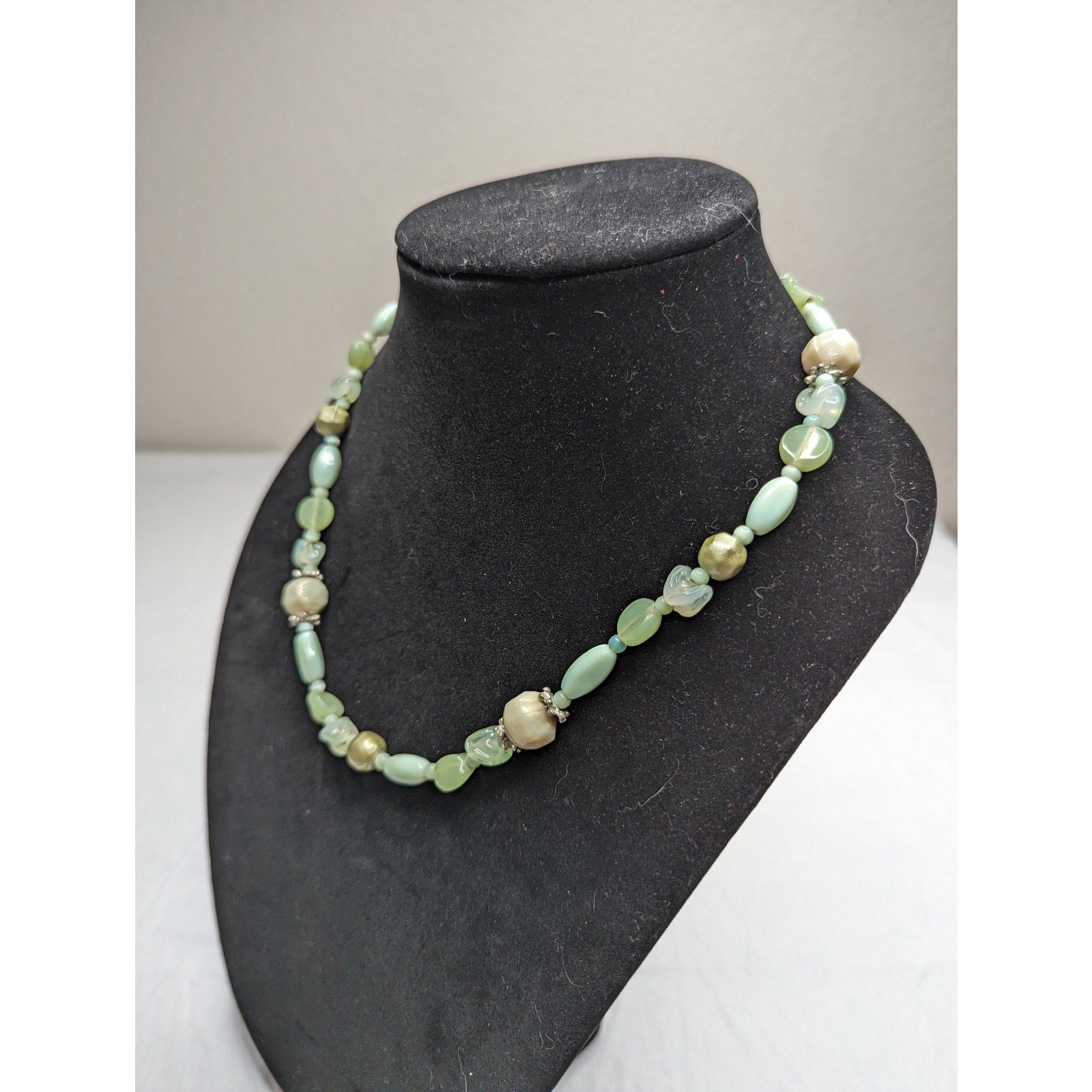 This vintage mid-century necklace is a stunning piece of jewelry. The single strand is made of seafoam green glass beads that shimmer in the light. This necklace would make a great addition to any jewelry collection, especially for those who love artist dolls. The necklace is perfect for any occasion, from casual outings to formal events.