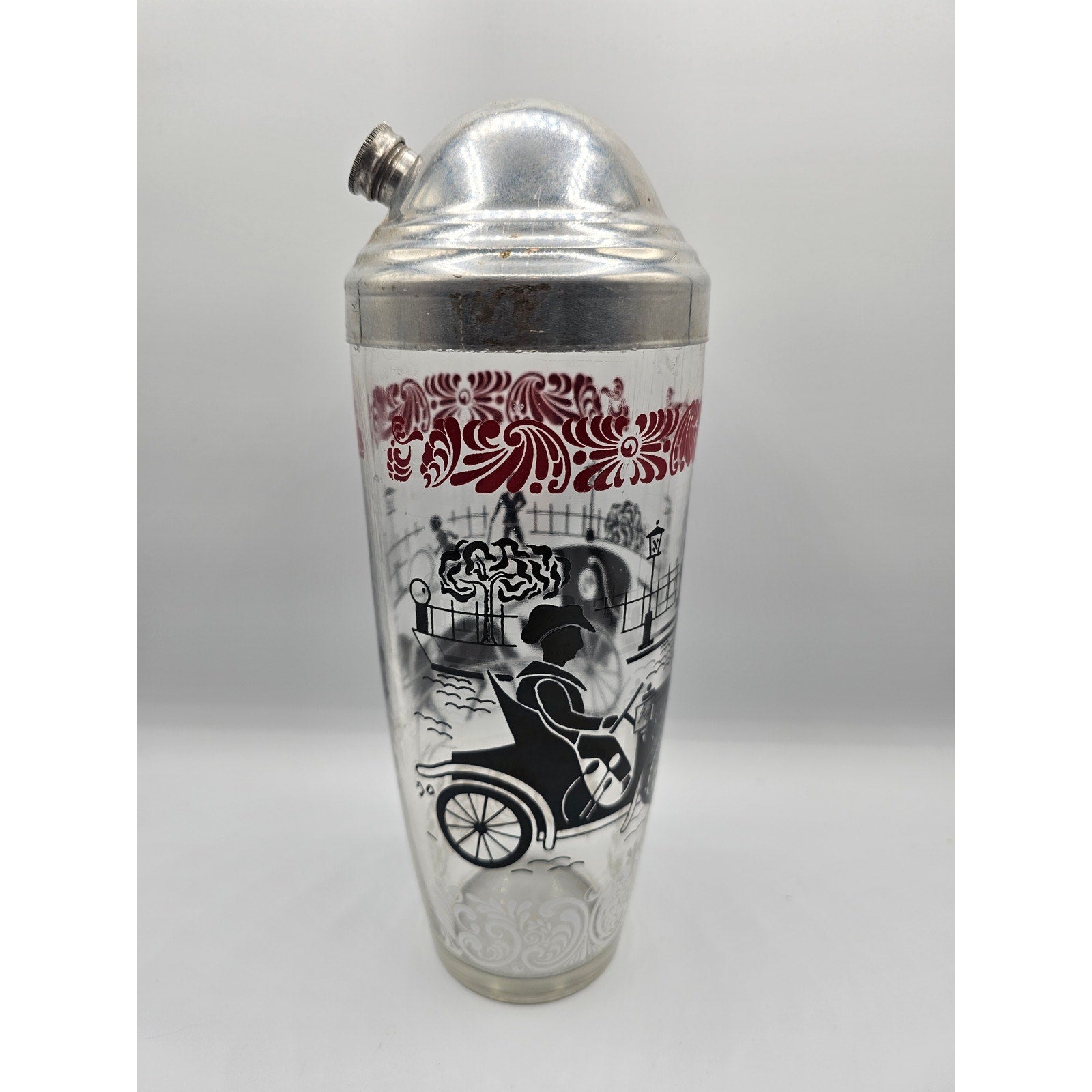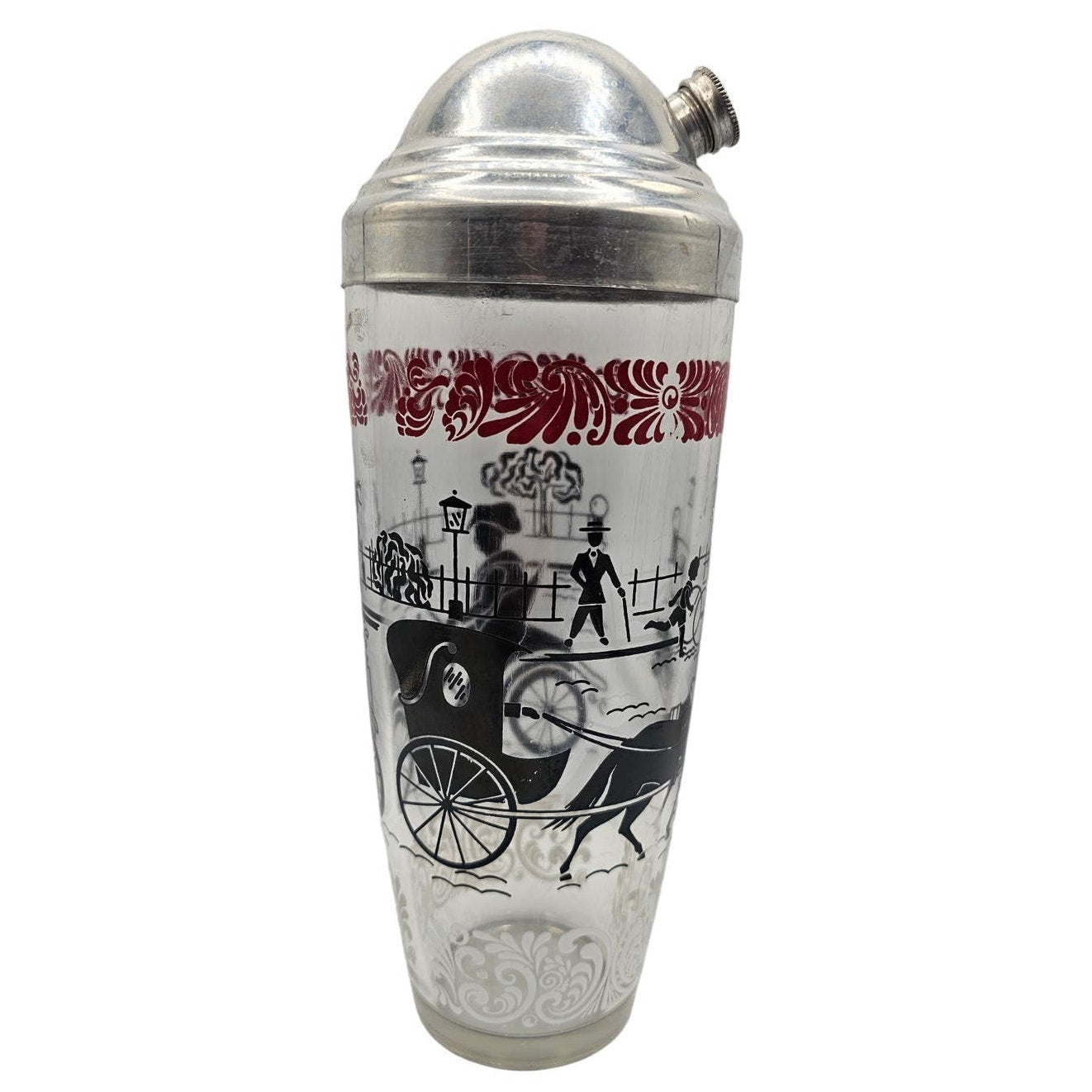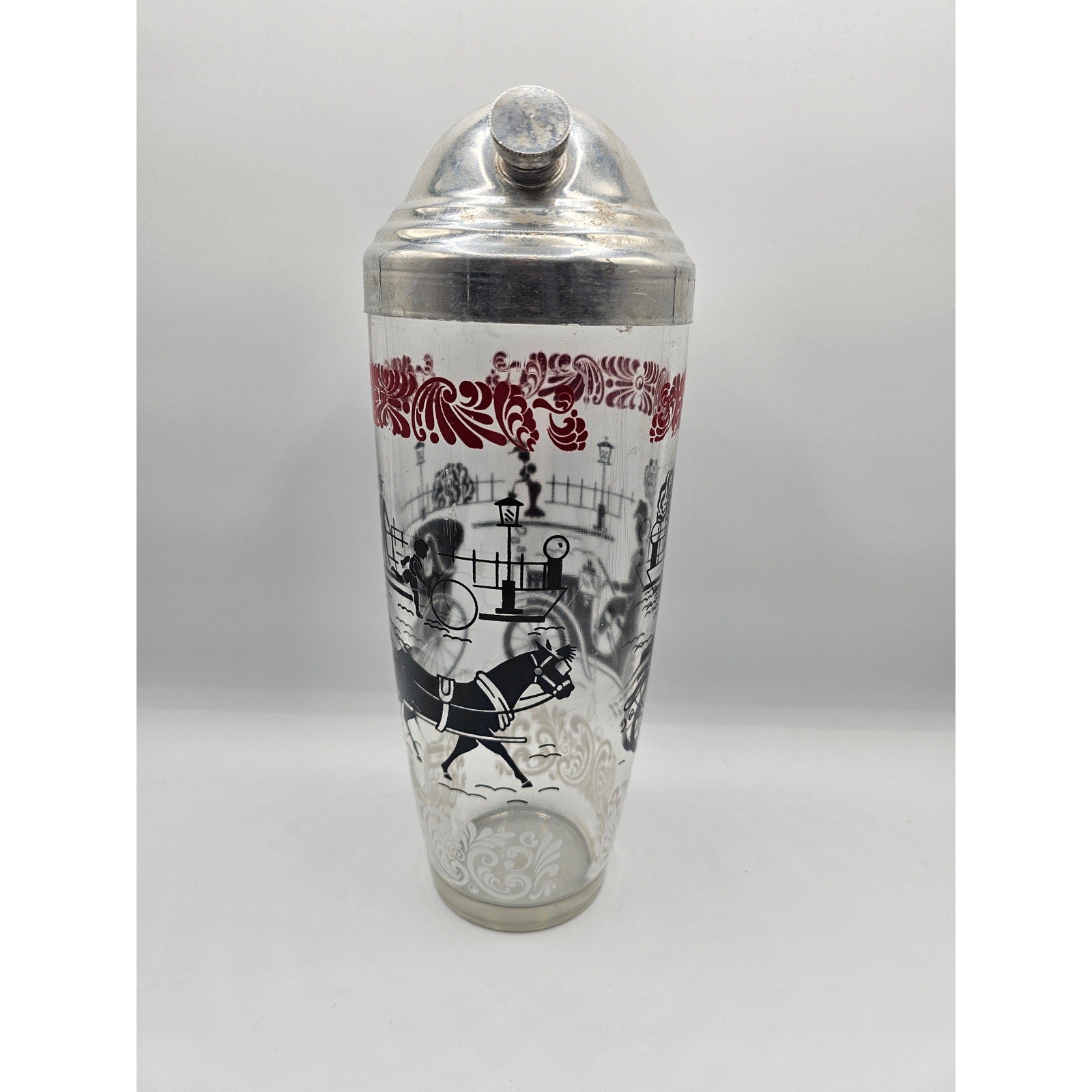 Vintage Mid Century Glass Cocktail Shaker MCM 1960s Red Black Equestrian