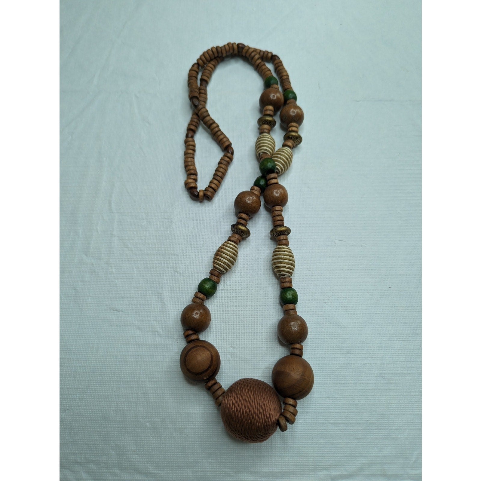 This vintage mid century necklace is a stunning piece of jewelry that is sure to catch the eye of anyone who sees it. The necklace features a single strand of graduated wooden beads that range in color from brown to green. The beaded design is both stylish and unique, making it a great addition to any jewelry collection. The necklace is perfect for anyone who loves vintage jewelry or simply wants to add a touch of mid century style to their wardrobe. Whether you are wearing it to a formal event or simply out and about, this necklace is sure to turn heads. So why wait? Add it to your collection today!