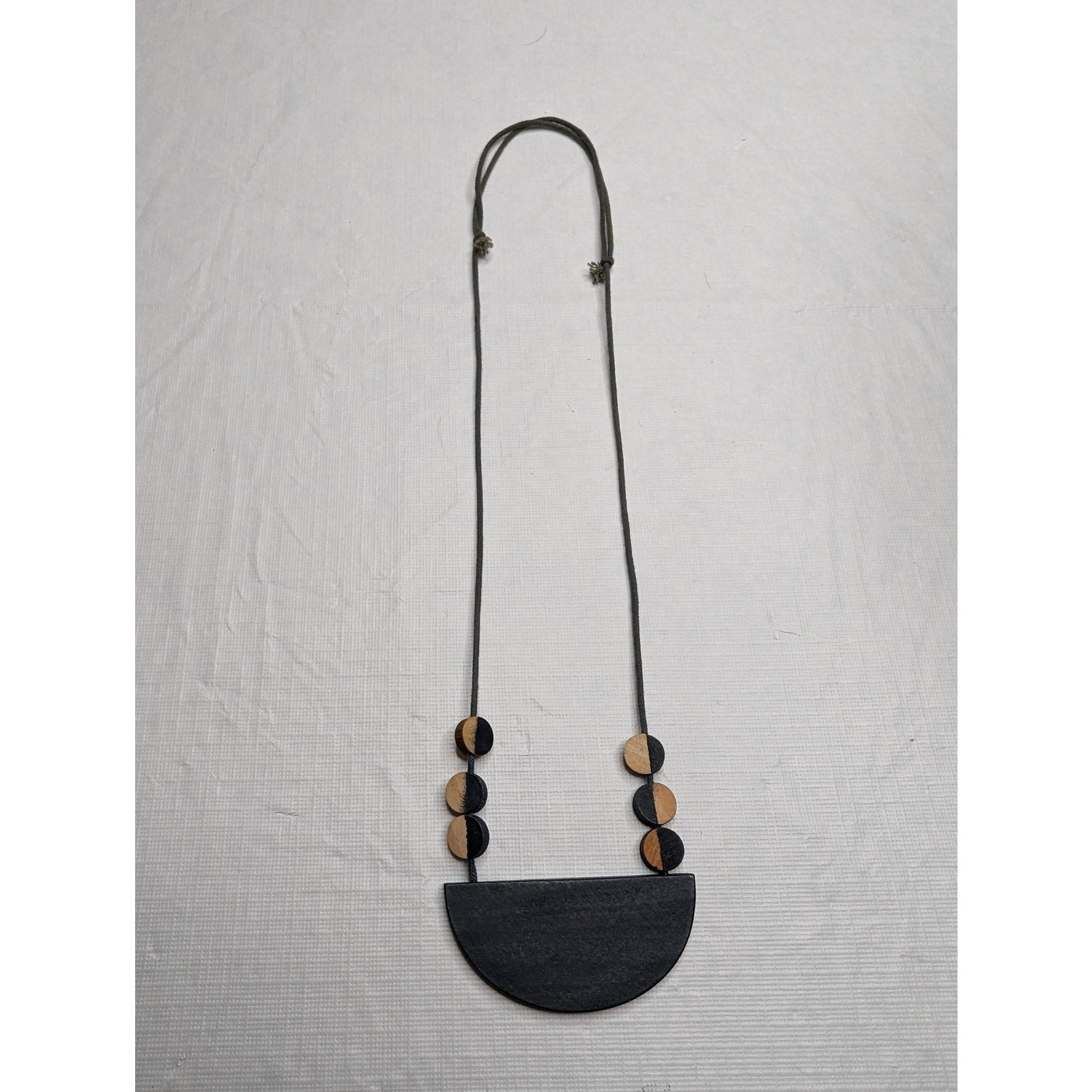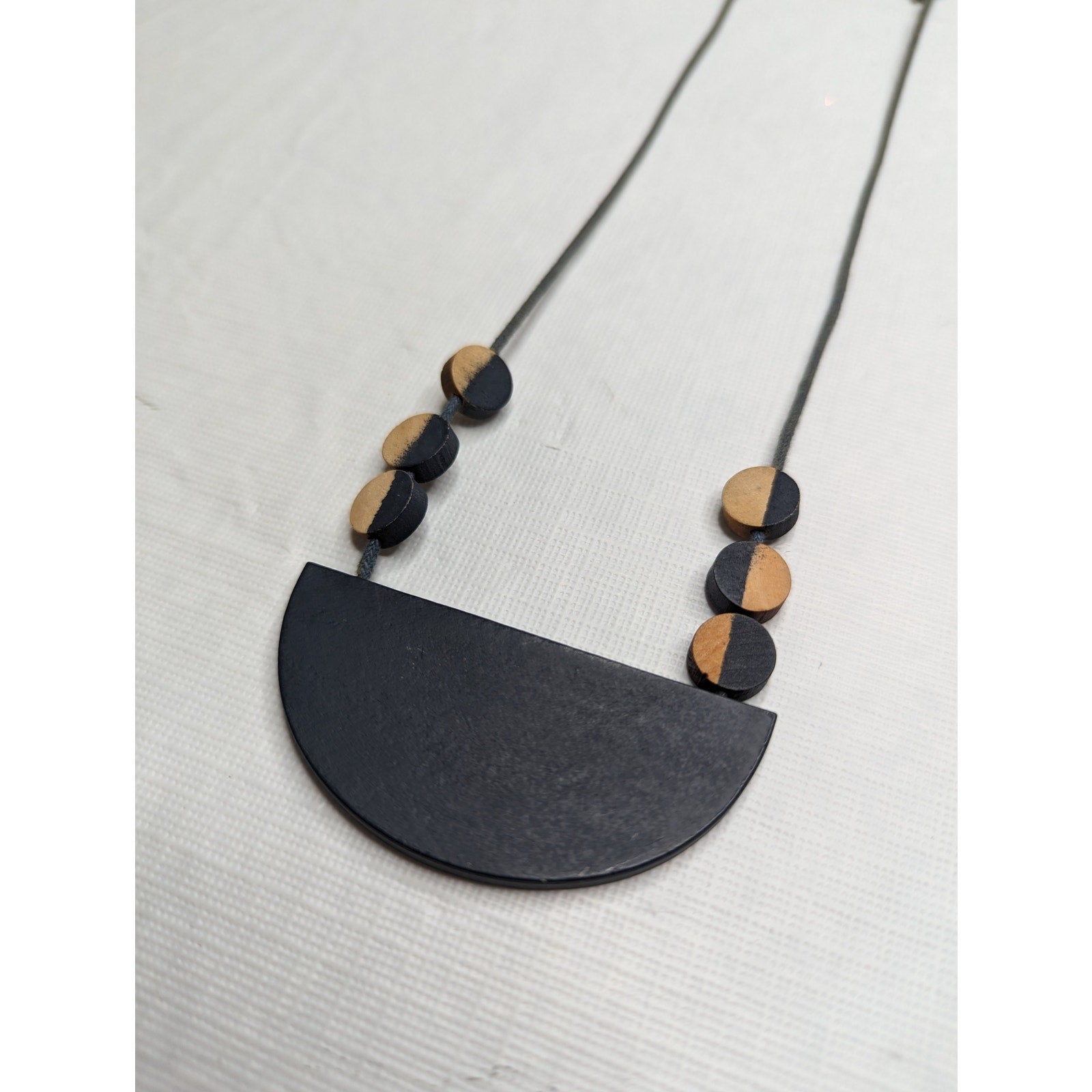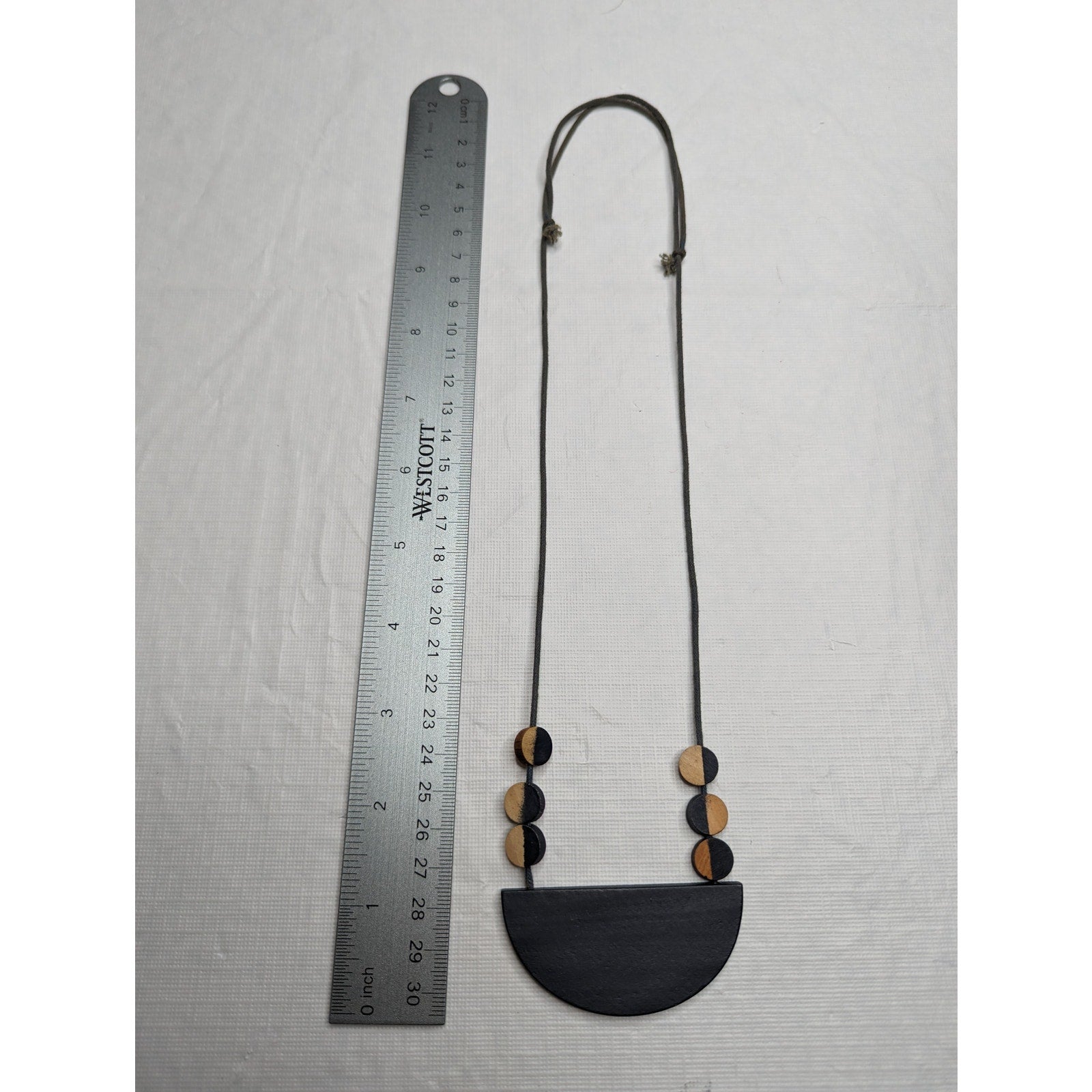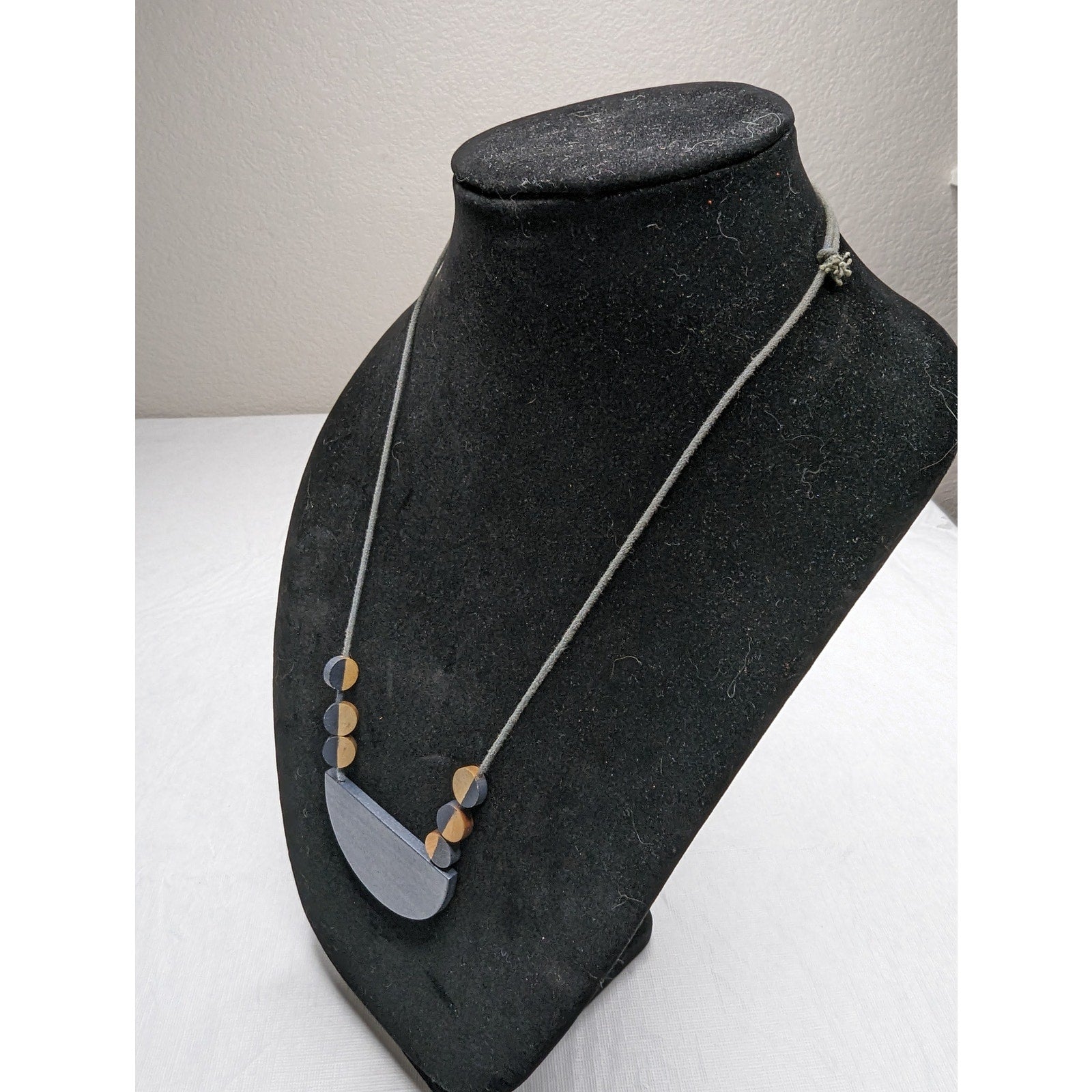 Vintage Mid Century Mod Leather and Wood Single Strand Statement Necklace Blue
