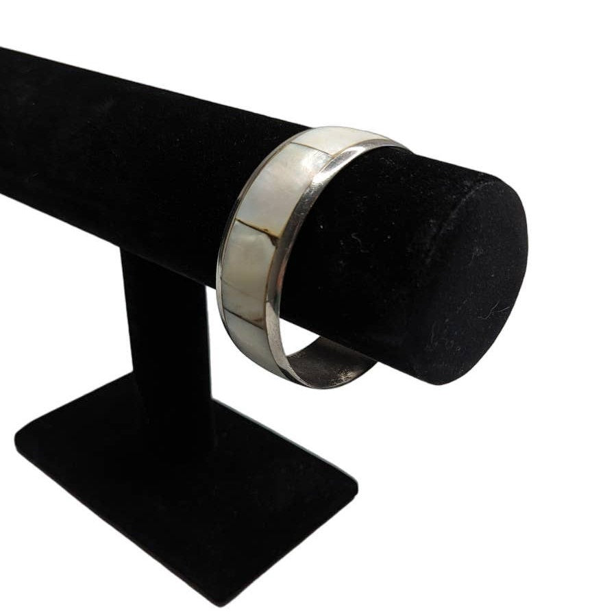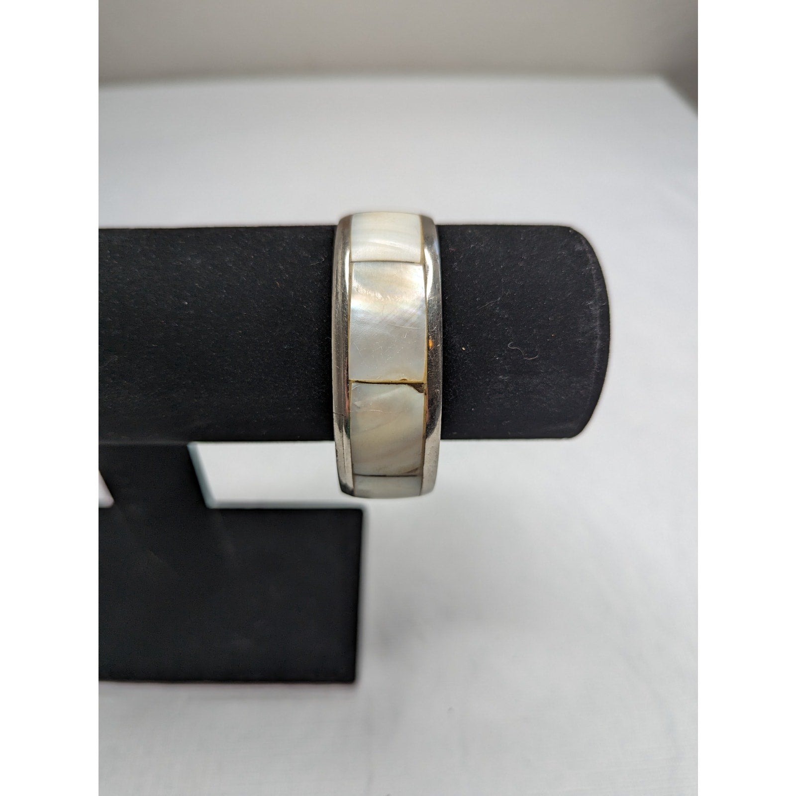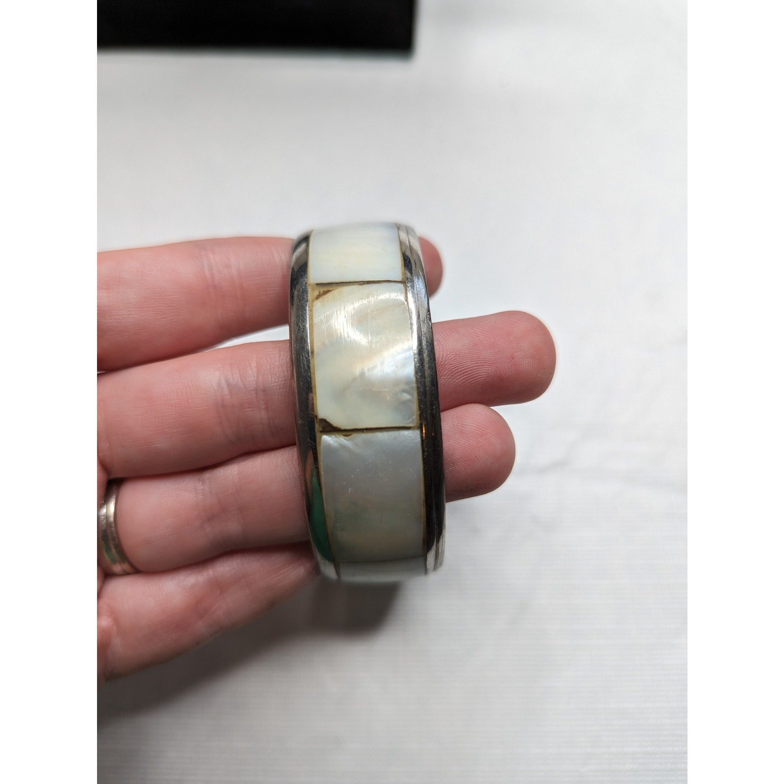 Vintage Mid Century Mother of Pearl Inlay Bangle Bracelet Ivory