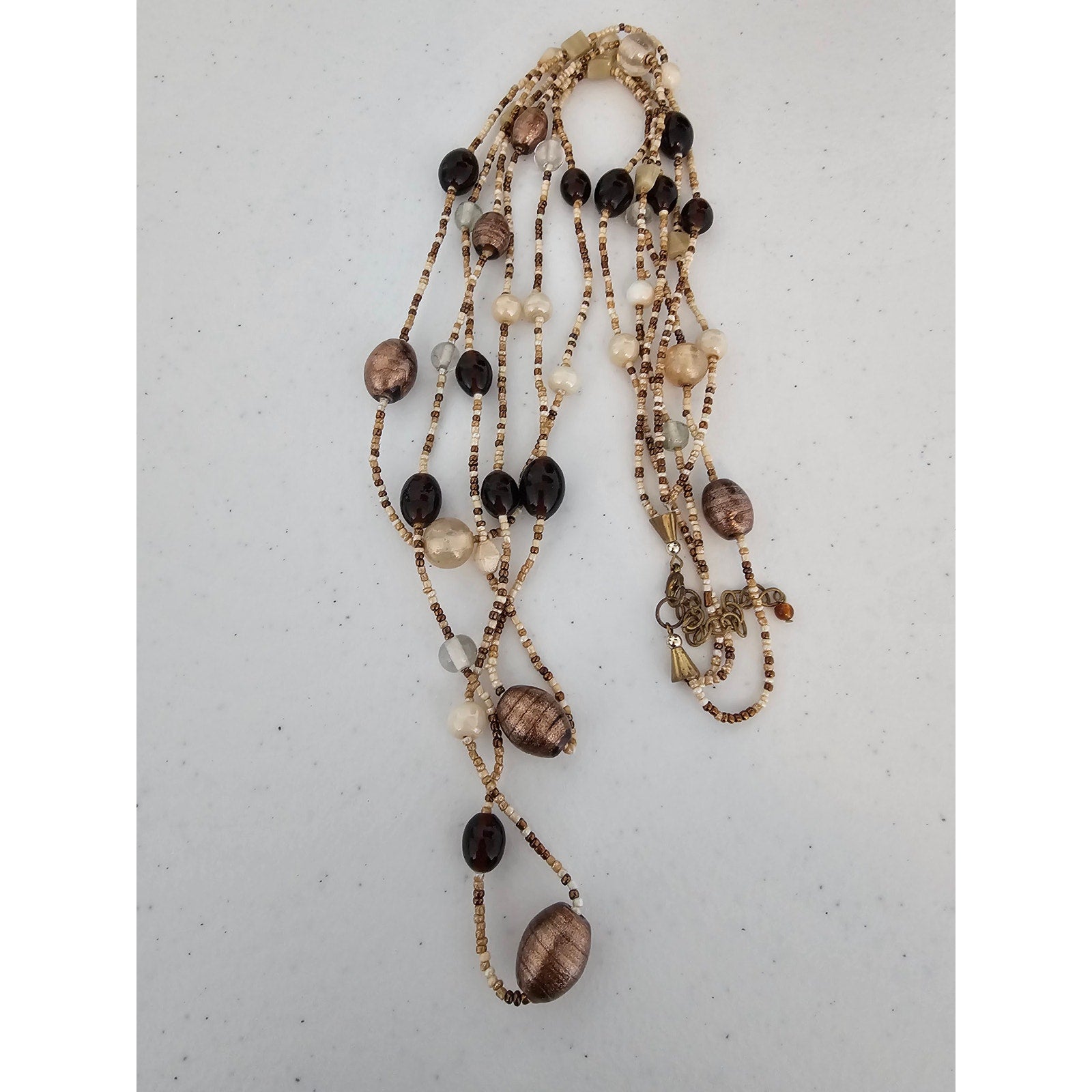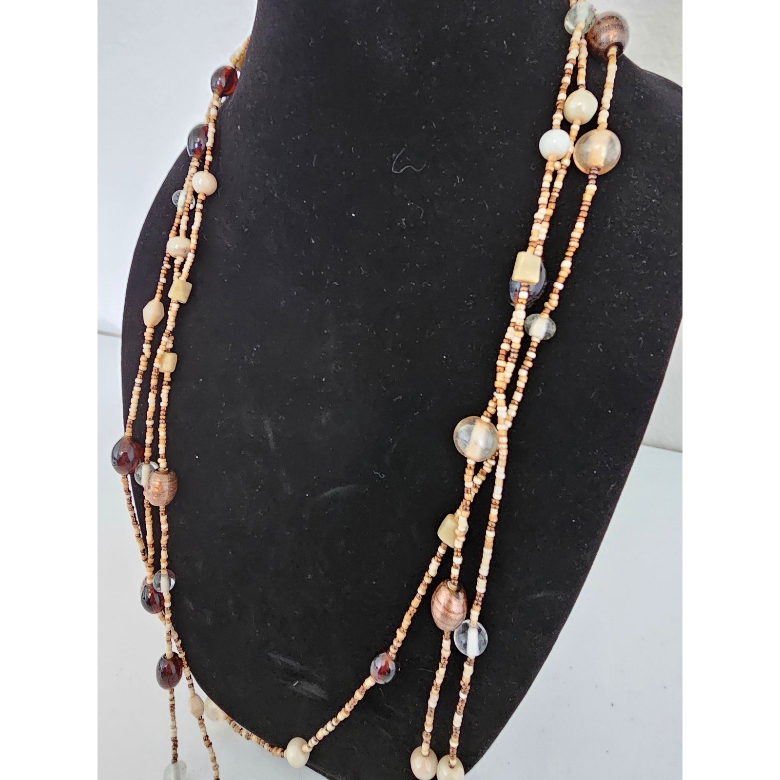 Vintage Mid Century Multi Strand Long Boho Necklace Seed Bead and Large Bead