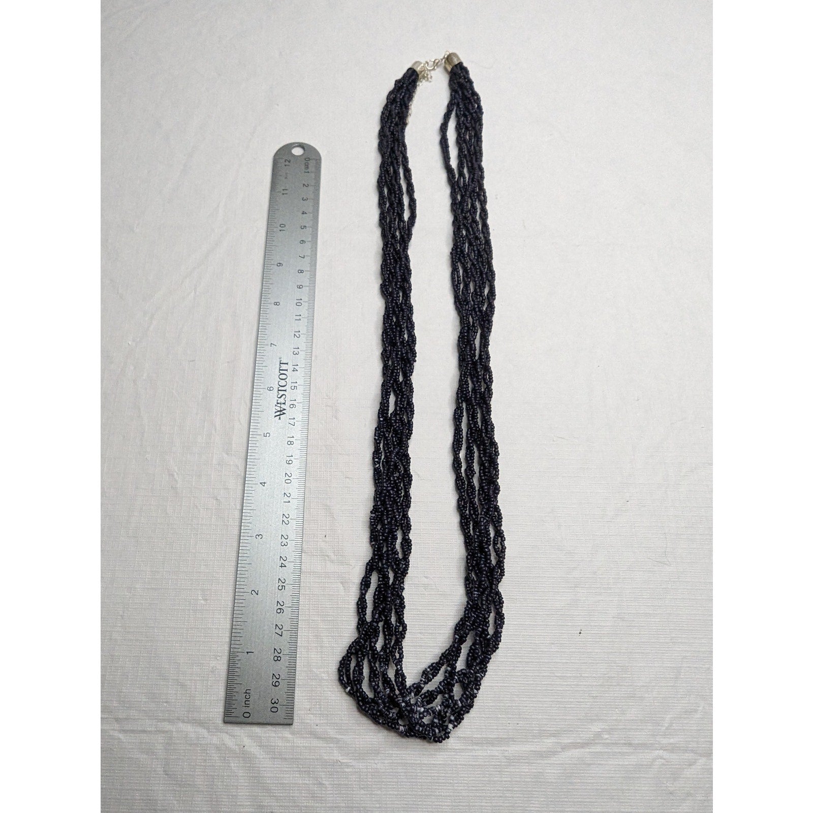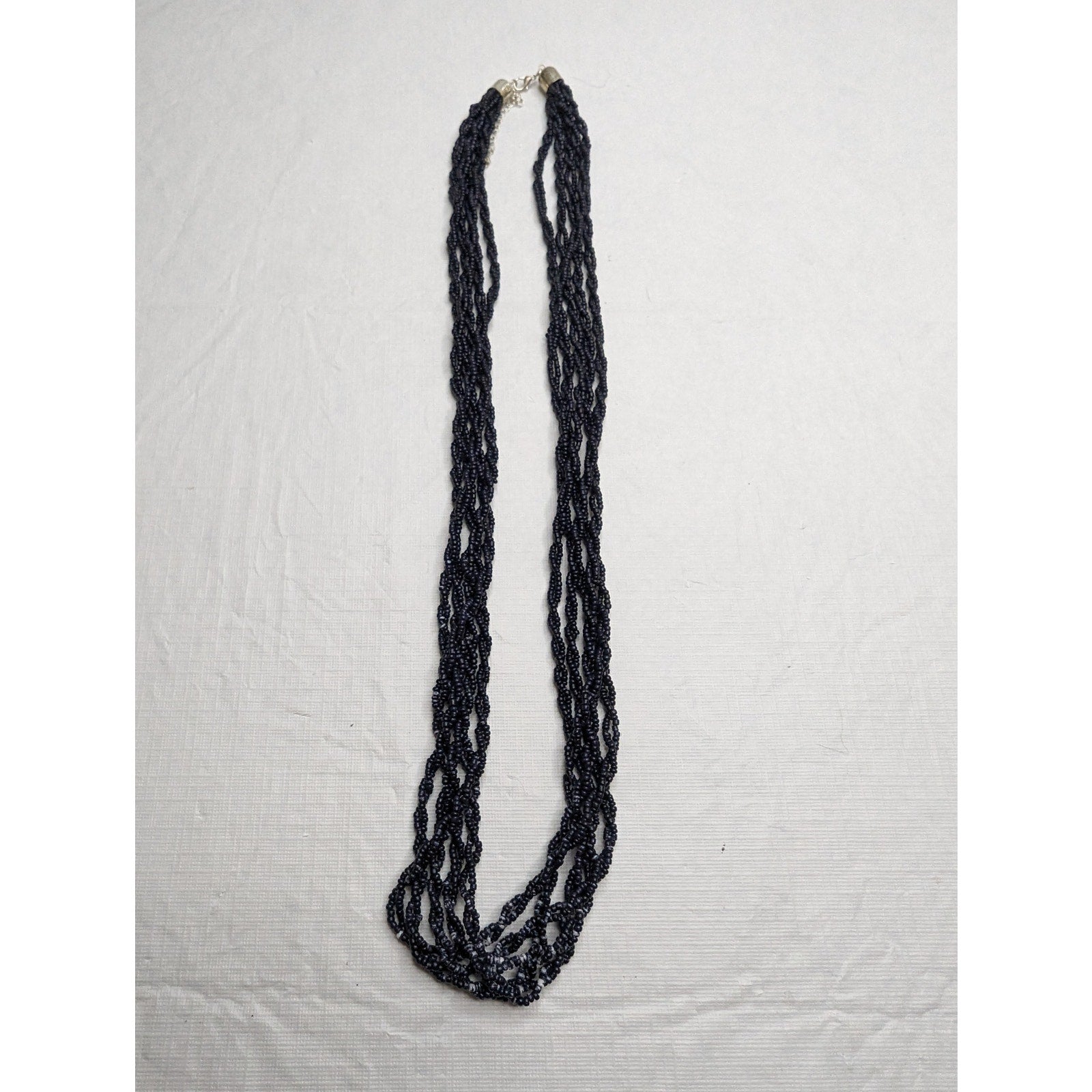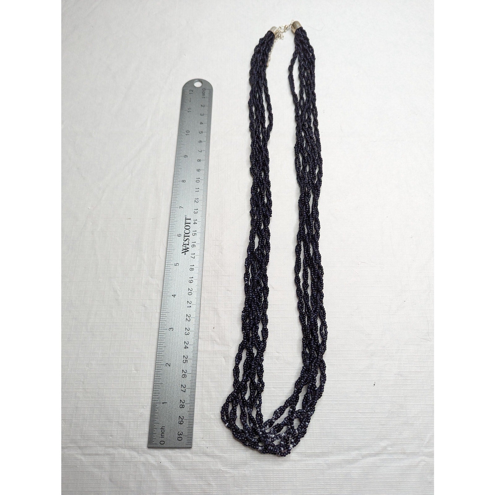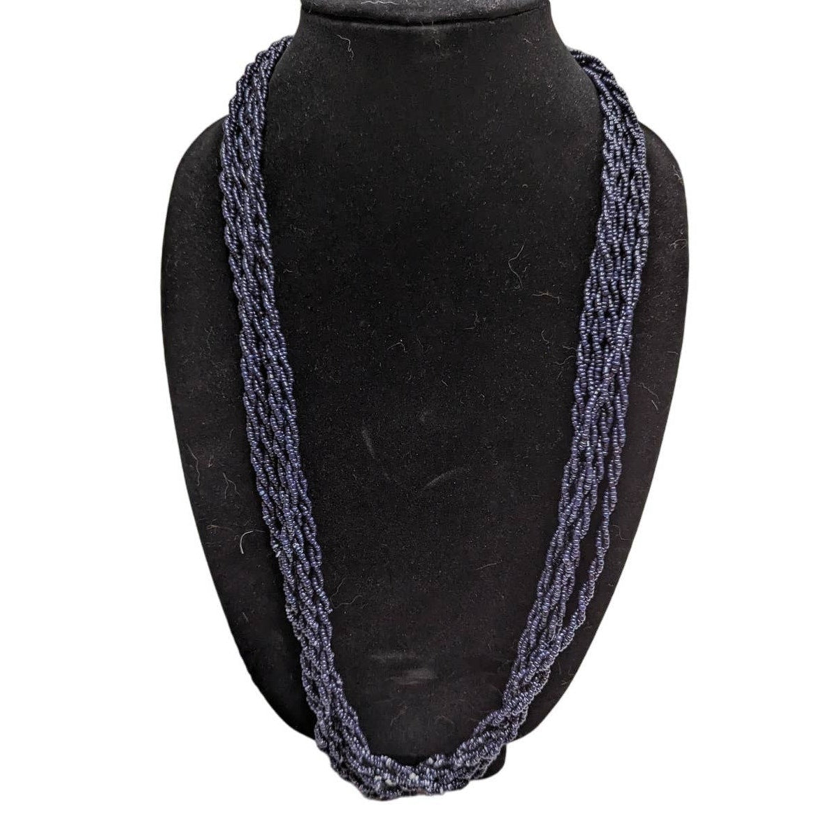Vintage Mid Century Multi Strand Seed Bead Rope Style Necklace Dark Blue