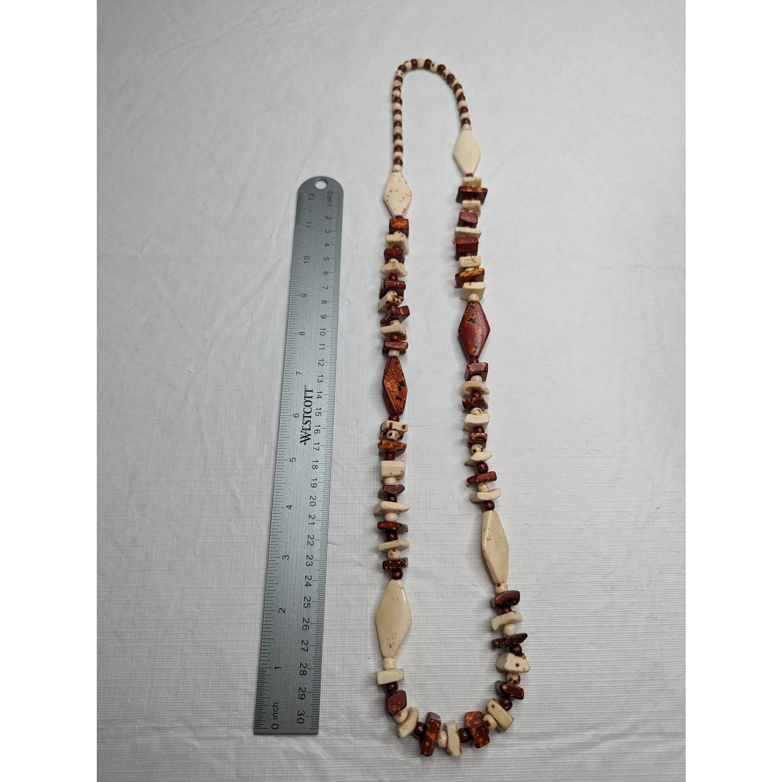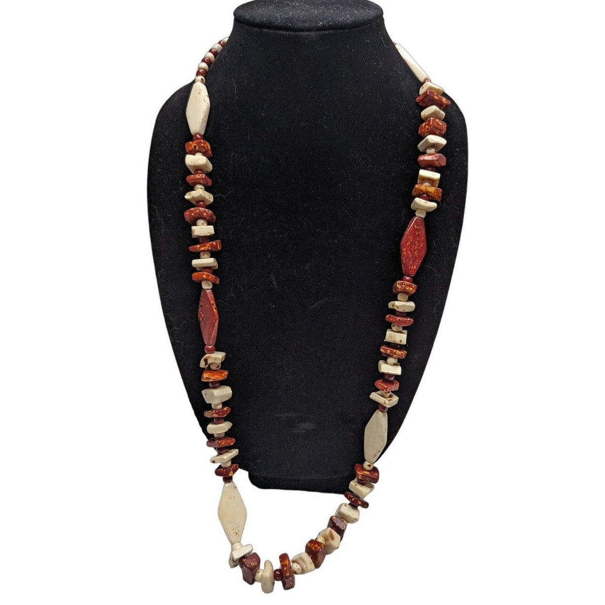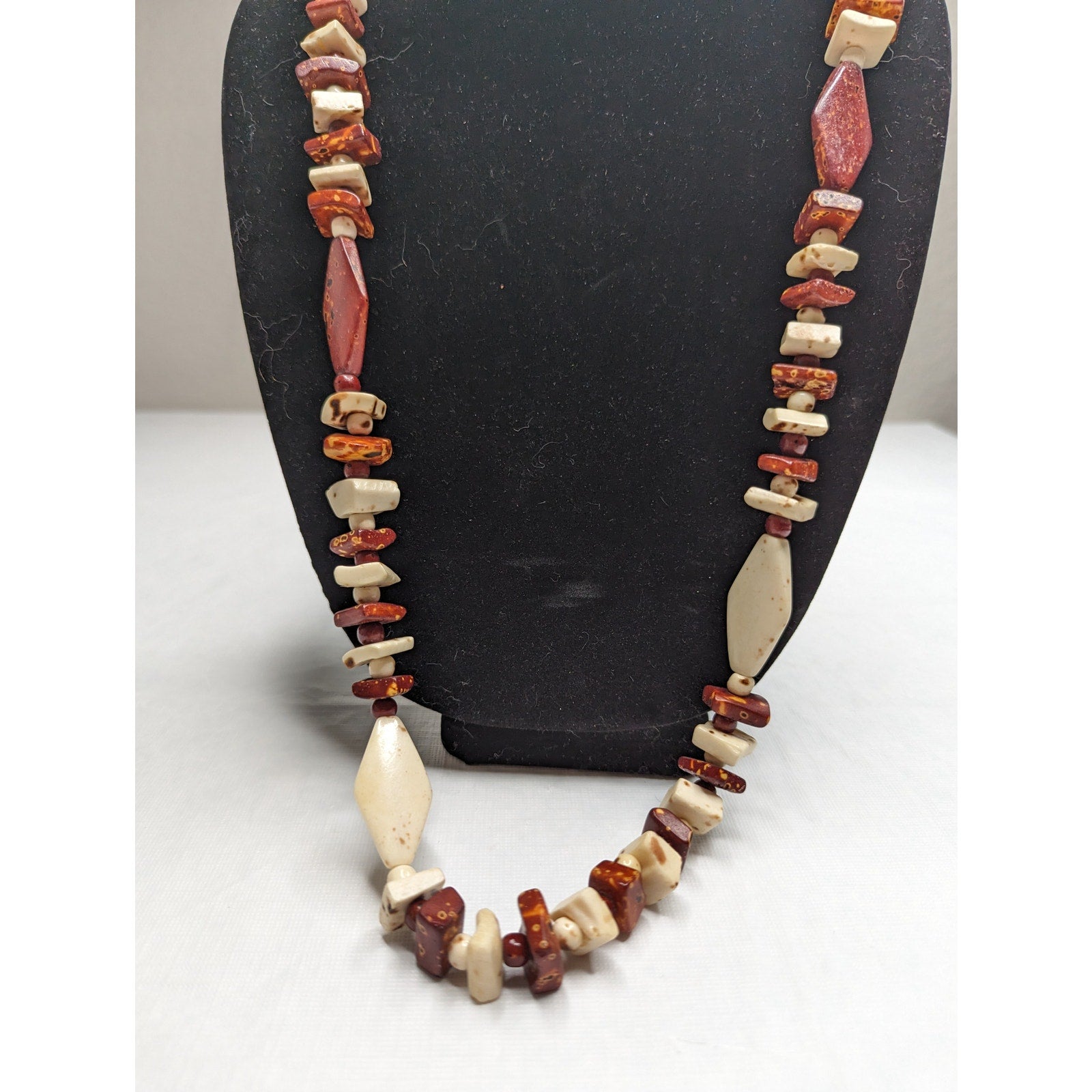 Vintage Mid Century Single Strand Chunky Stone Necklace Red and Cream