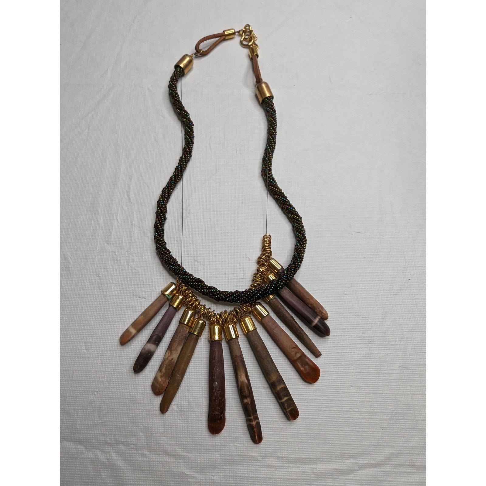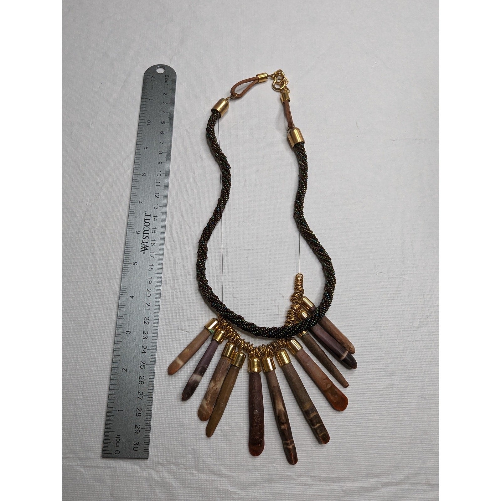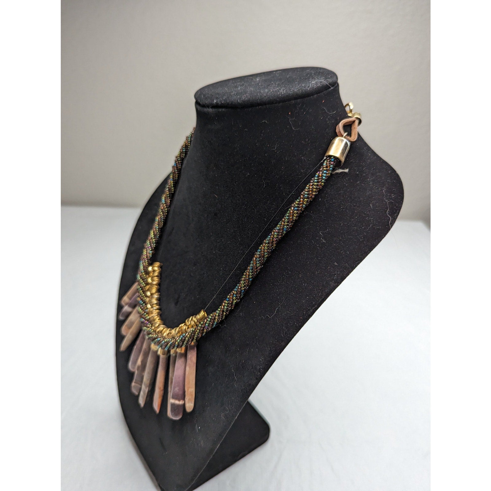 Vintage Mid Century Statement Piece Stone Necklace Seed Bead Braided