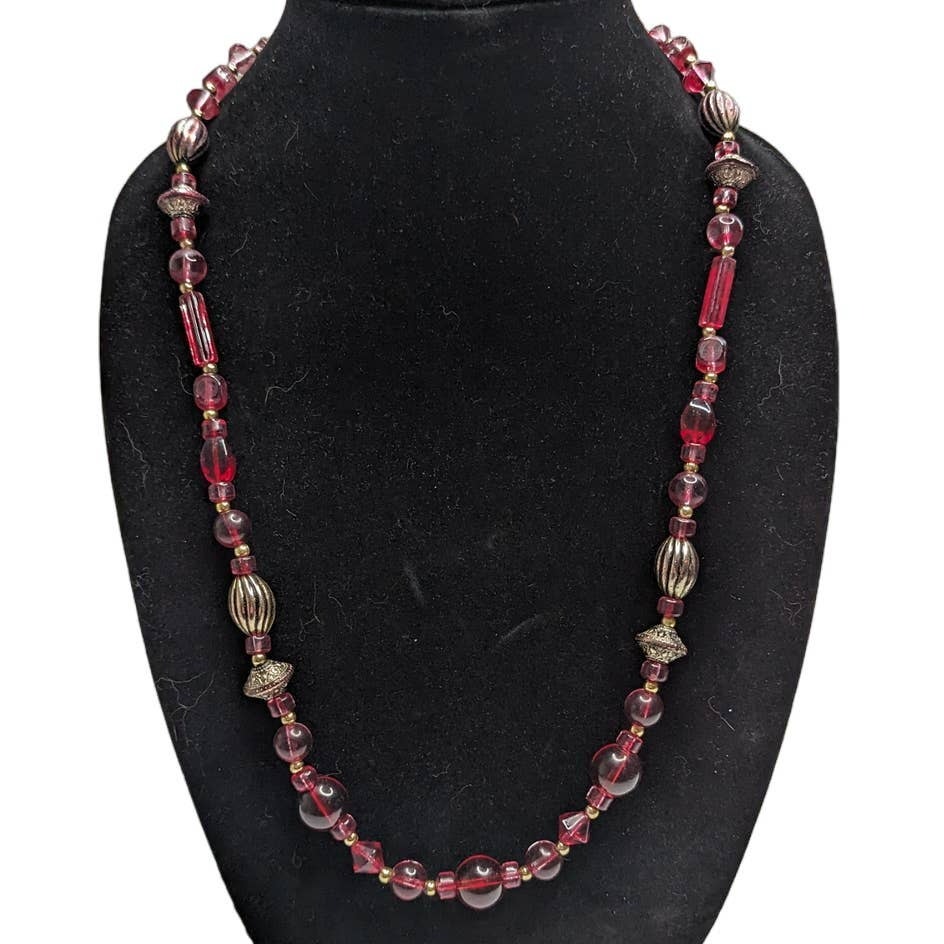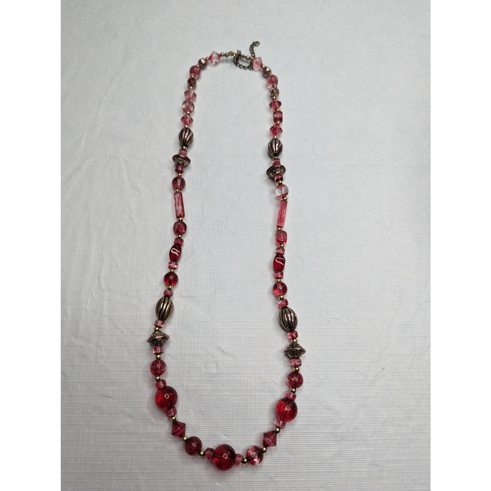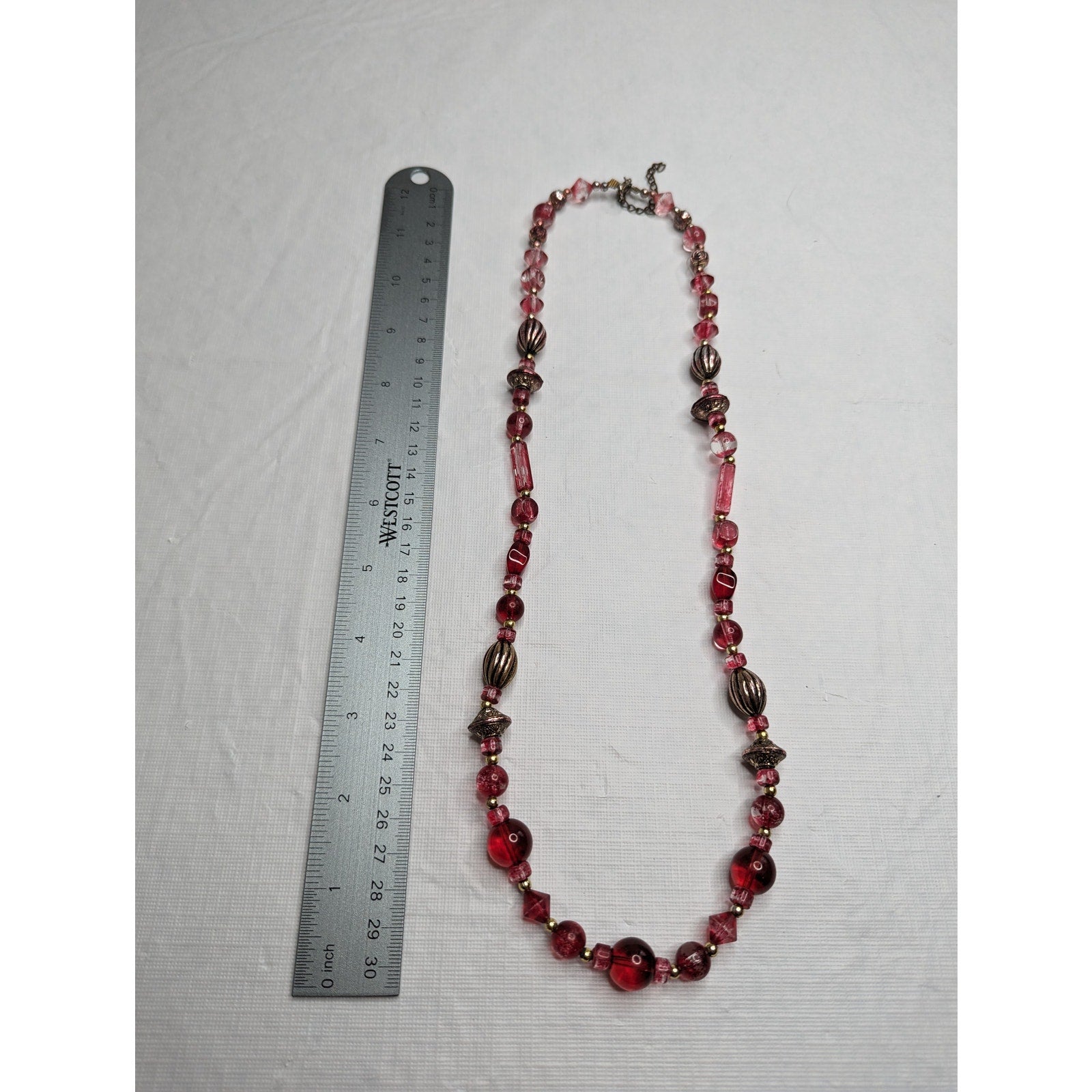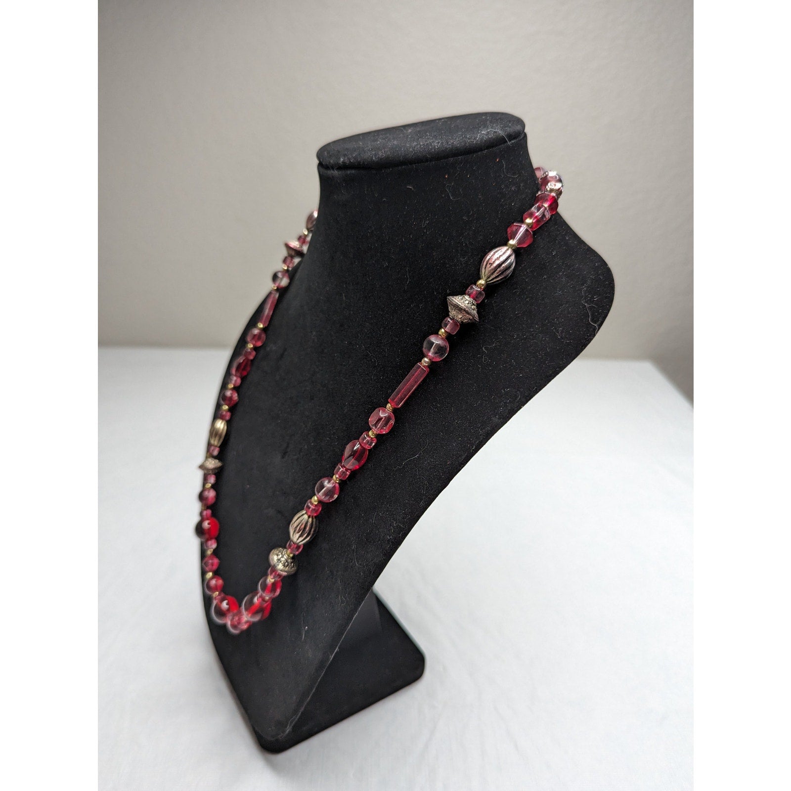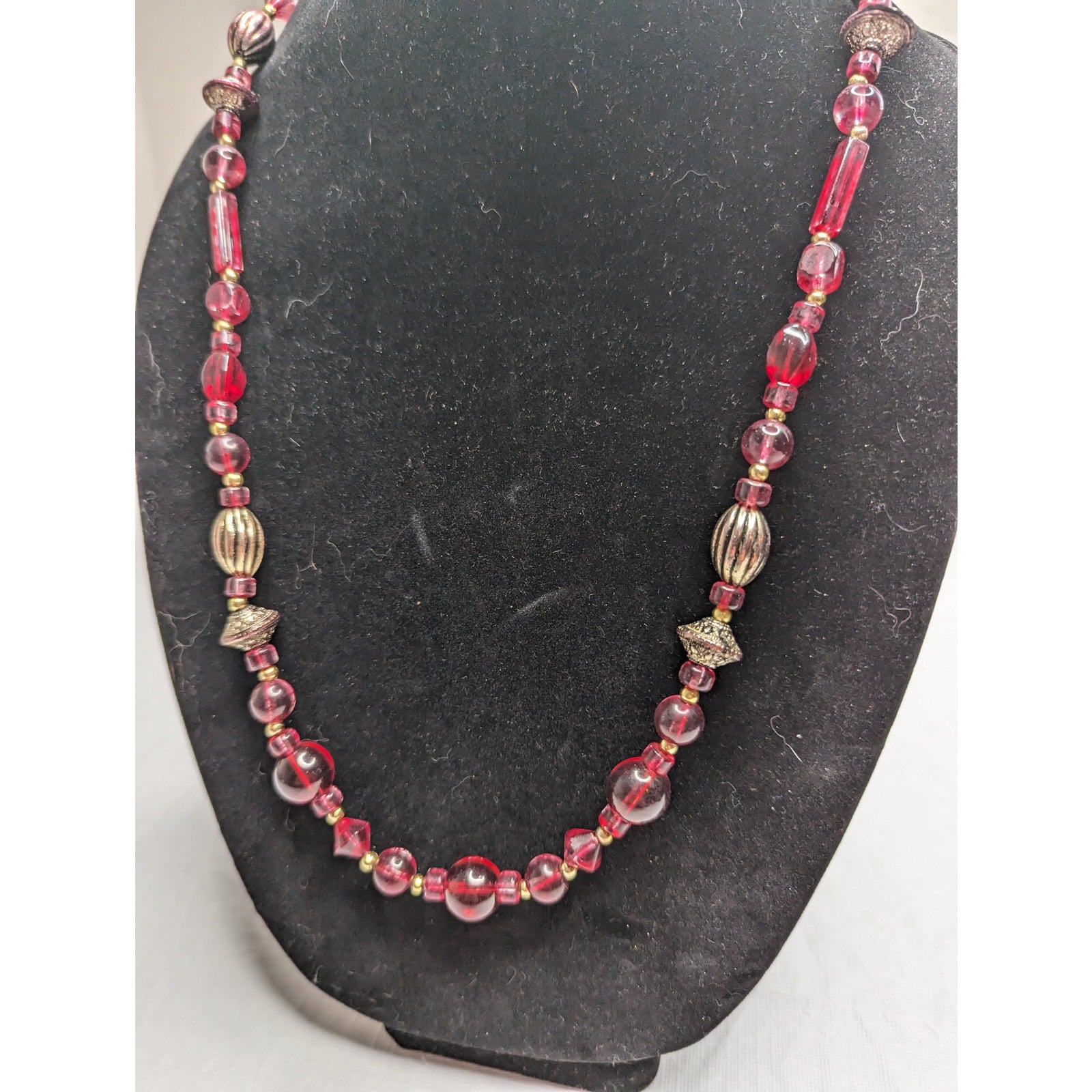 Vintage Mid Century Womens Single Strand Glass Beaded Necklace Red Gold