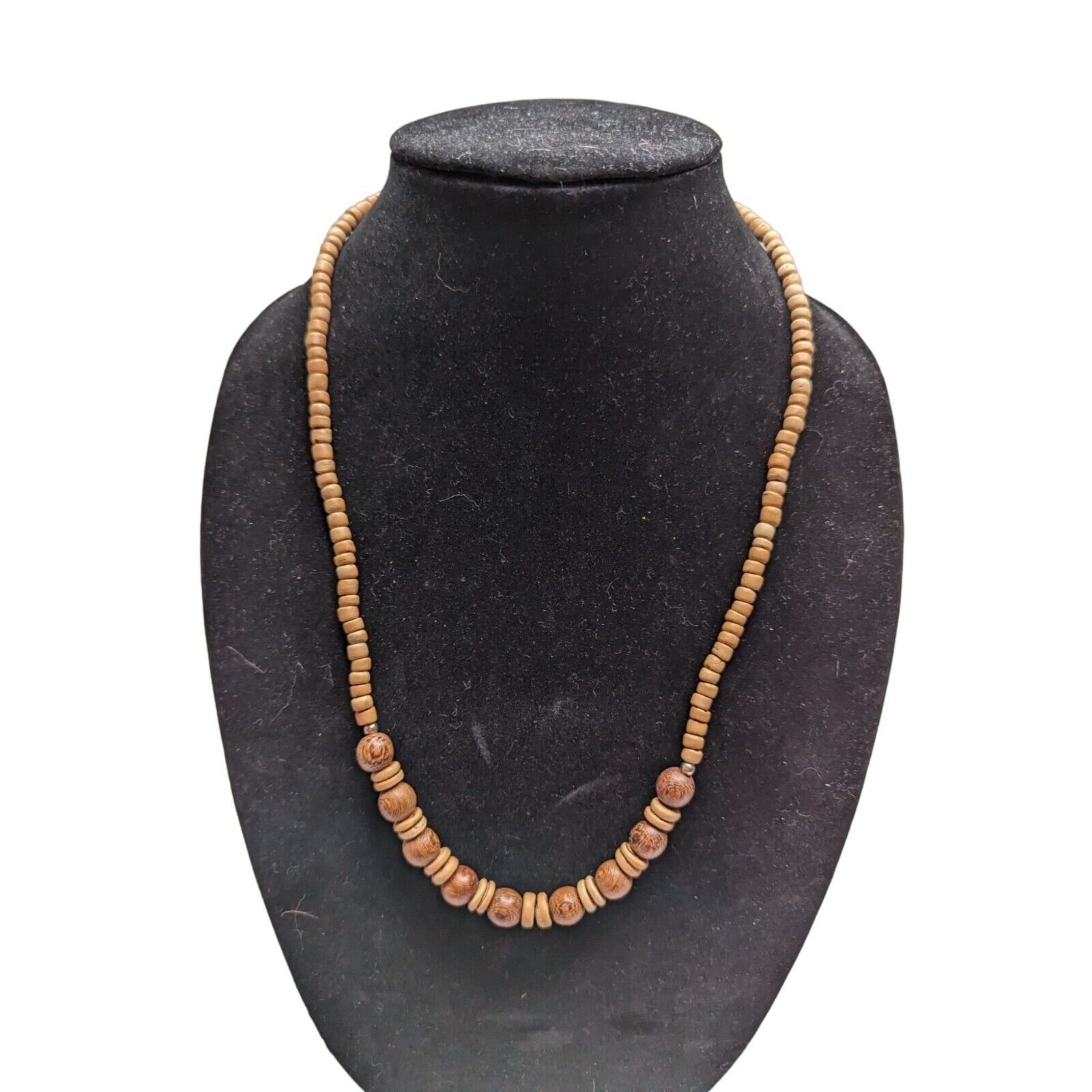 Vintage Mid Century Wooden Beaded Necklace Brown