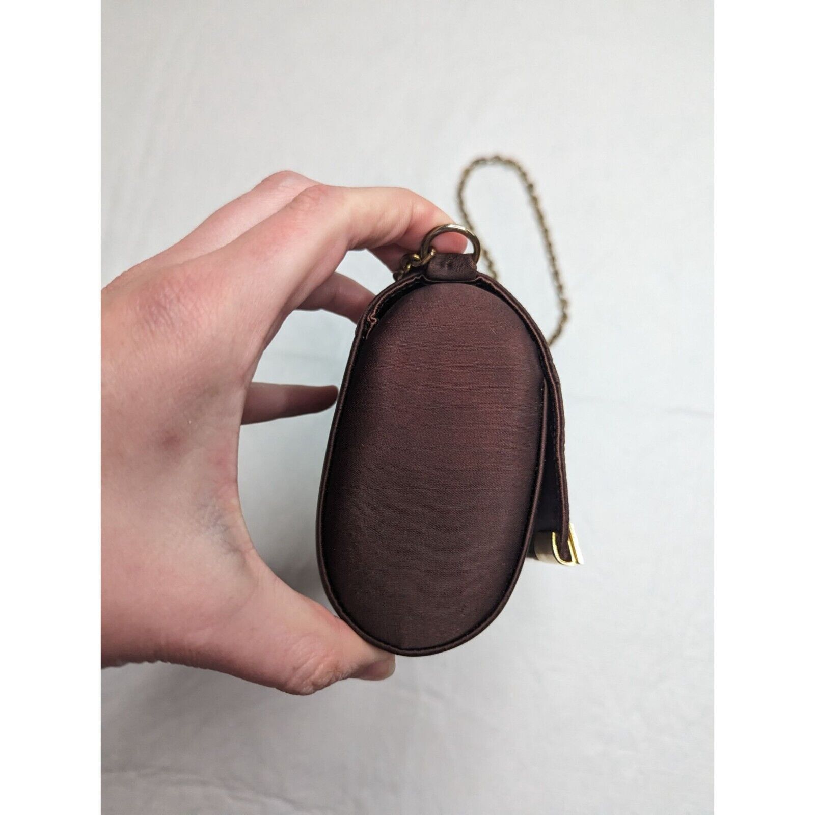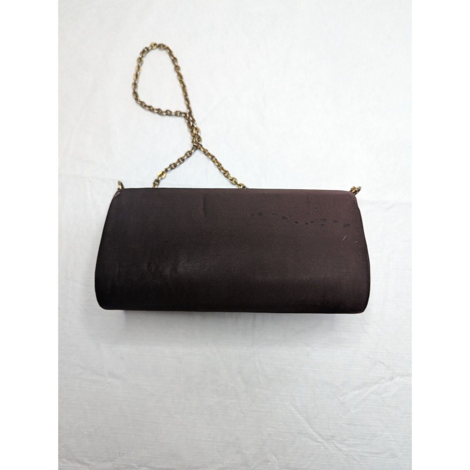 Vintage Miss Lewis Womens Purse Silver Evening Metal Brown Fold Over Chain