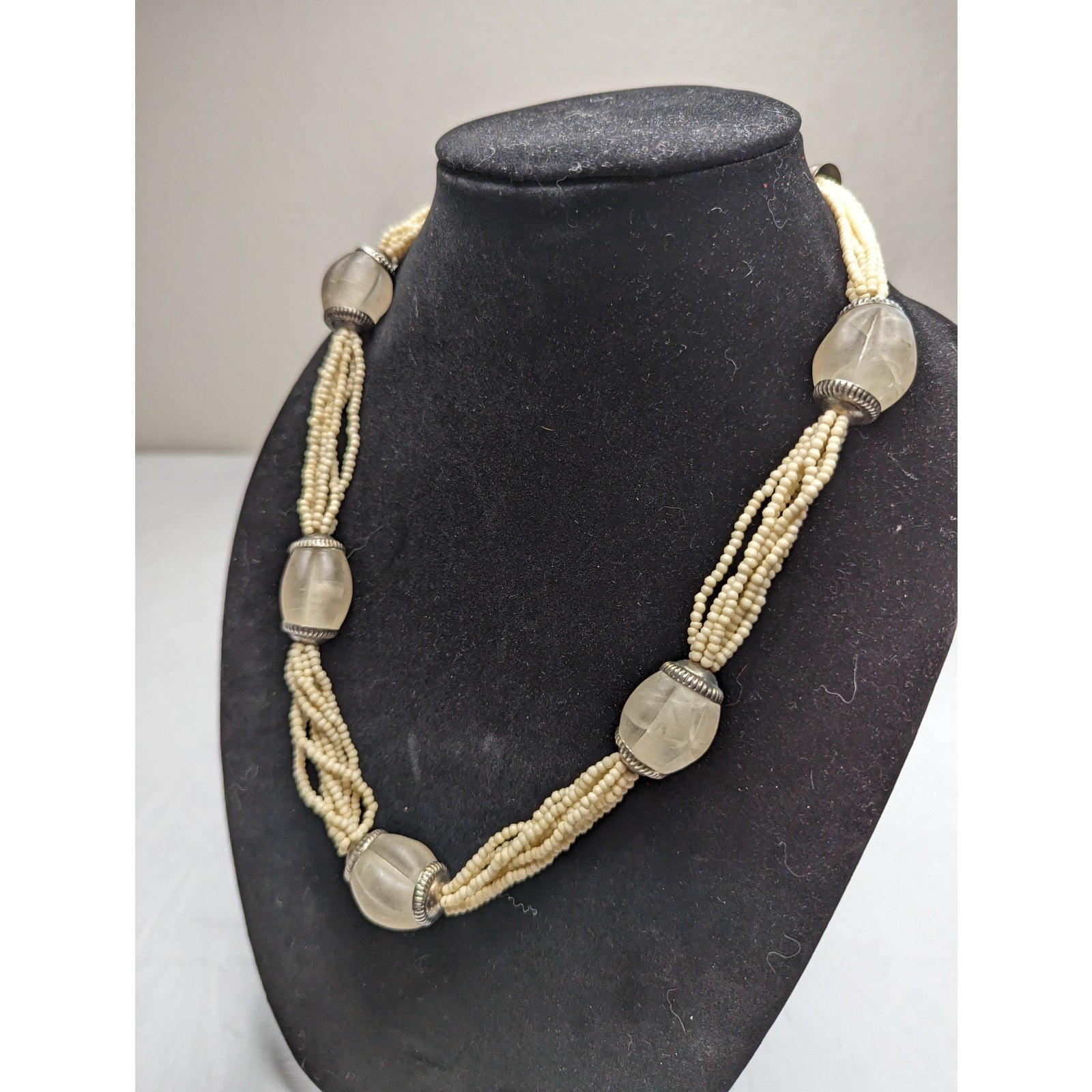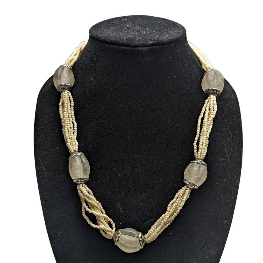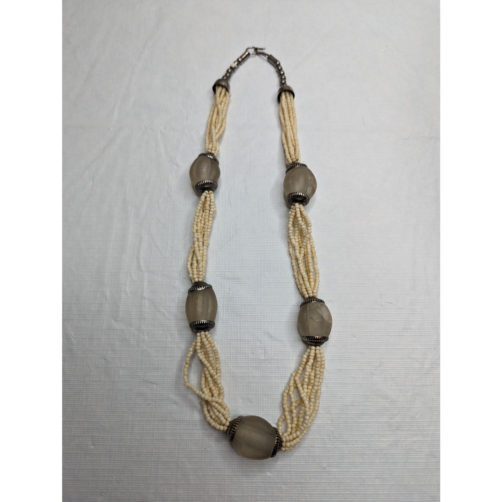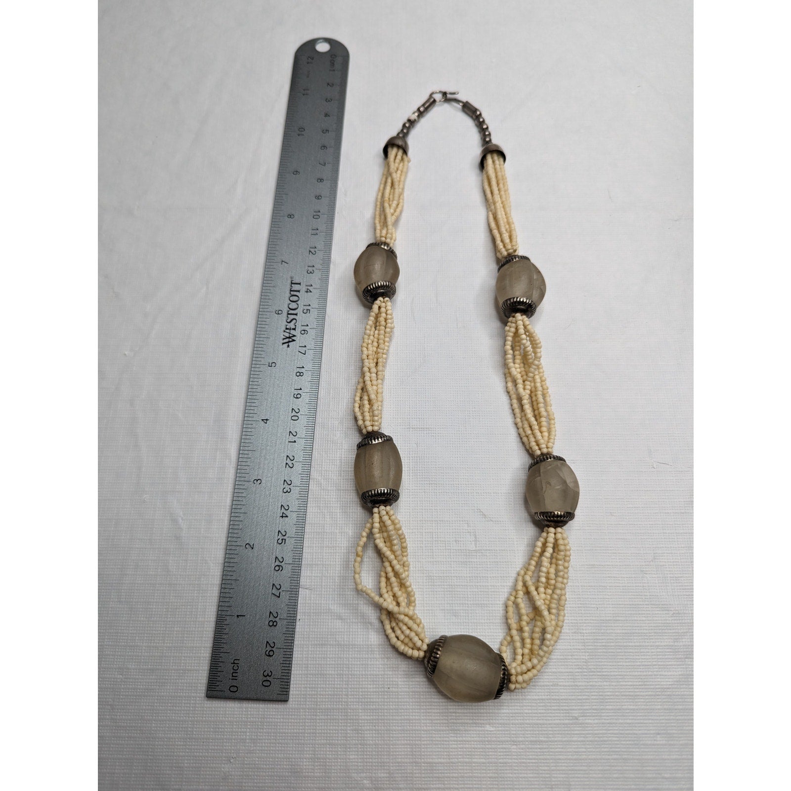 Vintage Multi Strand Seed Bead and Glass Bead Necklace Cream Ivory