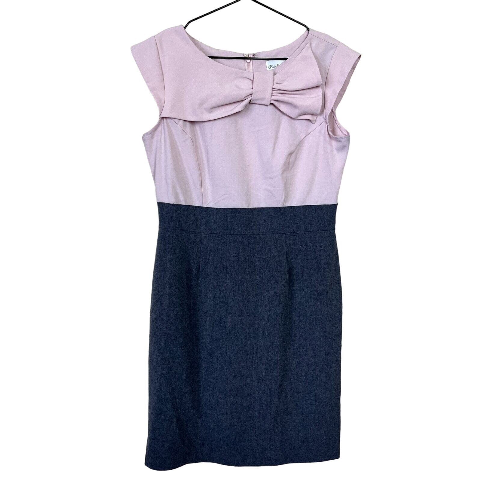 Vintage Olivia Matthews Womens Sz 12P Petite Purple Bow Front Mod Dress