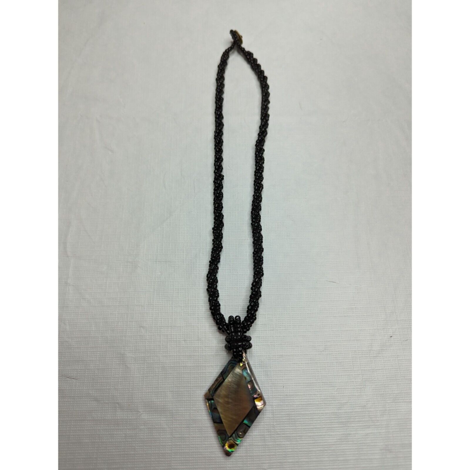 Vintage Onyx Black Beaded Rope Necklace w Mother of Pearl Pendant Southwestern