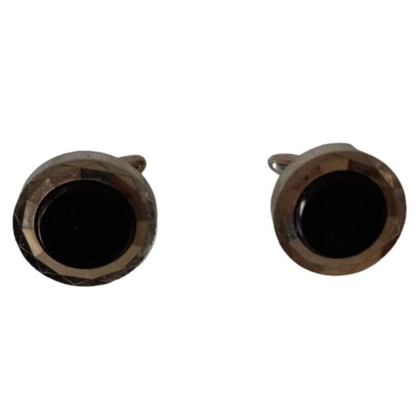 Vintage Pair of 1990s Mens Silvertone and Black stone Round Cufflinks