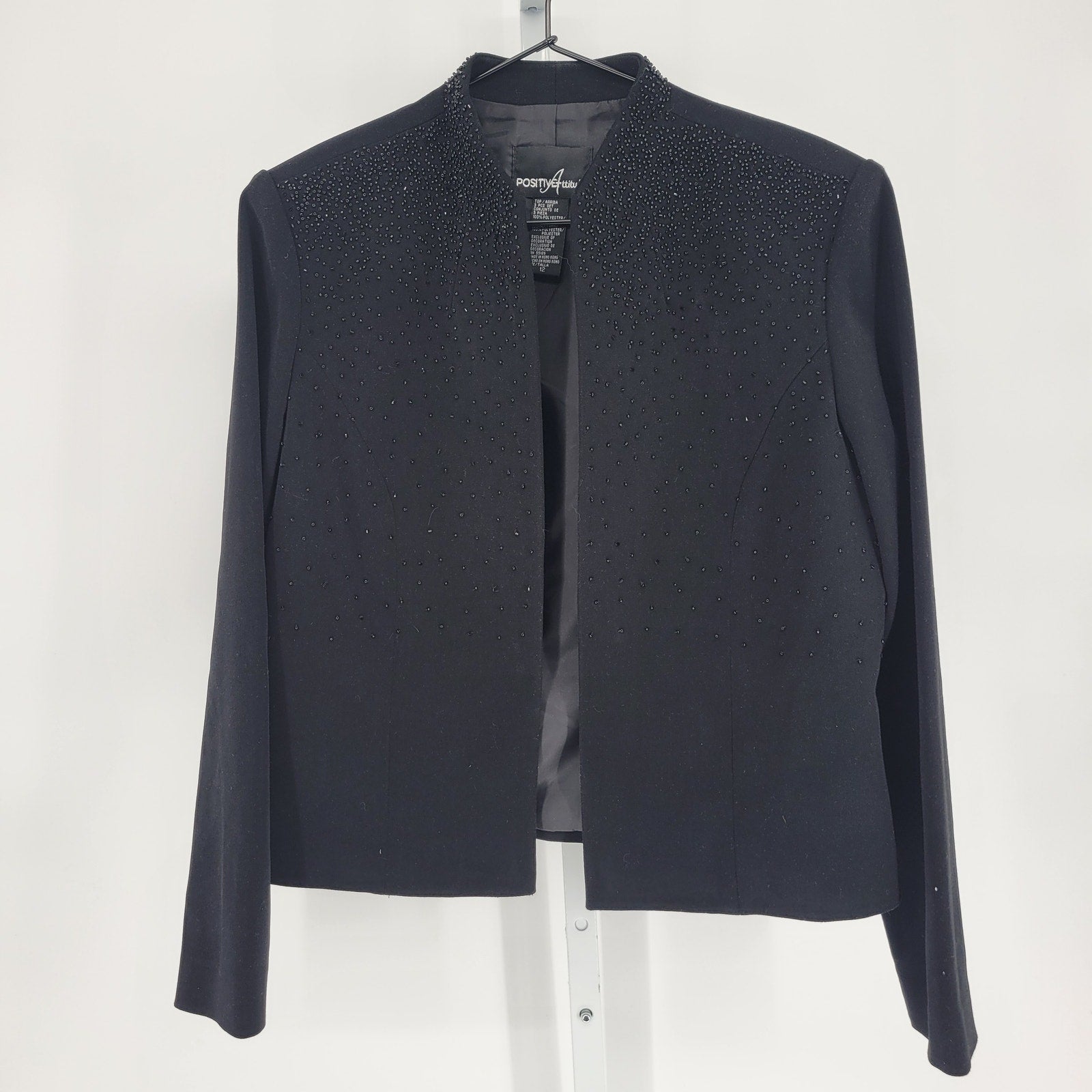 Vintage Positive Attitude Womens Sz 12 Formal Jacket Black Beaded Blazer