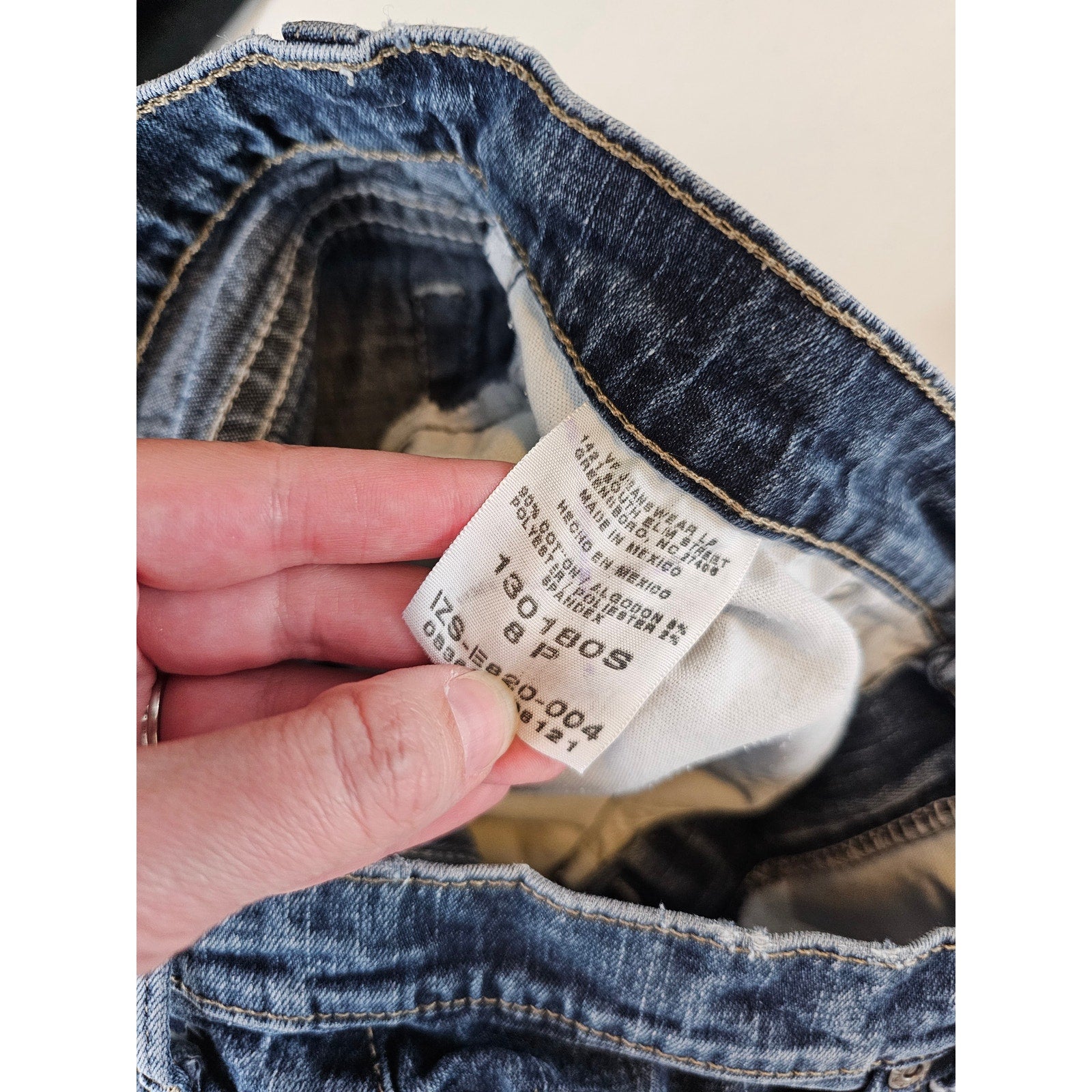 These Vintage Riders bootcut jeans are a great addition to any wardrobe. The blue jeans have a medium wash and are made of soft cotton, ensuring comfort and durability. The women's size 8P petite cut makes them a perfect fit for those looking for a more tailored look. The jeans are versatile and can be dressed up or down for any occasion. With their timeless design and high quality materials, they are sure to be a wardrobe staple for years to come.