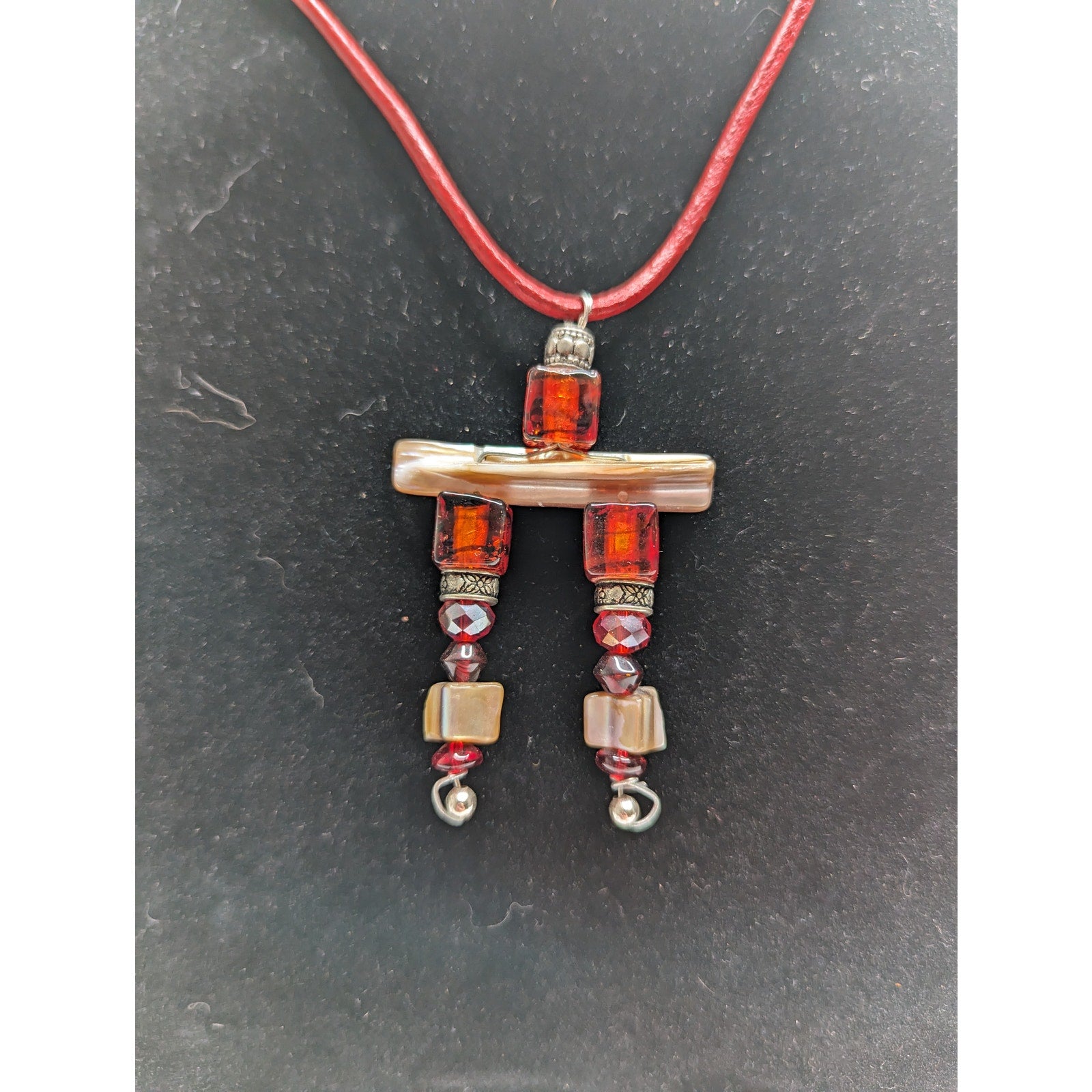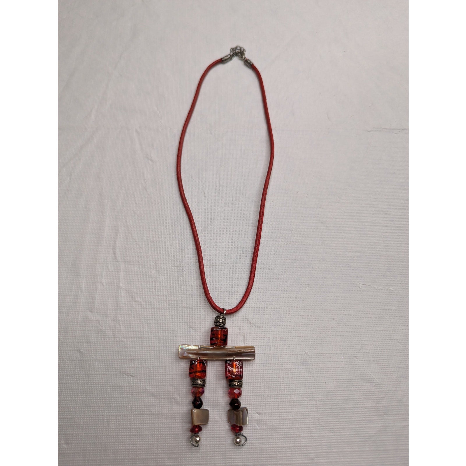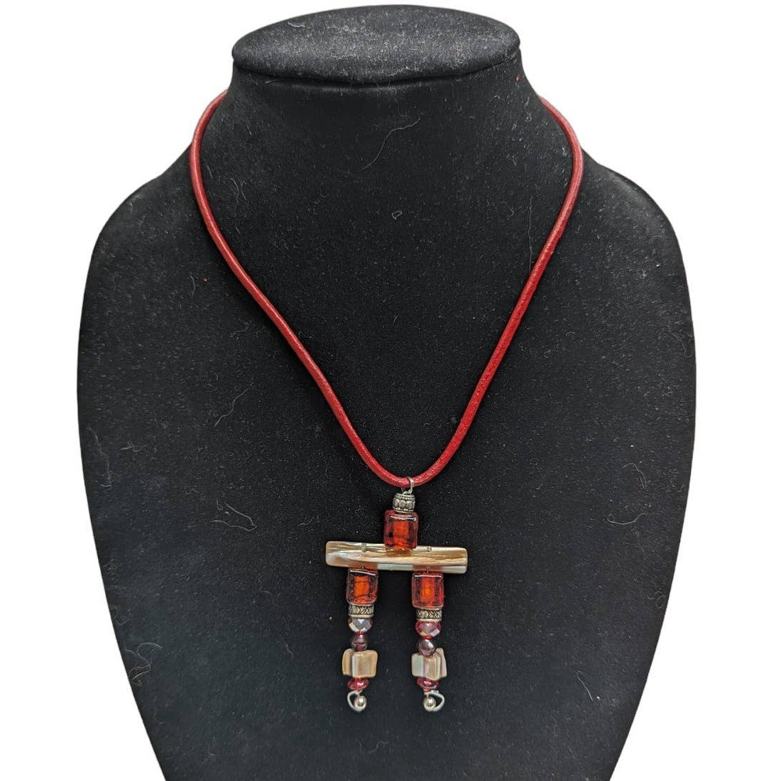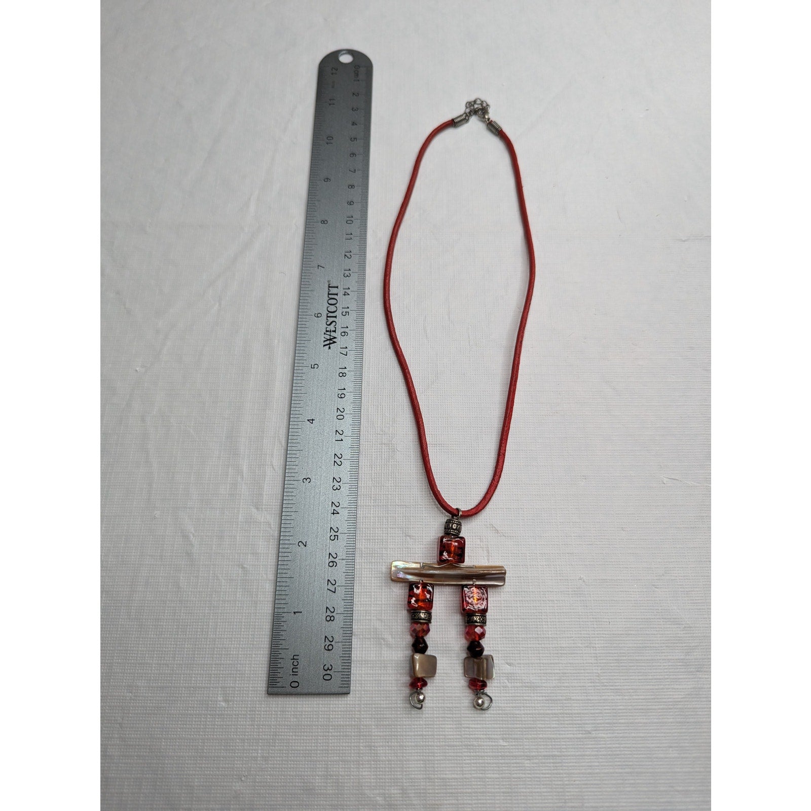 Vintage Rolled Rope Style Red and Beige Glass Pendant Necklace