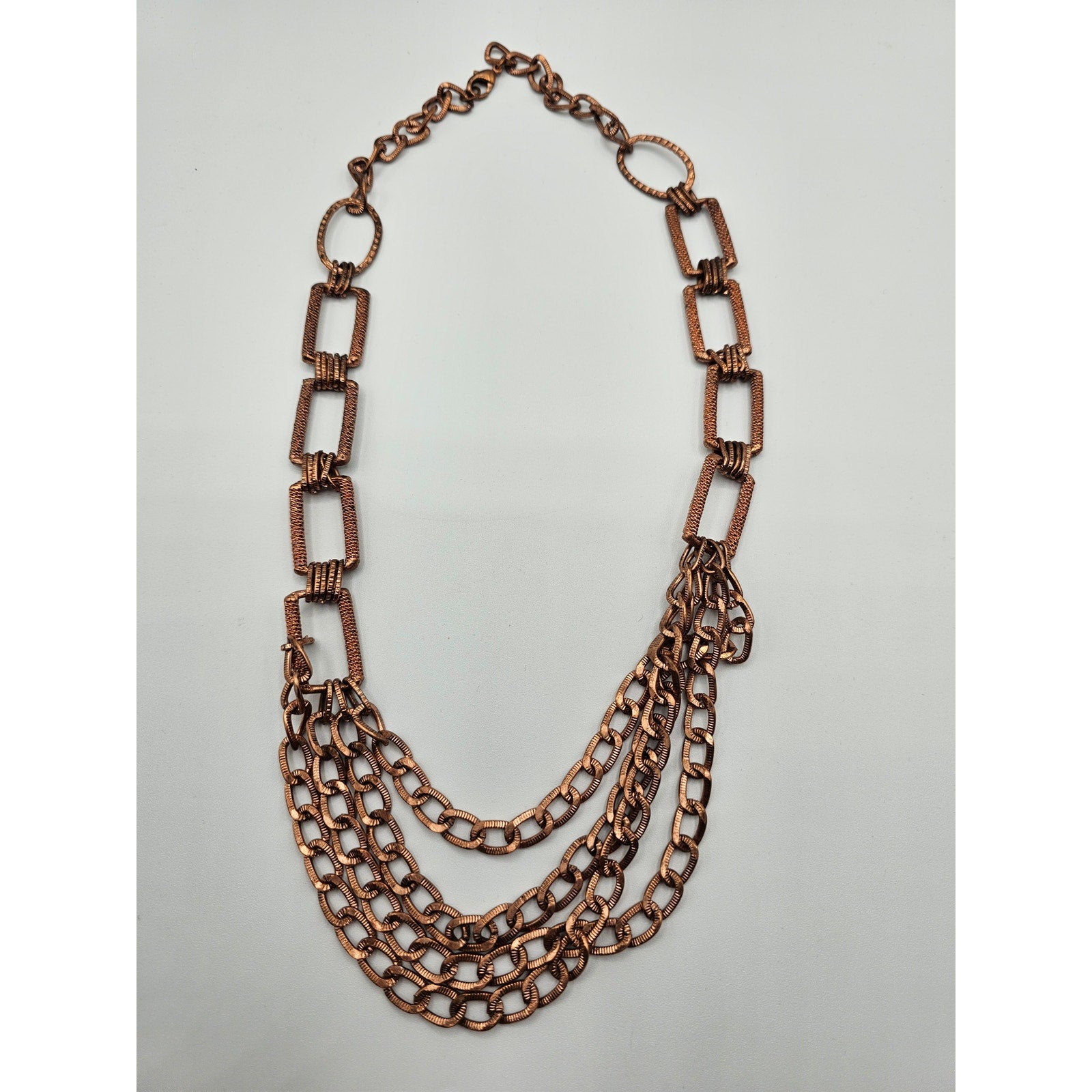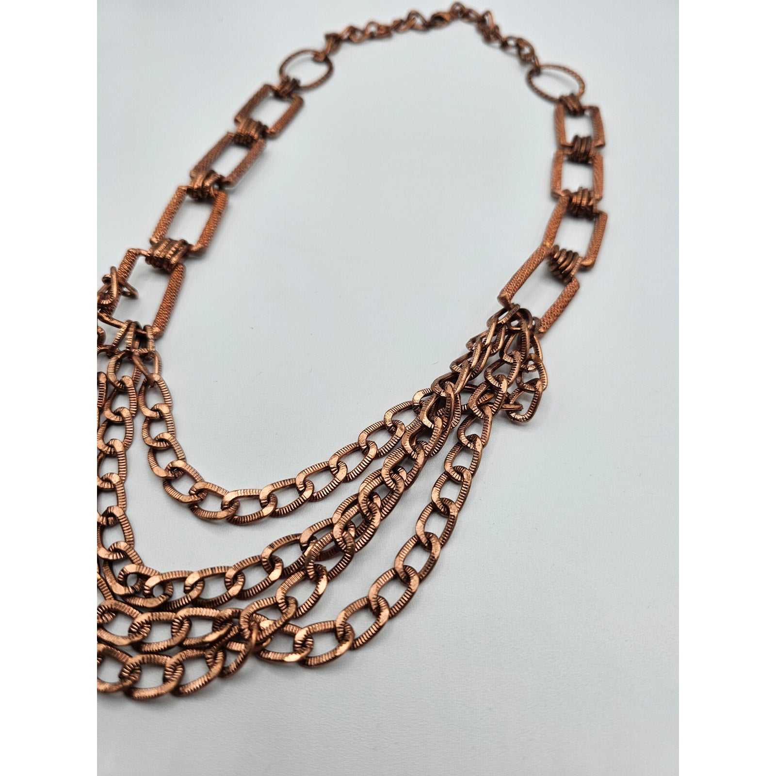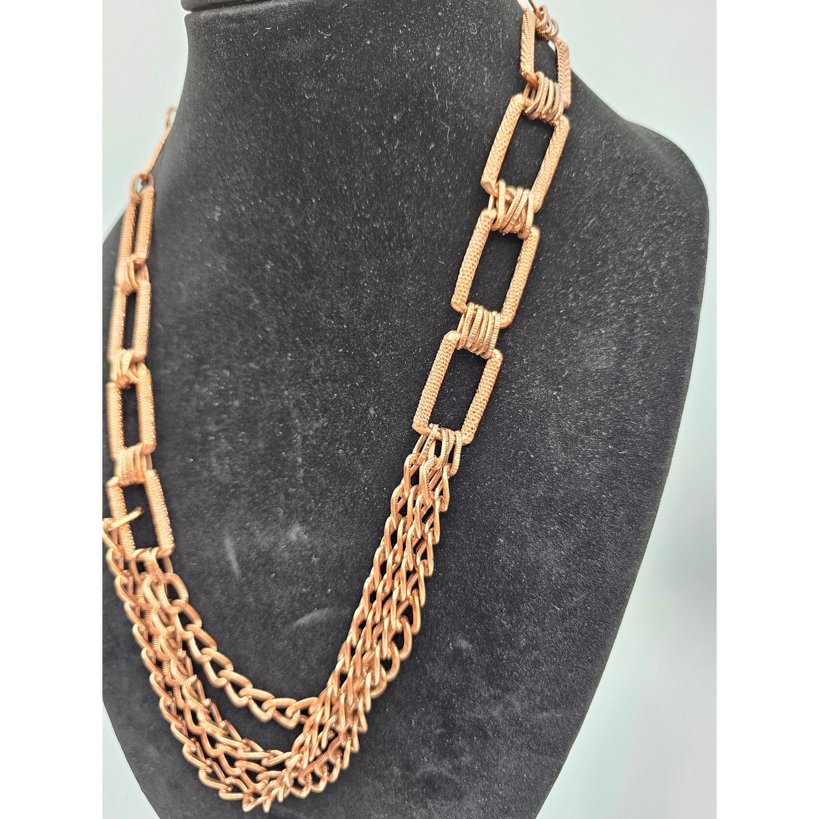 This vintage necklace is a true gem from the 1980s. Its rose gold tone multi-chain link design is simply stunning. The square chain adds a touch of uniqueness to this piece, making it a must-have for any antique collector. The necklace is perfect for those who appreciate vintage fashion and want to add a touch of elegance to their outfit. Don't miss out on the chance to own this beautiful piece of history.