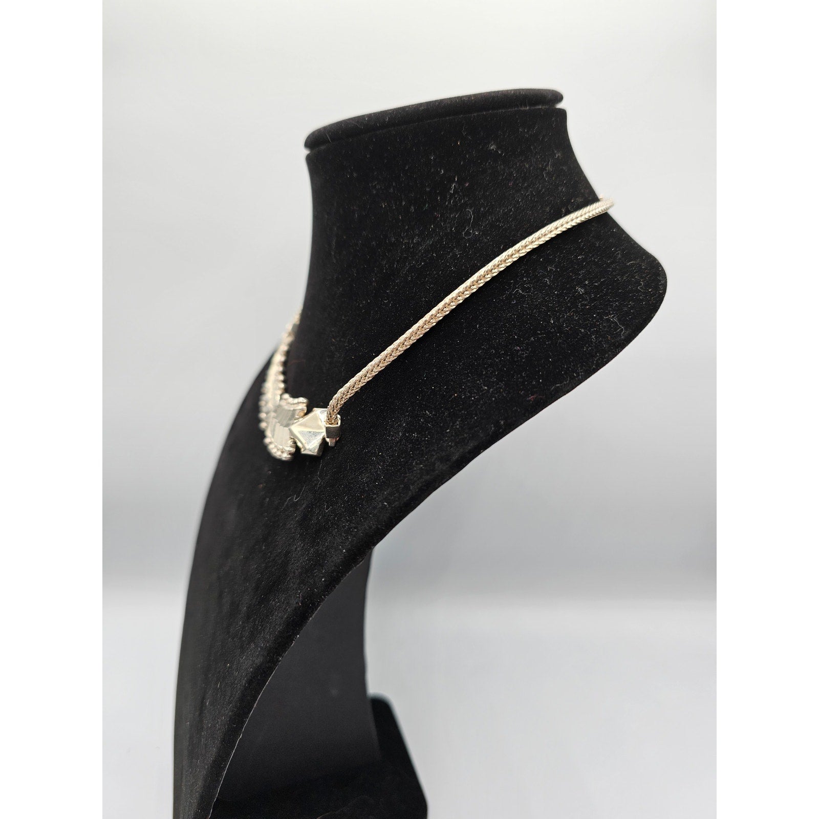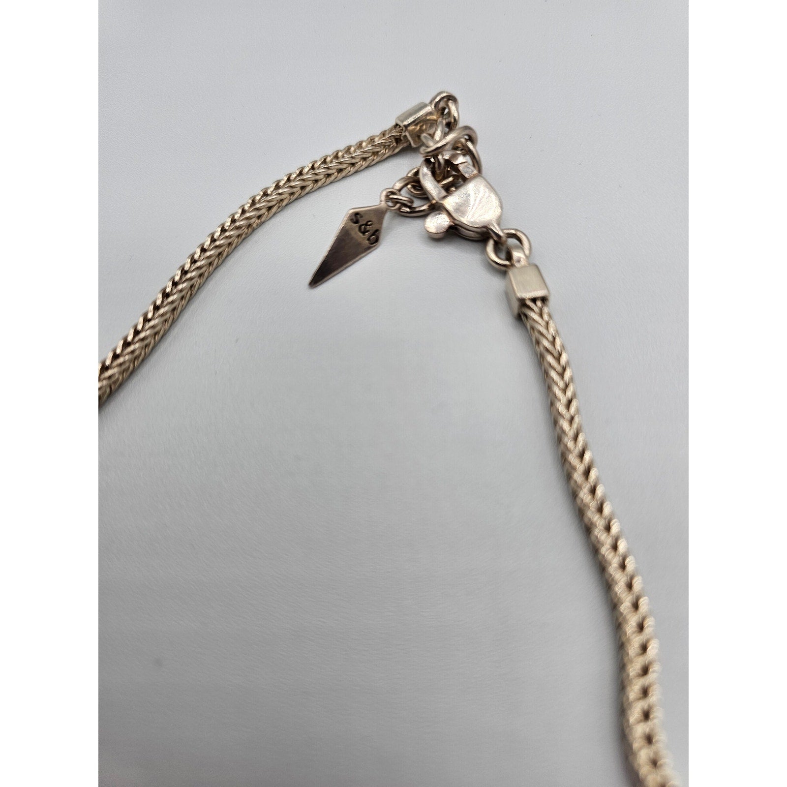 Add a touch of vintage elegance to your outfit with this stunning S&B women's gold tone arrow chain necklace, dating back to the 1990s. The delicate arrow design is perfect for any occasion, whether you're dressing up for a night out or adding a touch of sophistication to your everyday look. The gold tone finish gives this piece a timeless appeal that is sure to turn heads. Crafted with care and attention to detail, this antique necklace is a one-of-a-kind piece that is sure to become a treasured addition to your jewelry collection. So why wait? Treat yourself or someone special today and add this beautiful necklace to your wardrobe.