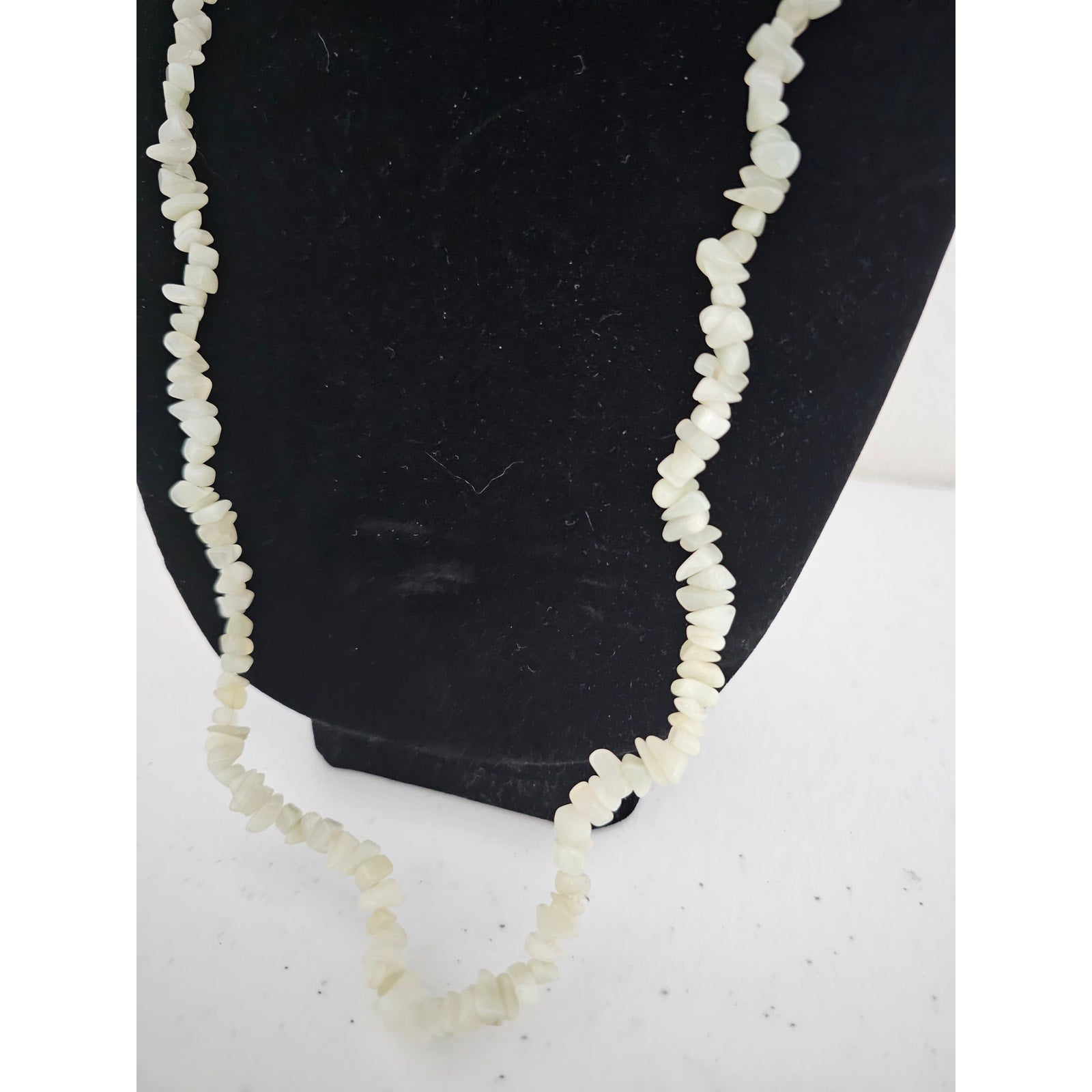 Vintage Single Strand Chip Stone Beaded NEcklace Light Sage Green Soapstone