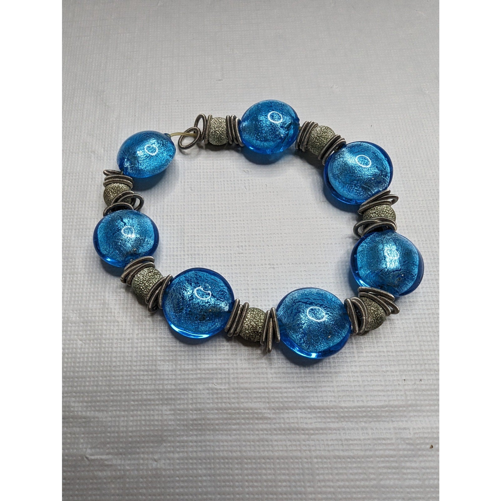 Vintage Single Strand Glass Beaded Bracelet Blue and Silver