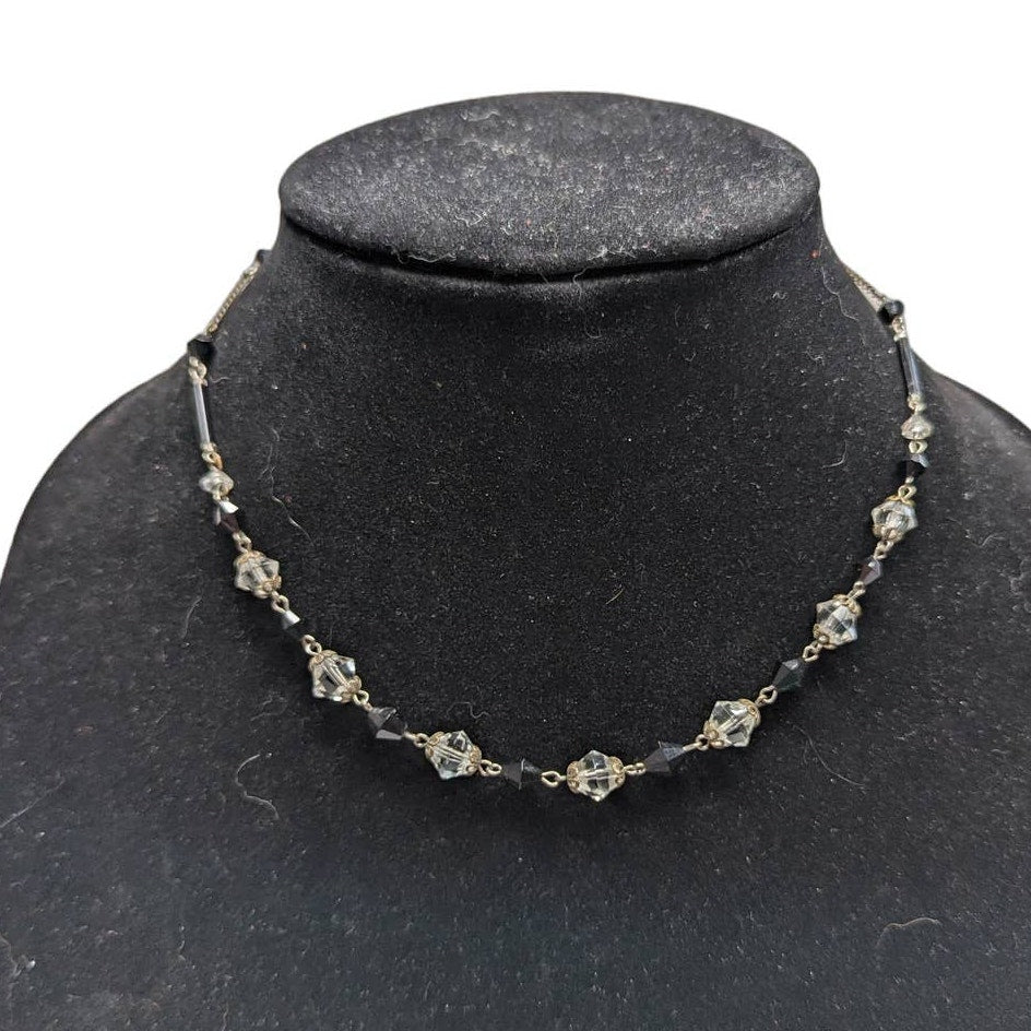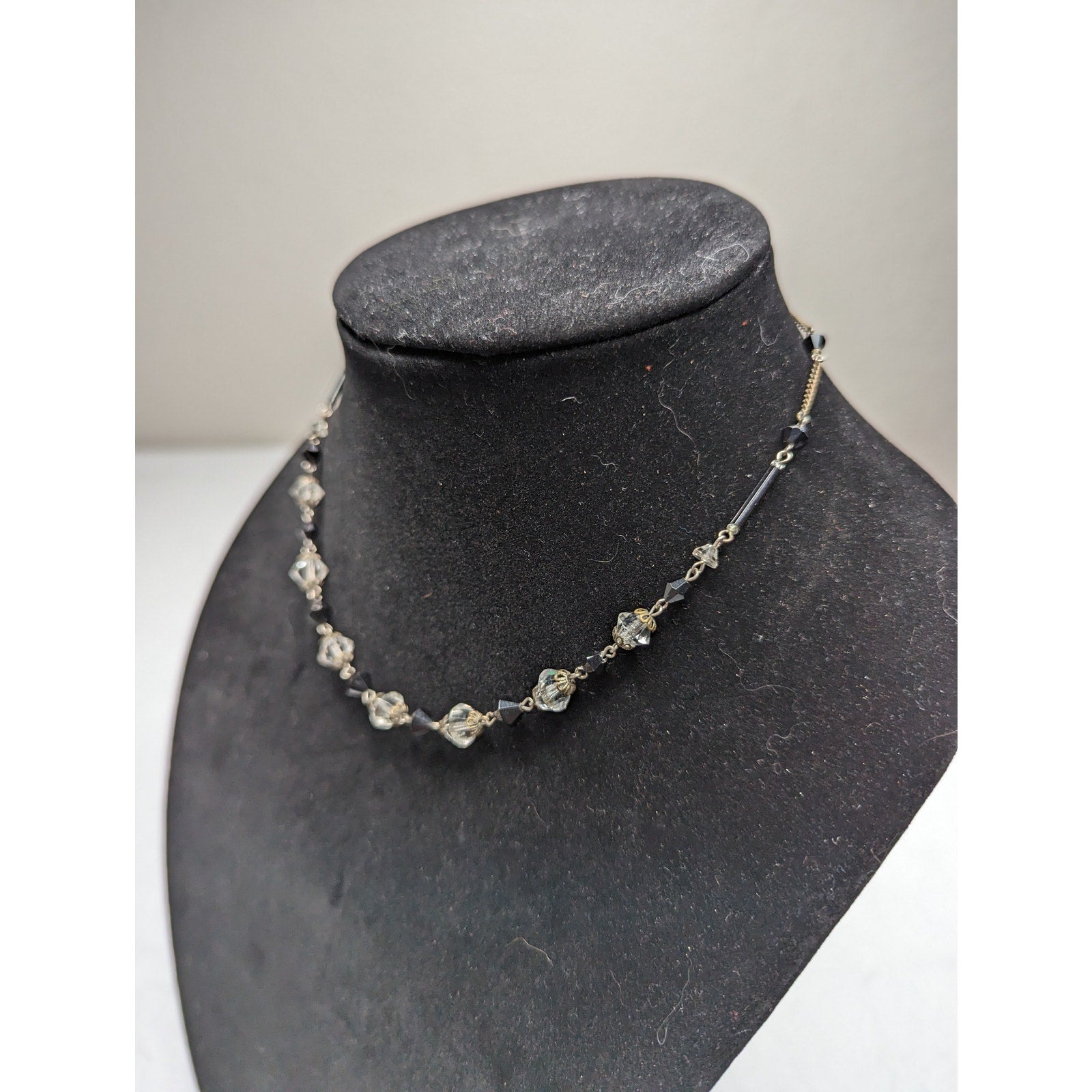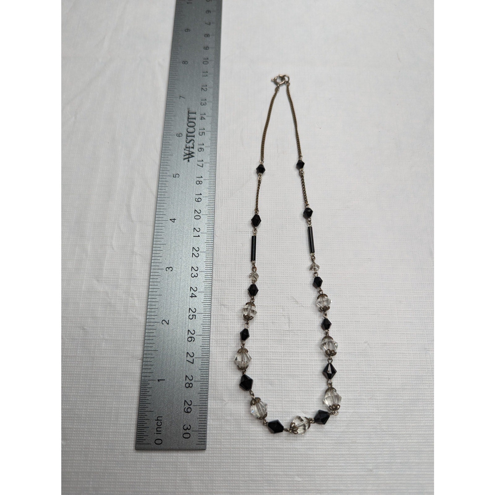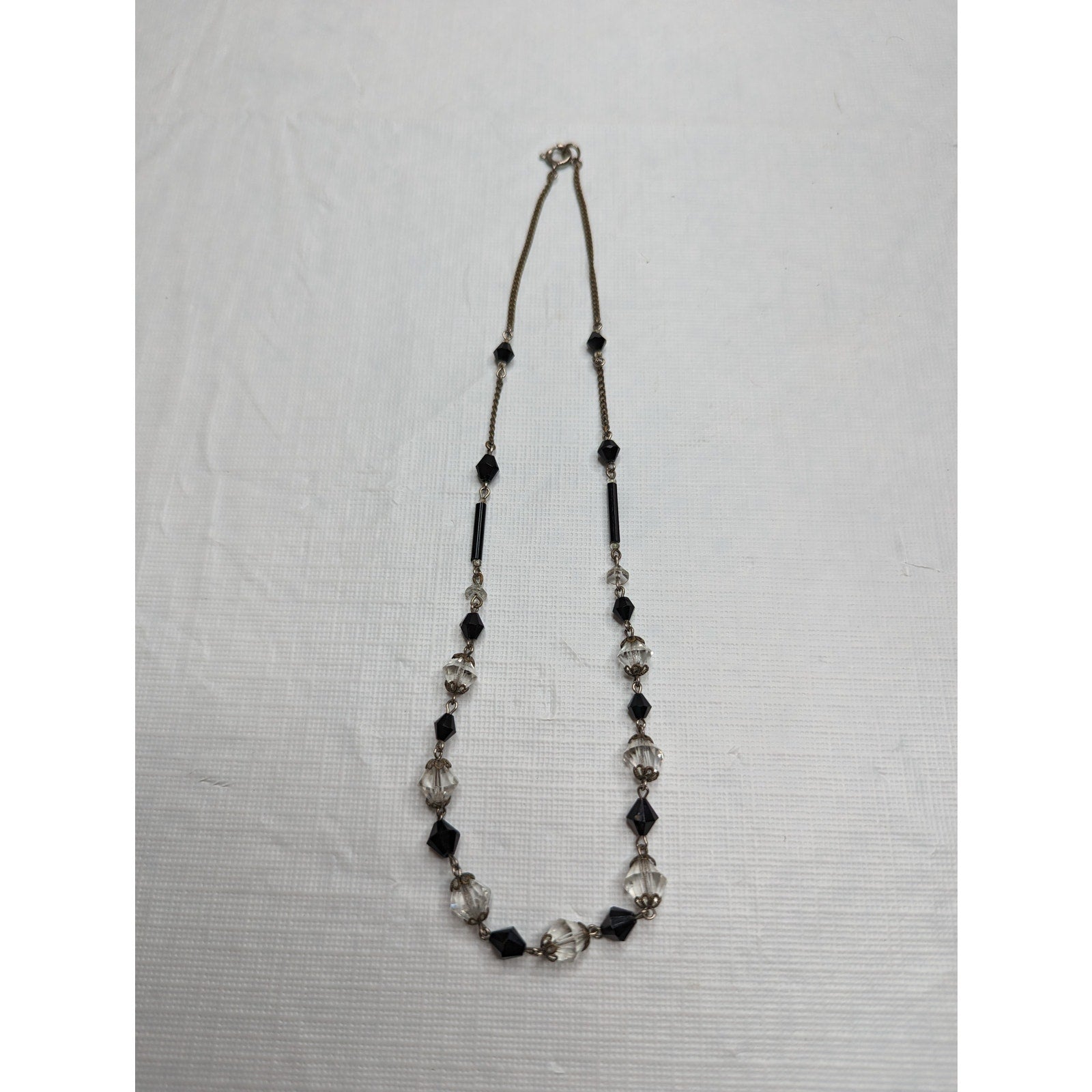 Vintage Single Strand Glass Beaded Necklace Black and Clear Chain