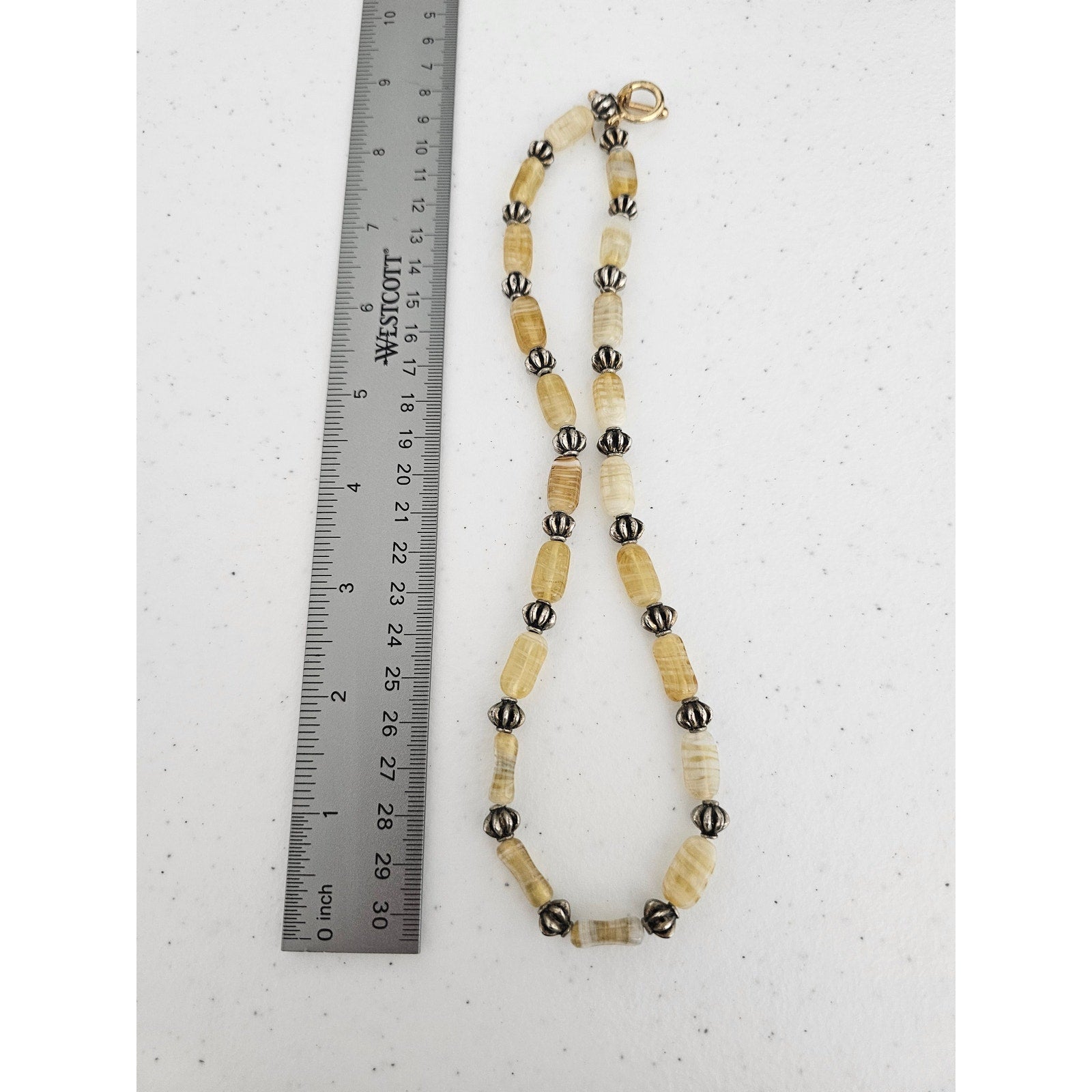 Vintage Single Strand Glass Beaded Necklace Yellow Tones Silver Beads