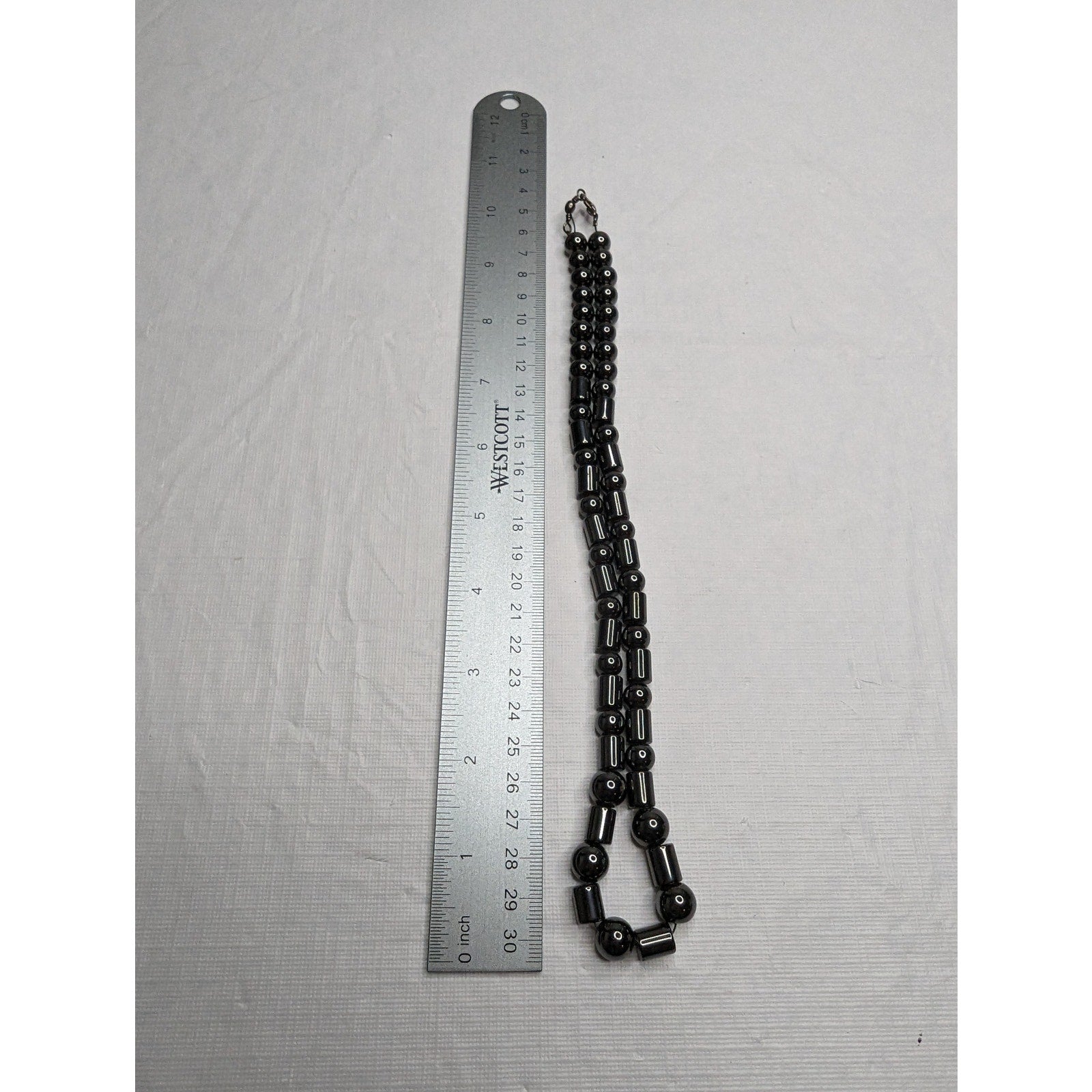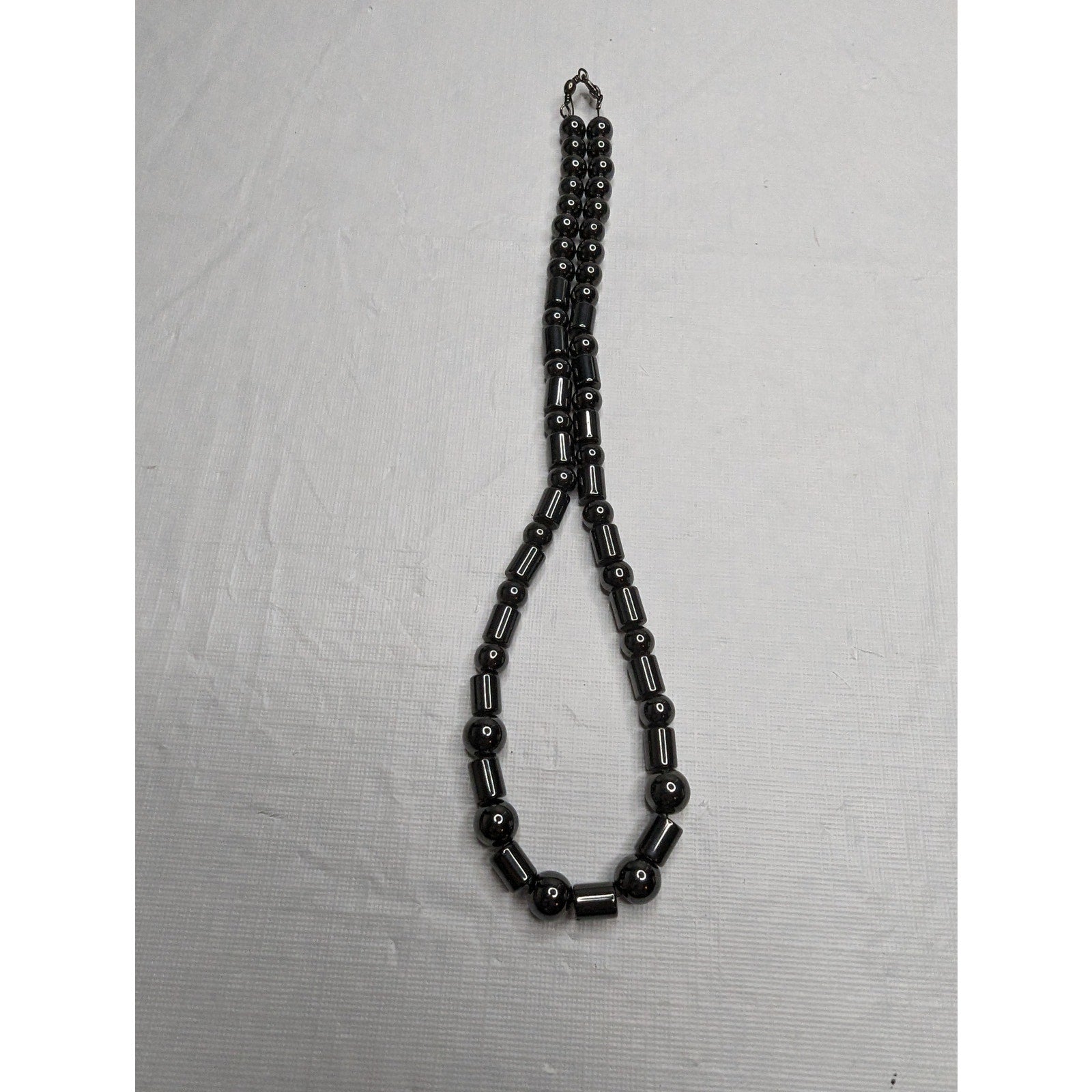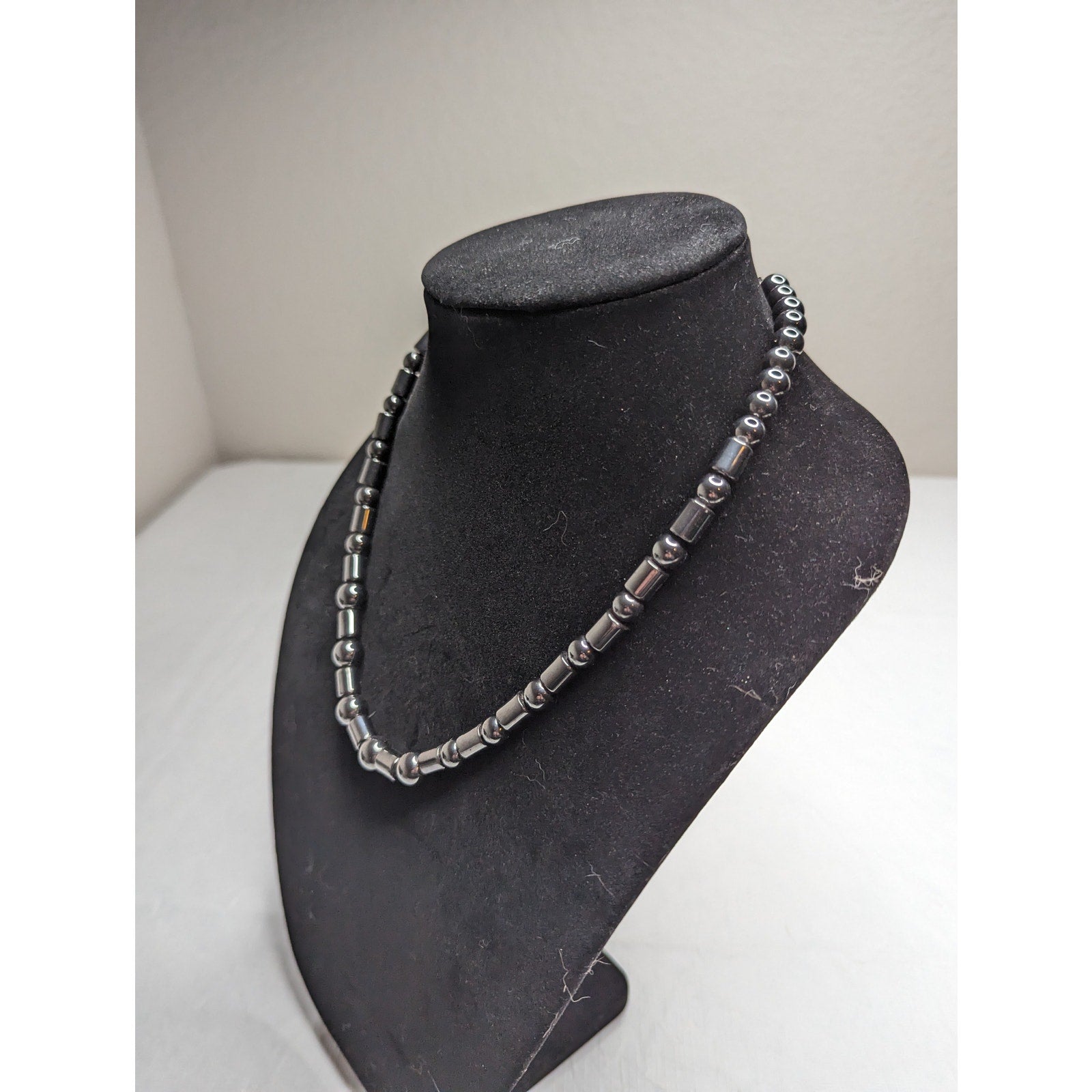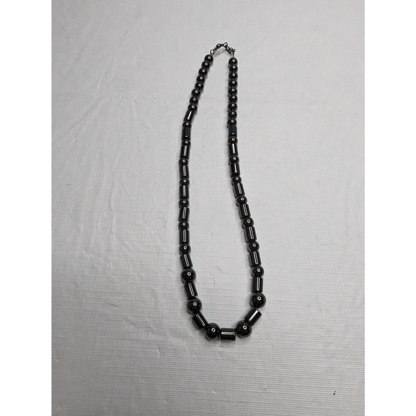 This vintage silver necklace features a single strand and a magnetic clasp. The timeless design makes it a perfect addition to any jewelry collection. The necklace has been carefully crafted to ensure durability and will make a great addition to any outfit. The magnetic clasp ensures easy wear and removal, making it a convenient accessory. This piece is perfect for those who love vintage jewelry or those who appreciate quality craftsmanship.