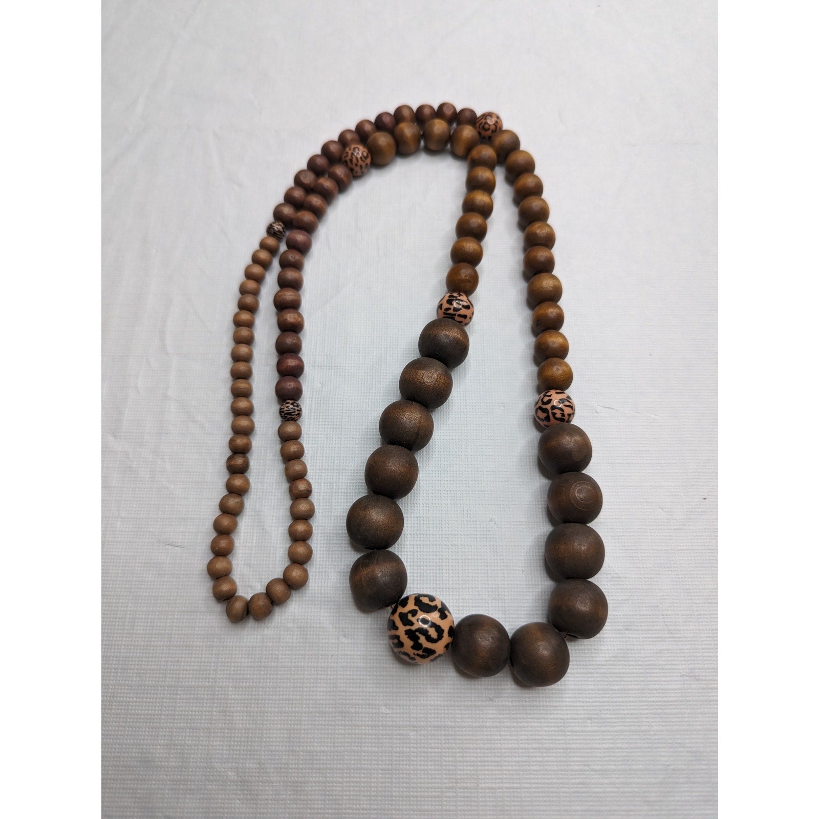 Add a touch of timeless elegance to your jewelry collection with this vintage wooden necklace. Crafted with care, this single strand necklace features graduated round beads that will complement any outfit. The warm tones of the wood add a natural, organic feel to the piece. This necklace is perfect for anyone who loves unique, vintage jewelry. The wooden beads have a beautiful, subtle grain that makes each one truly one-of-a-kind. Whether you're dressing up for a special occasion or simply adding a touch of elegance to your everyday look, this necklace is sure to become a go-to favorite.