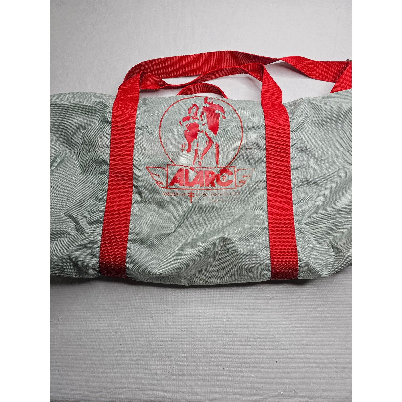 Vintage The Original Boomer Bag Nylon Duffel Bag Silver Red