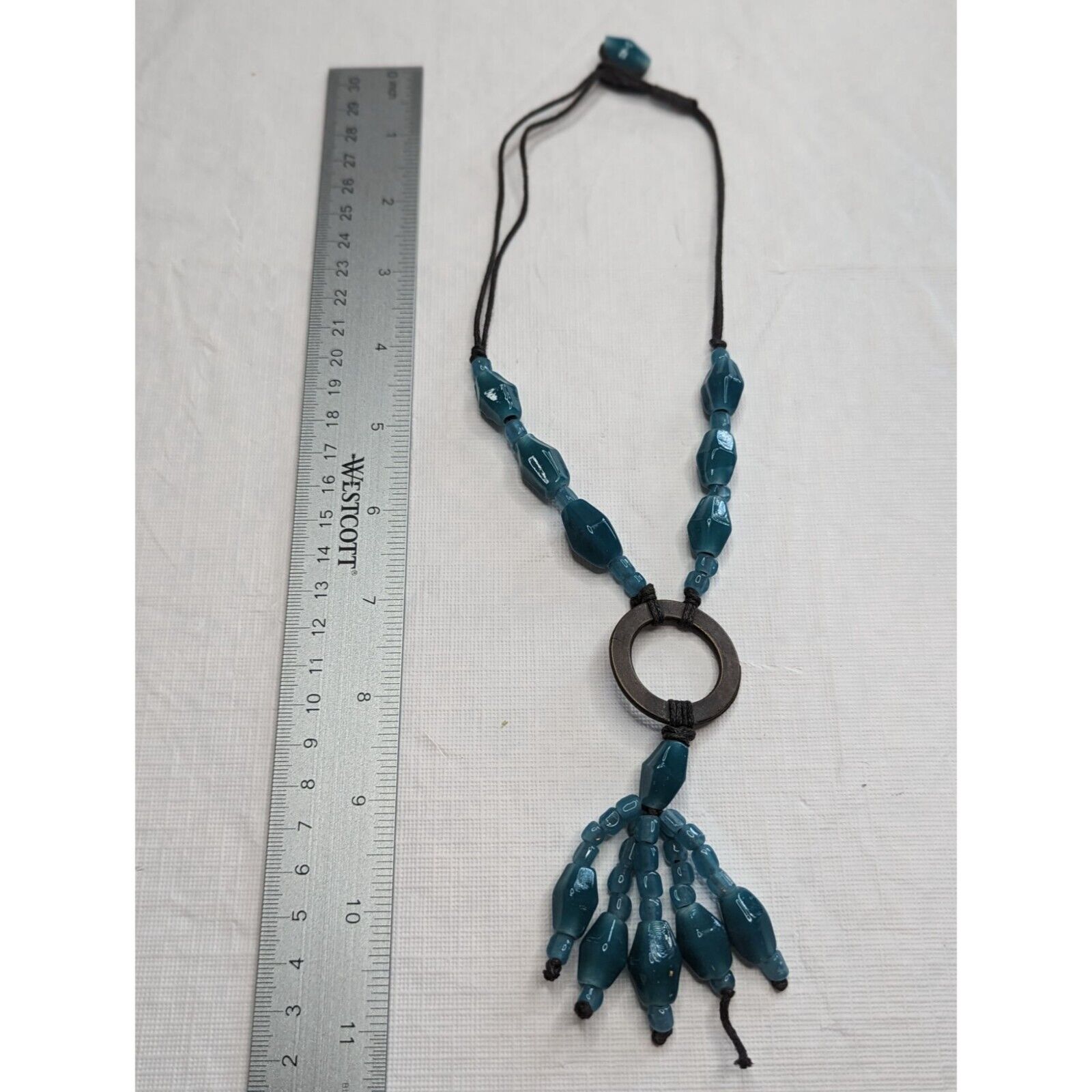Vintage Turquoise Glass Beaded Southwestern Necklace Silver Tone