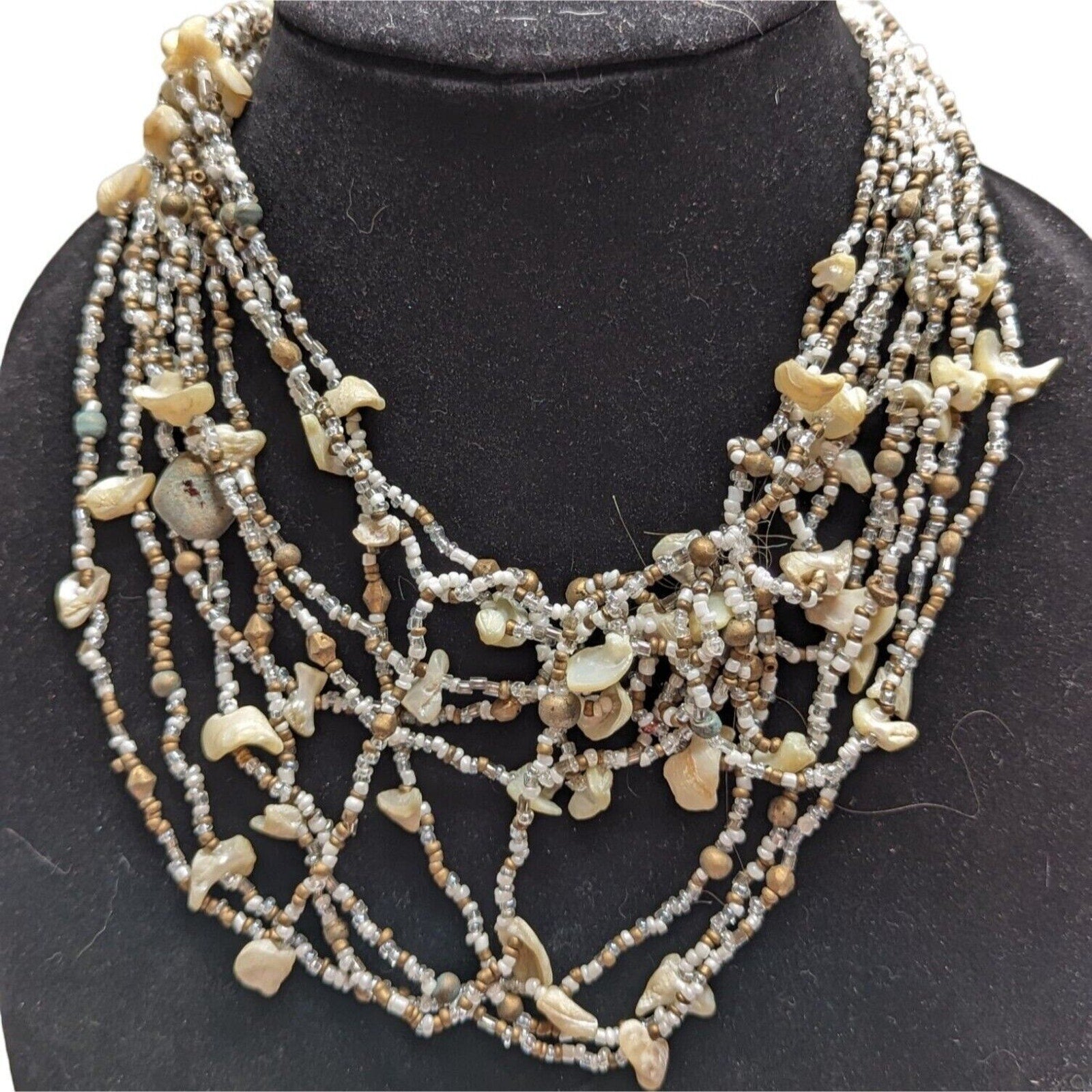 Vintage Womens Multi Strand Ivory Stone Mother Of Pearl Necklace 1970s