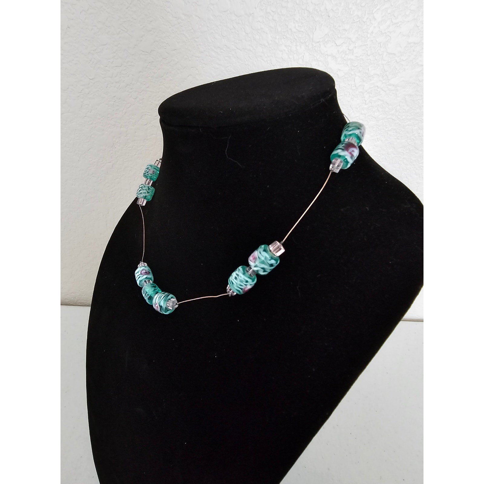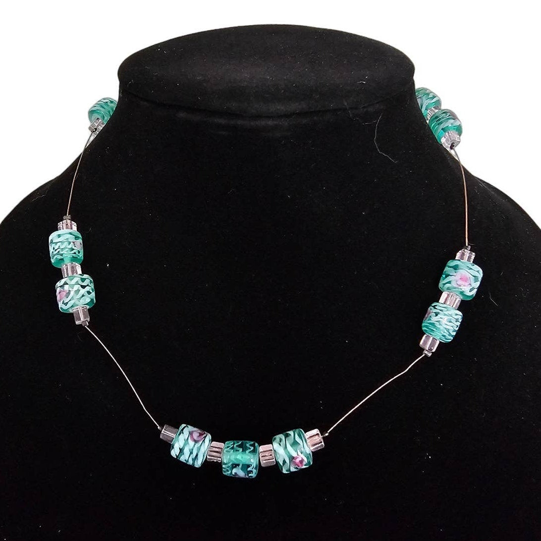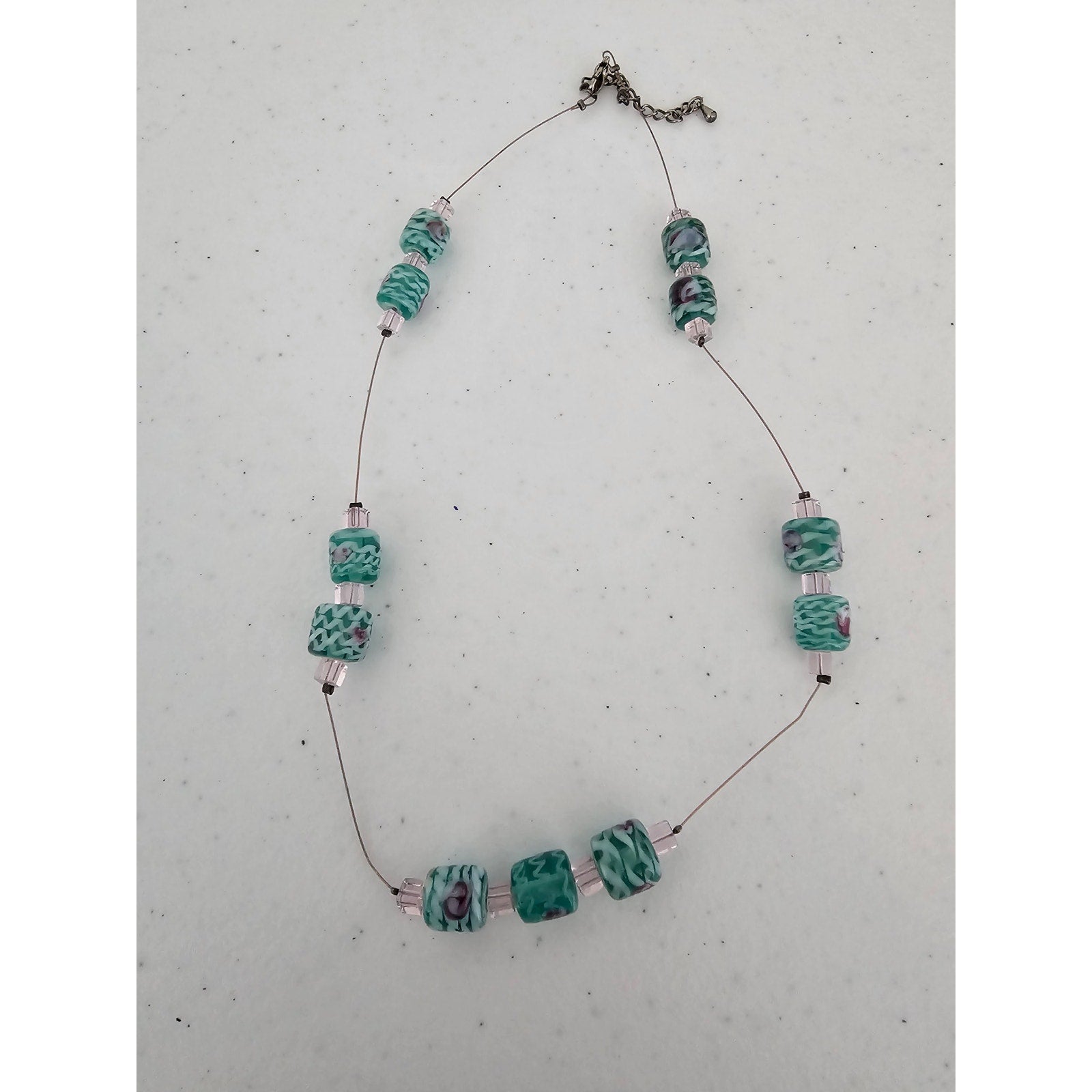 Vintage Y2K 2000s Single Strand Beaded Necklace Glass Cylinder Beads Blue
