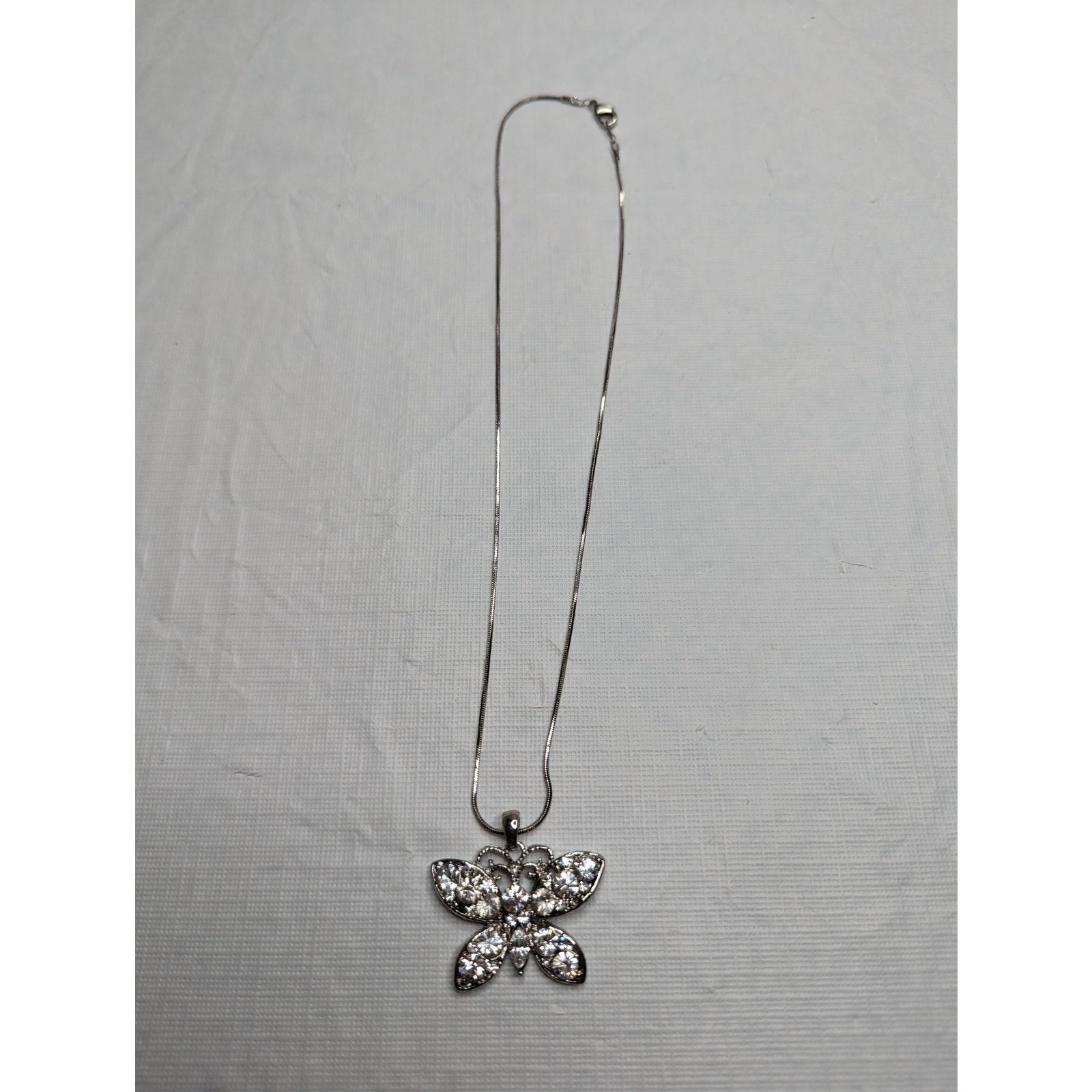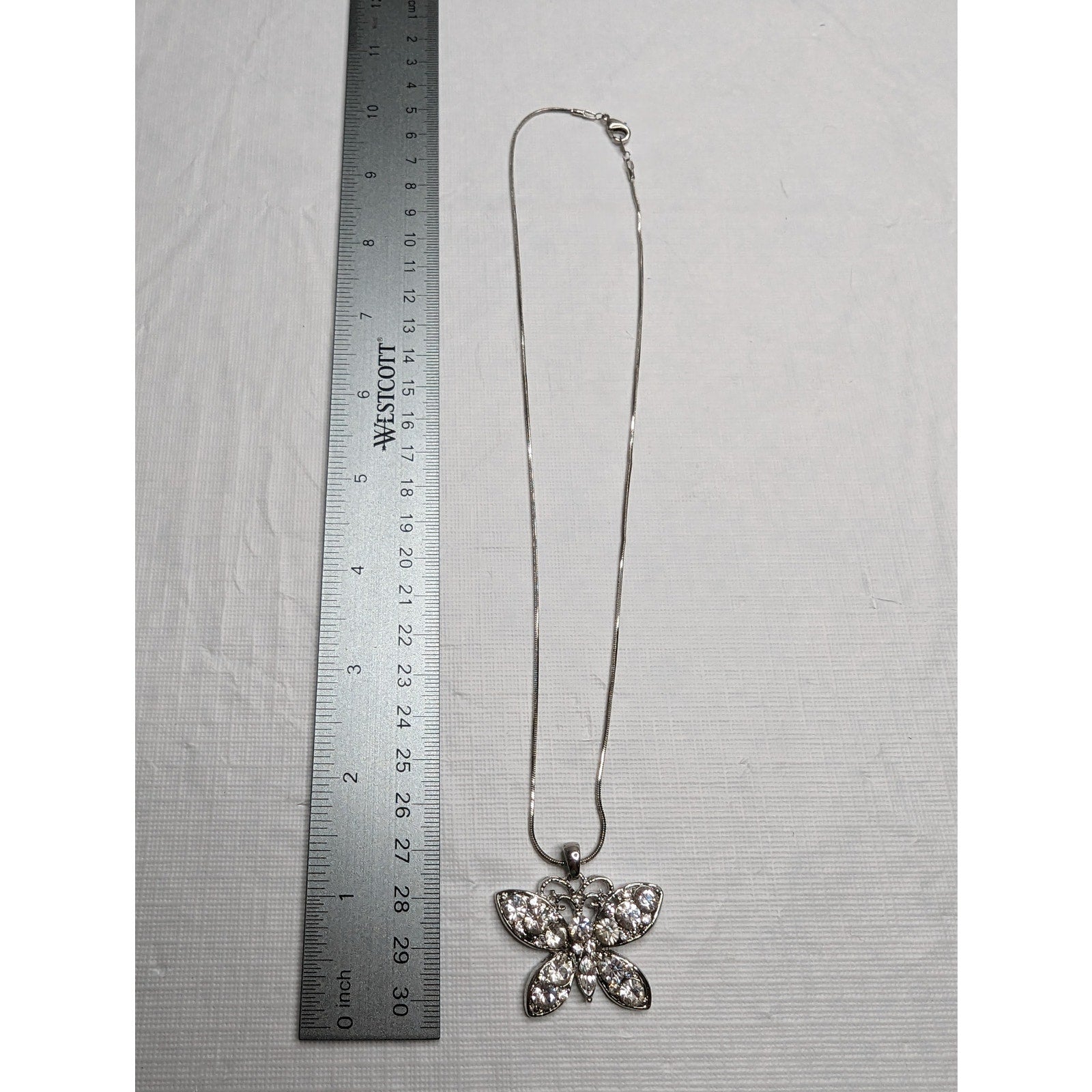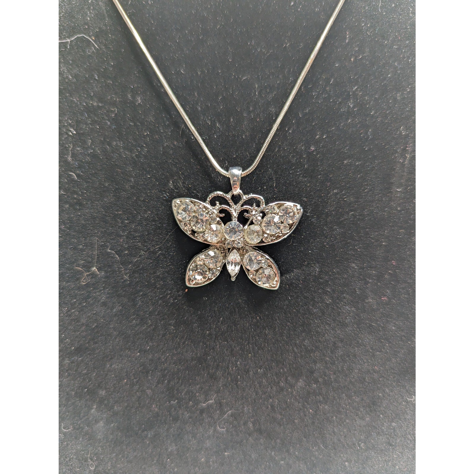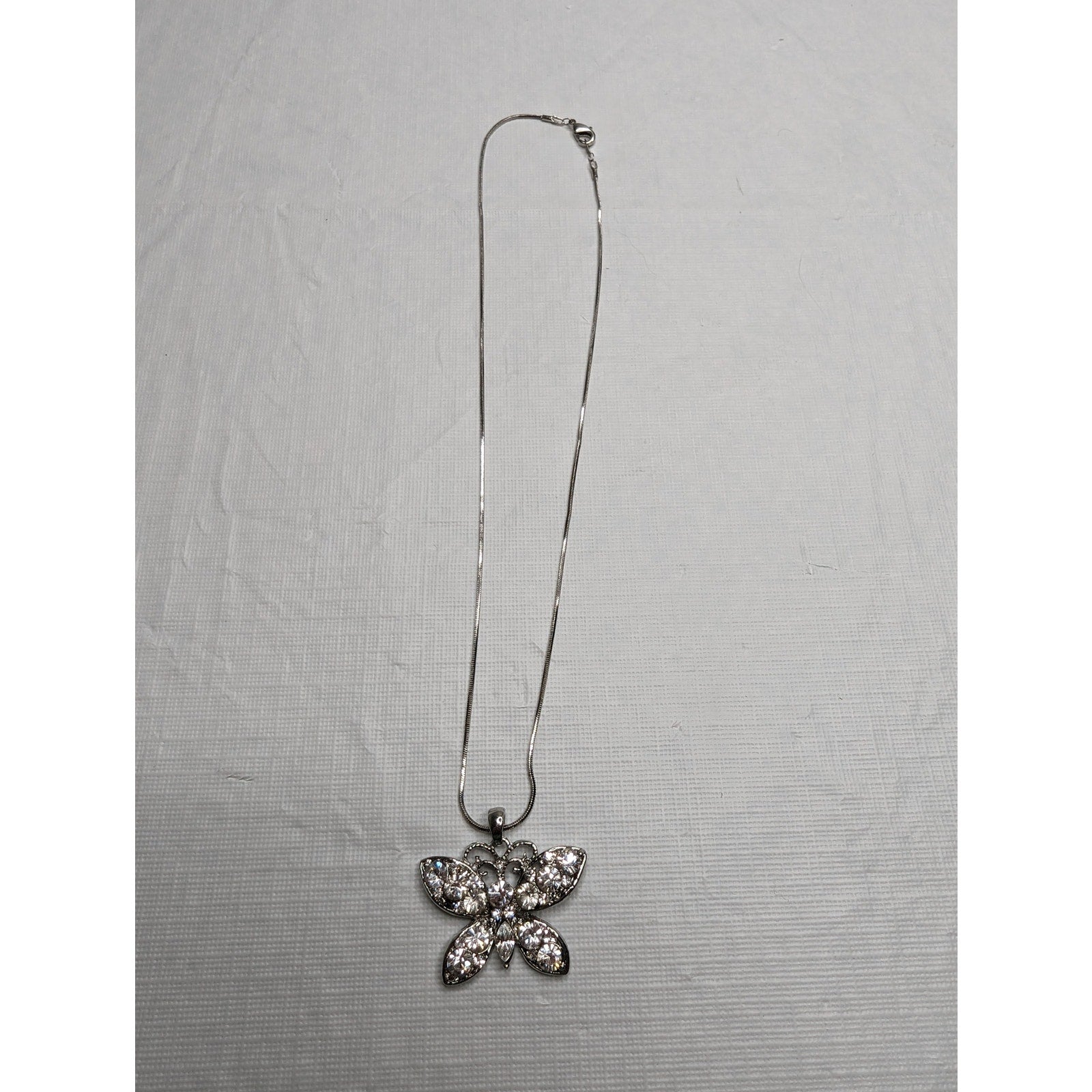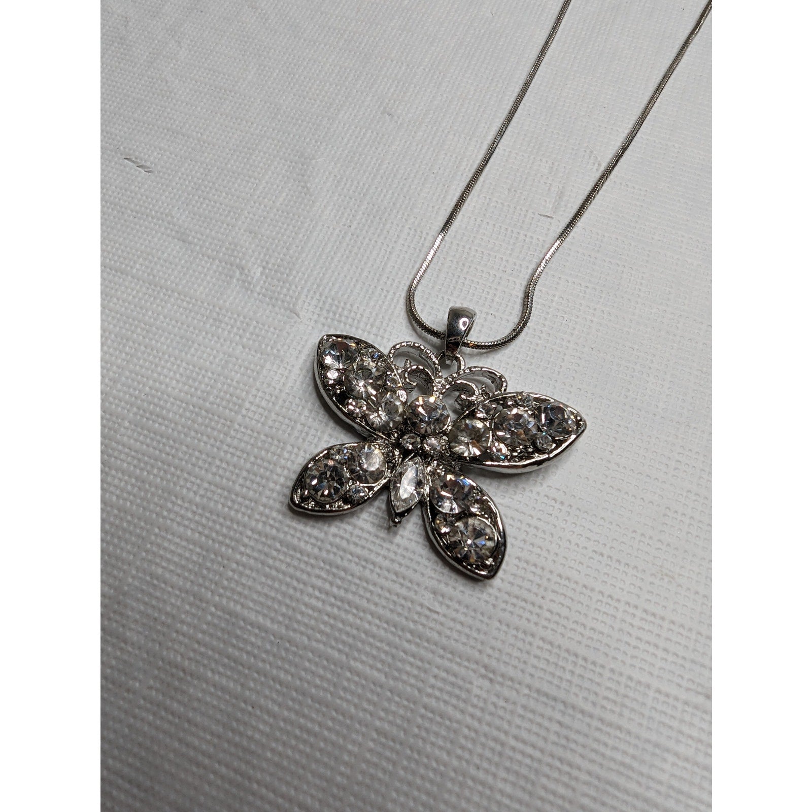 Vintage Y2K 2000s Womens Pendant Necklace Butterfly Rhinestone