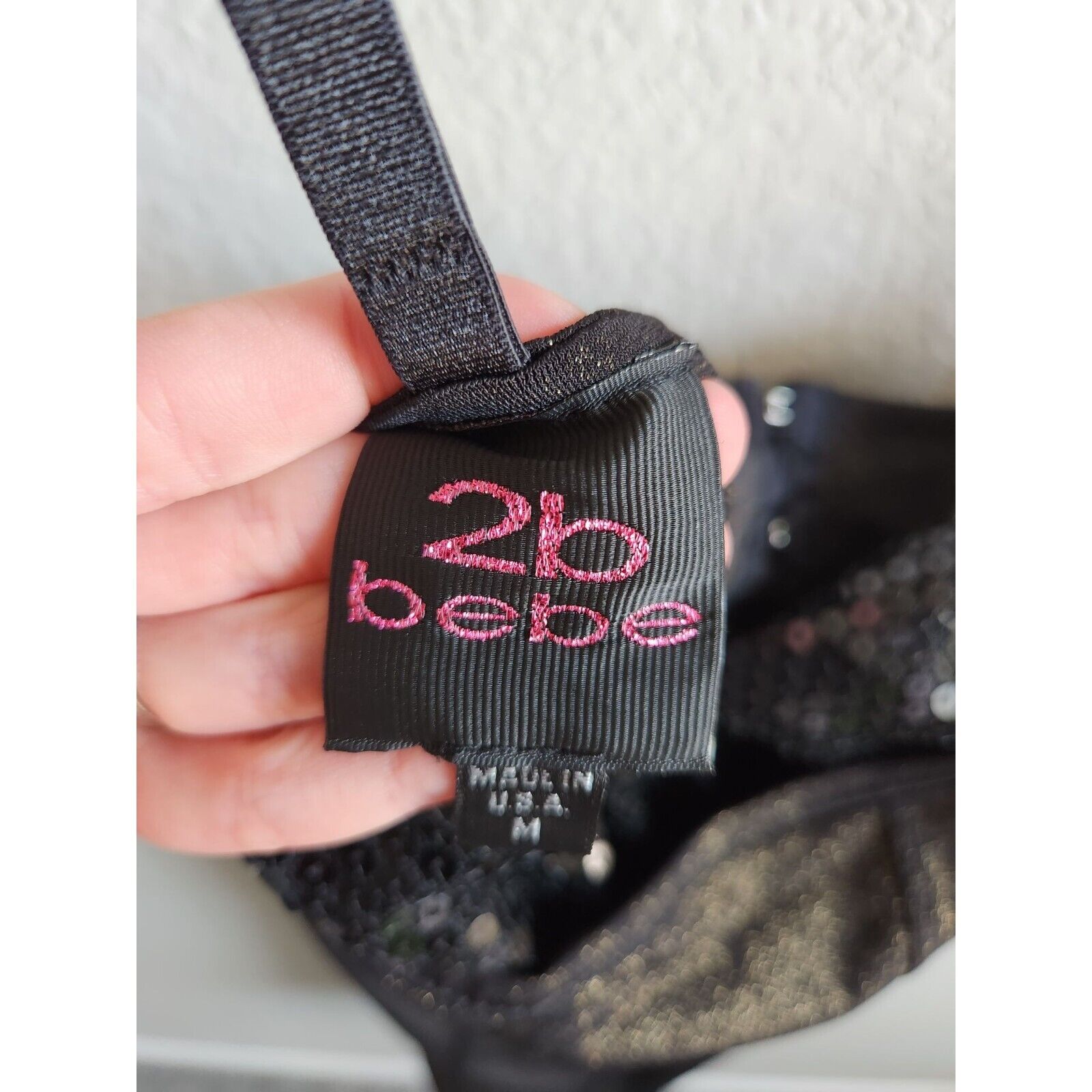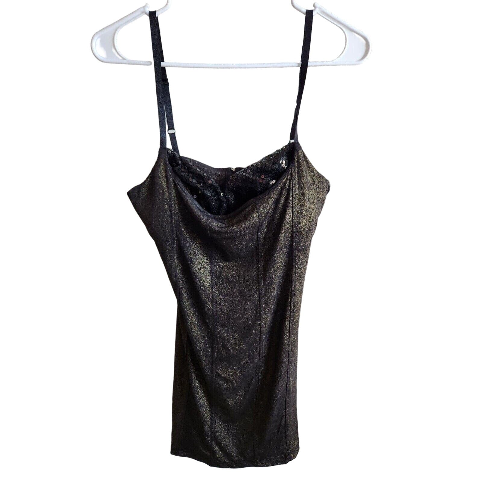 Vintage Y2K 2b by Bebe Womens Sz M Bodycon Party Dress Black Gold Sequin