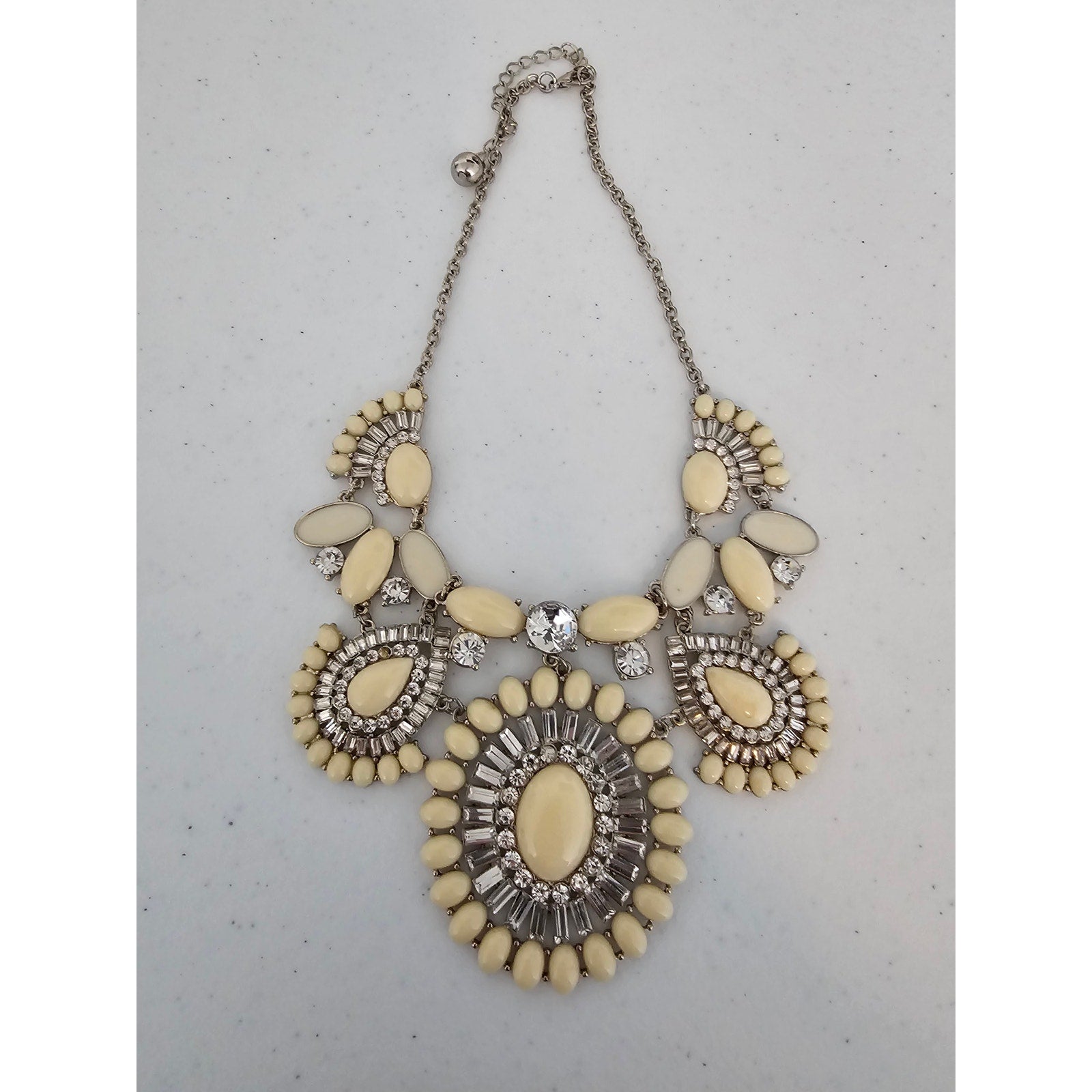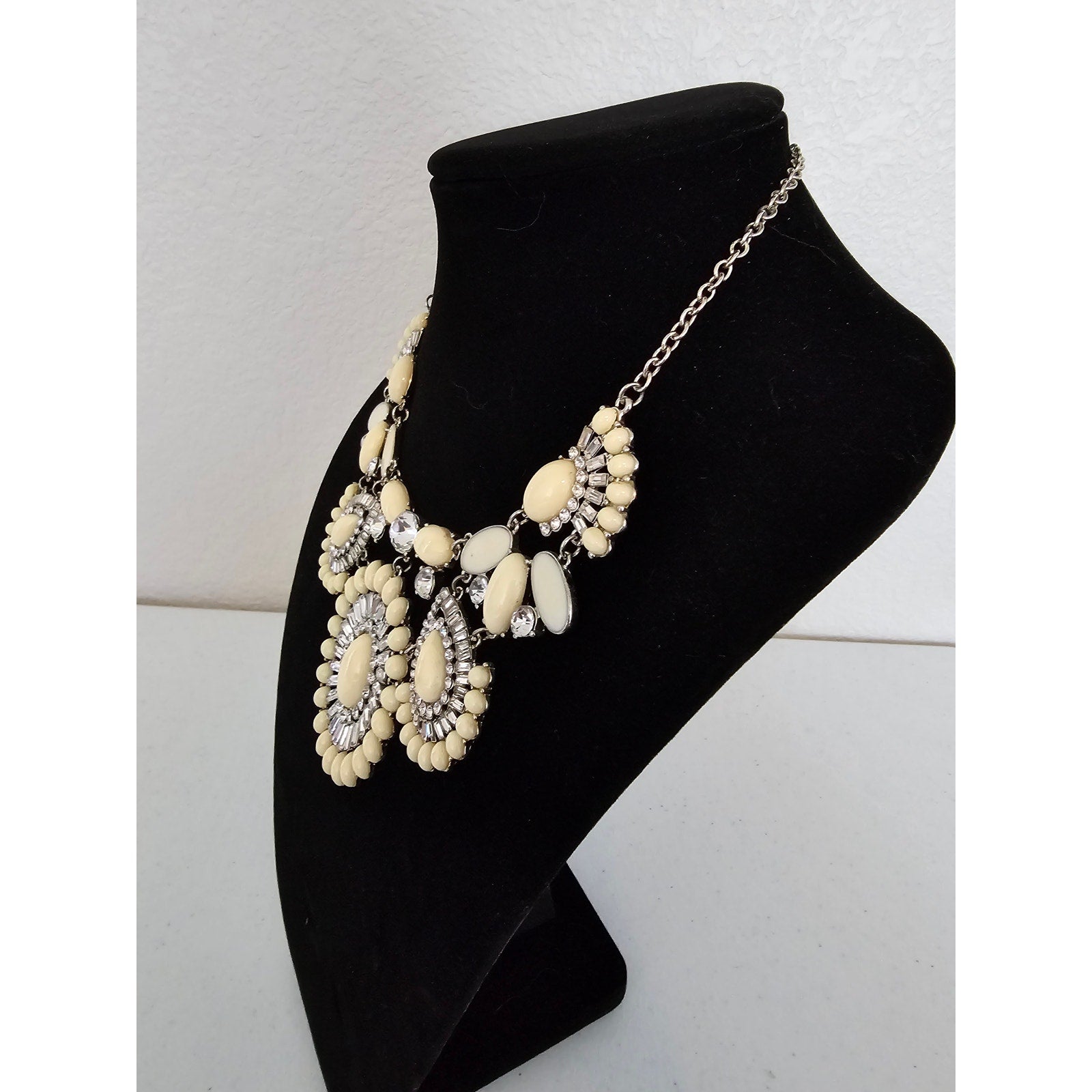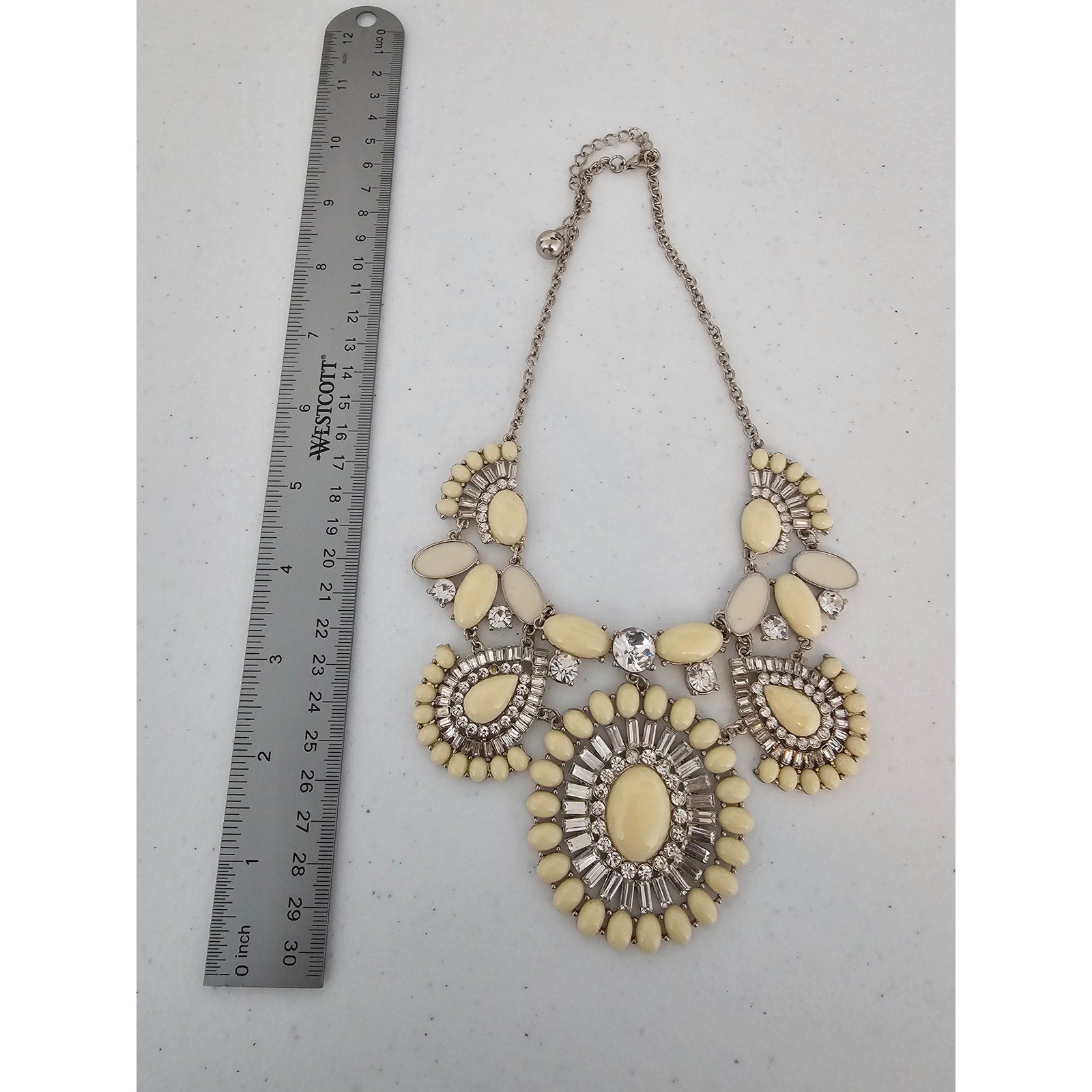 Vintage Y2K Art Deco Style Bib Necklace Bold Flowers Cream w/ Rhinestones