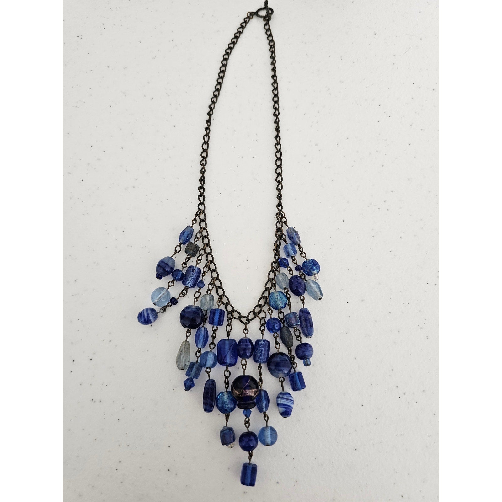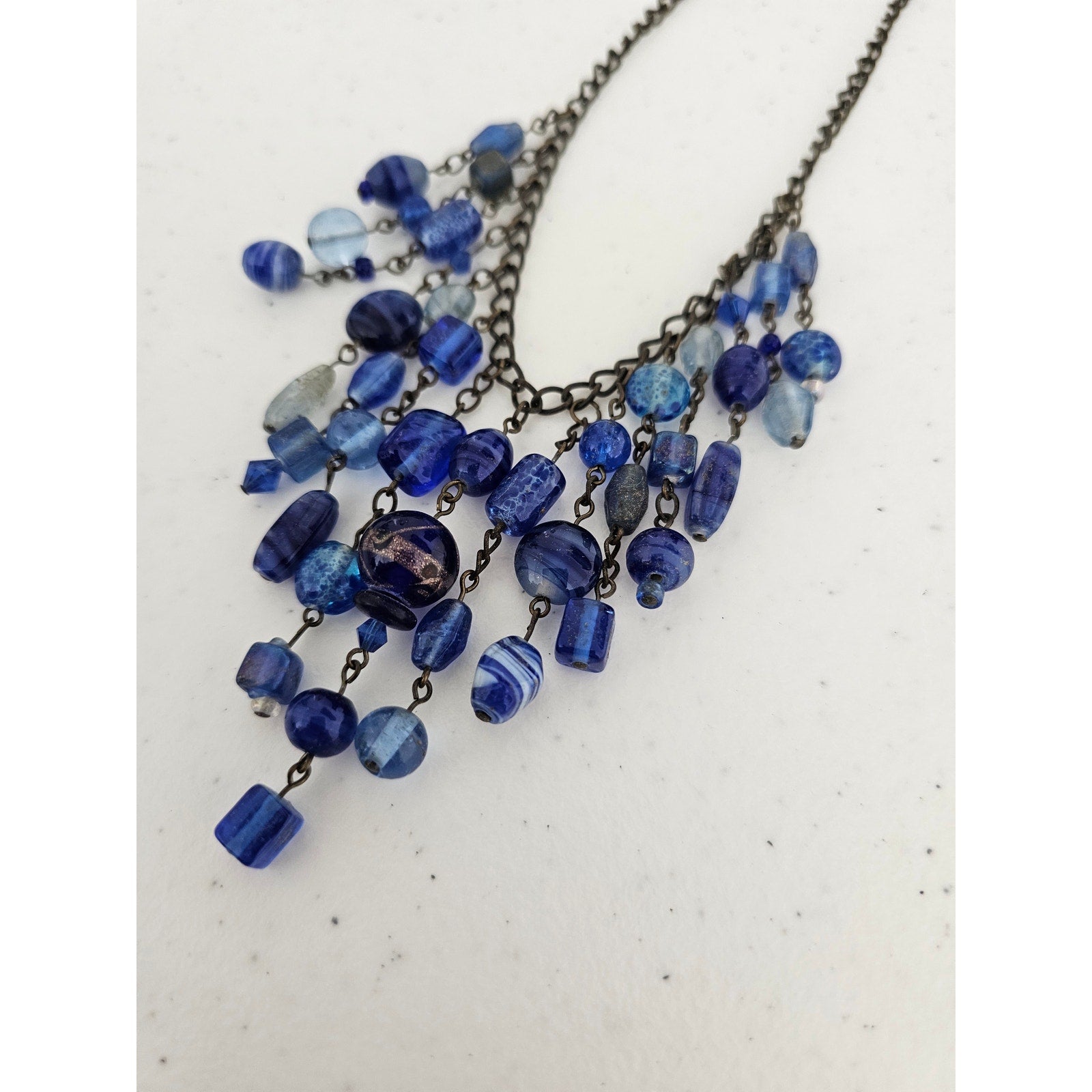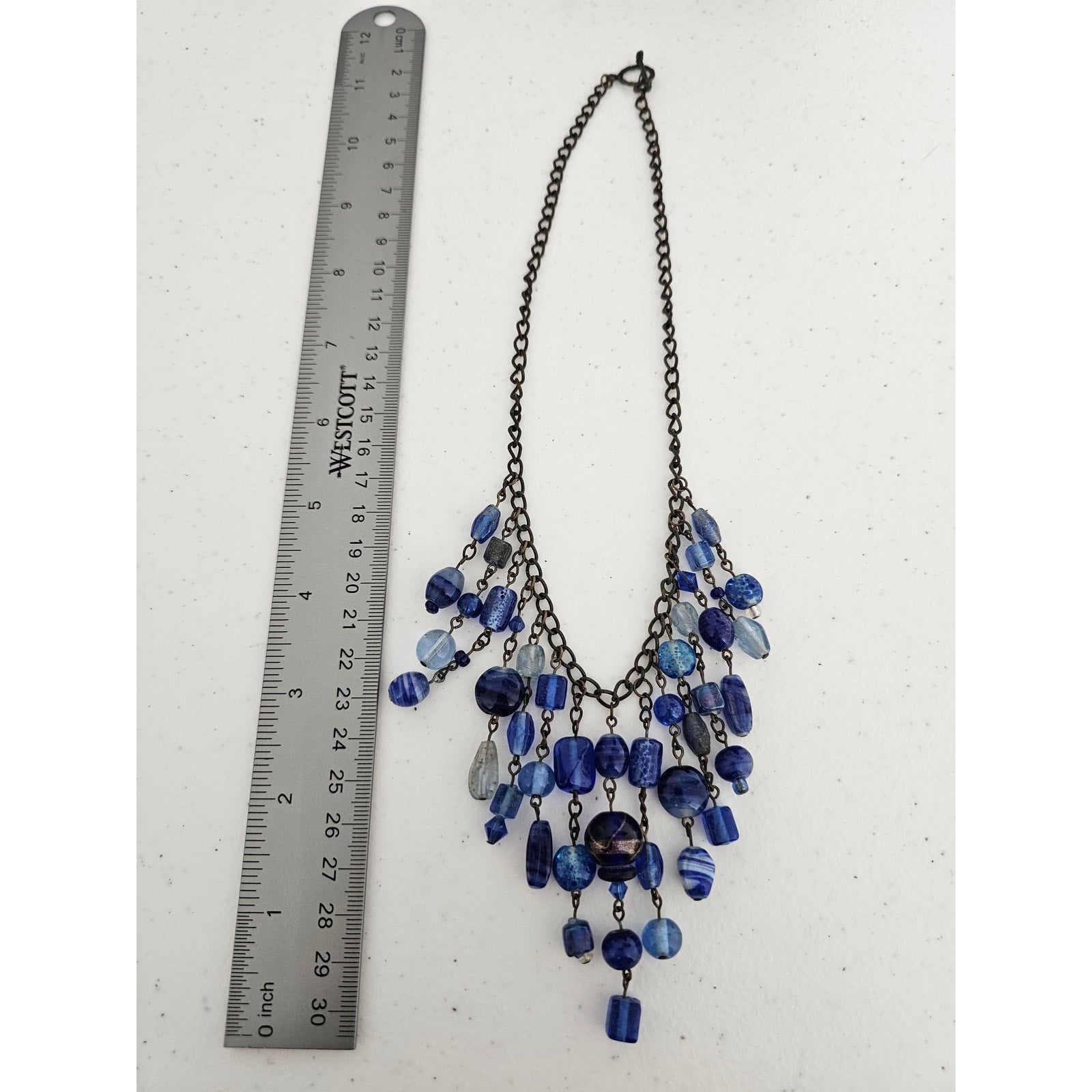 Vintage Y2K Bib Style Blue Glass Beaded Necklace Formal Chain