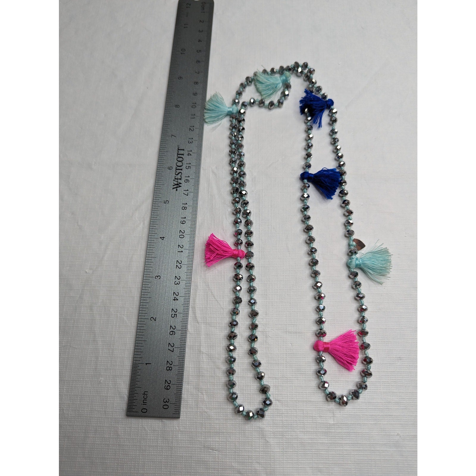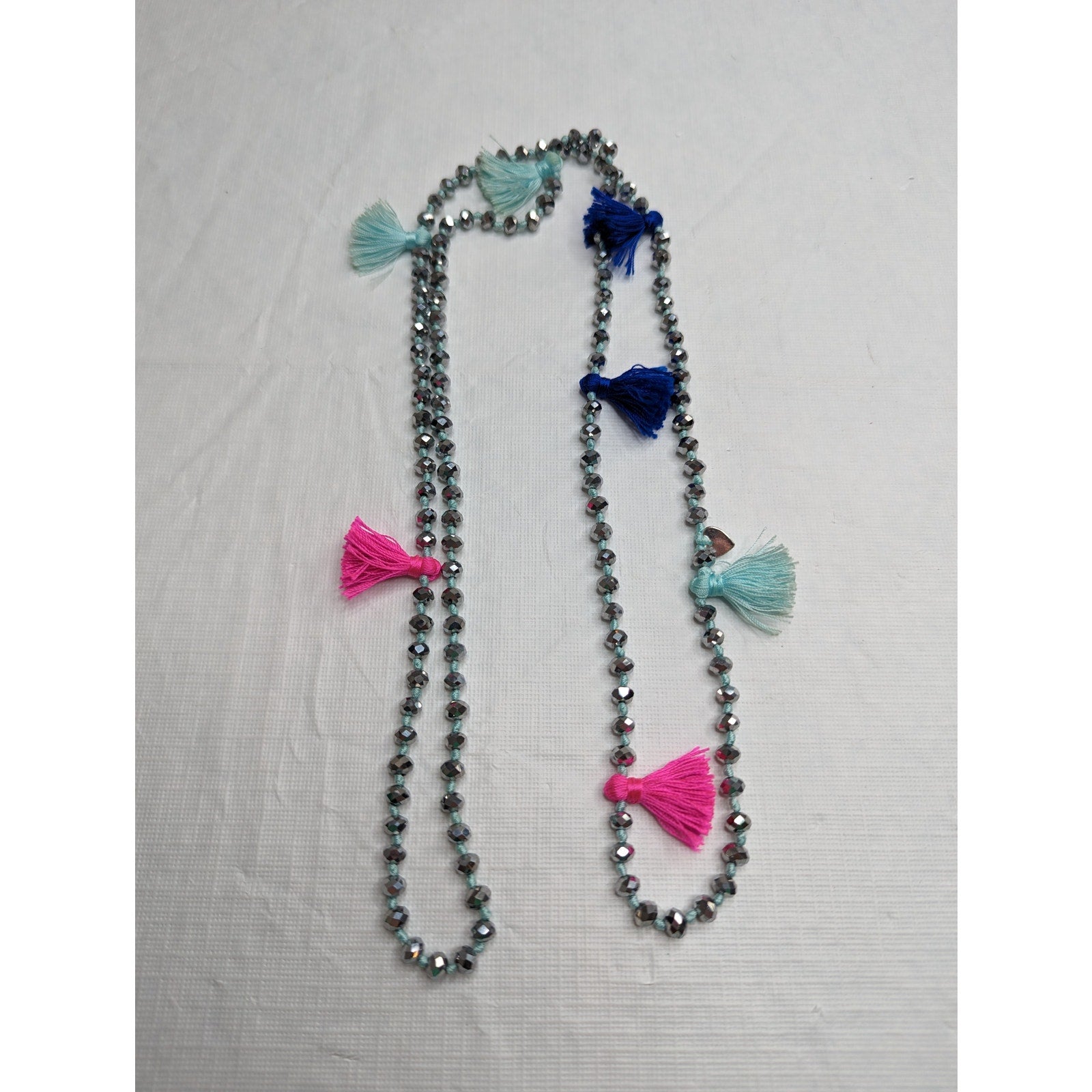 This vintage Y2K necklace is a stunning addition to any jewelry collection. The bright metallic tassels add a touch of glamour and sparkle to any outfit. The single strand design is versatile and can be worn with both casual and formal attire. Its unique style and craftsmanship make it a rare find for collectors of antique jewelry. Don't miss out on the opportunity to own this beautiful piece.