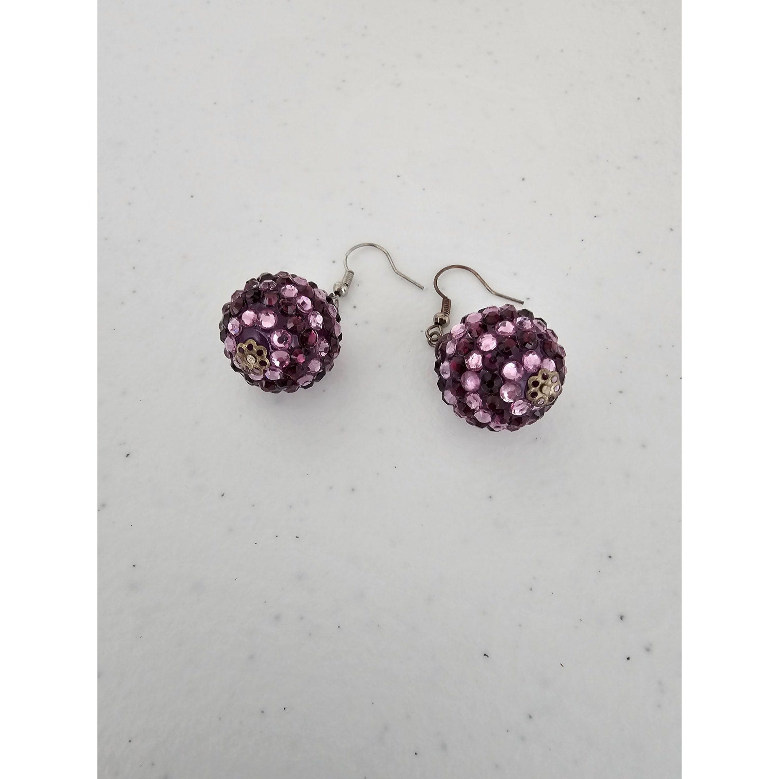 Vintage Y2K Dangle Earrings Purple Rhinestone Disco Ball