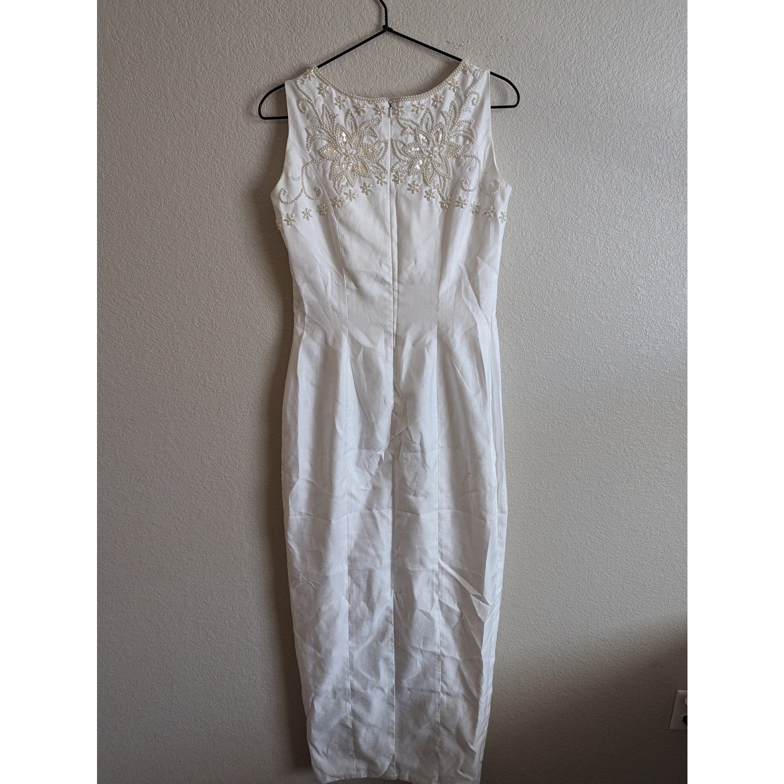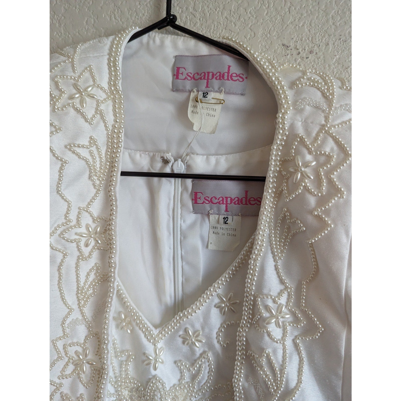 Vintage Y2K Escapades Womens Sz 12 White Satin Maxi Dress & Shrug Beaded Bridal
