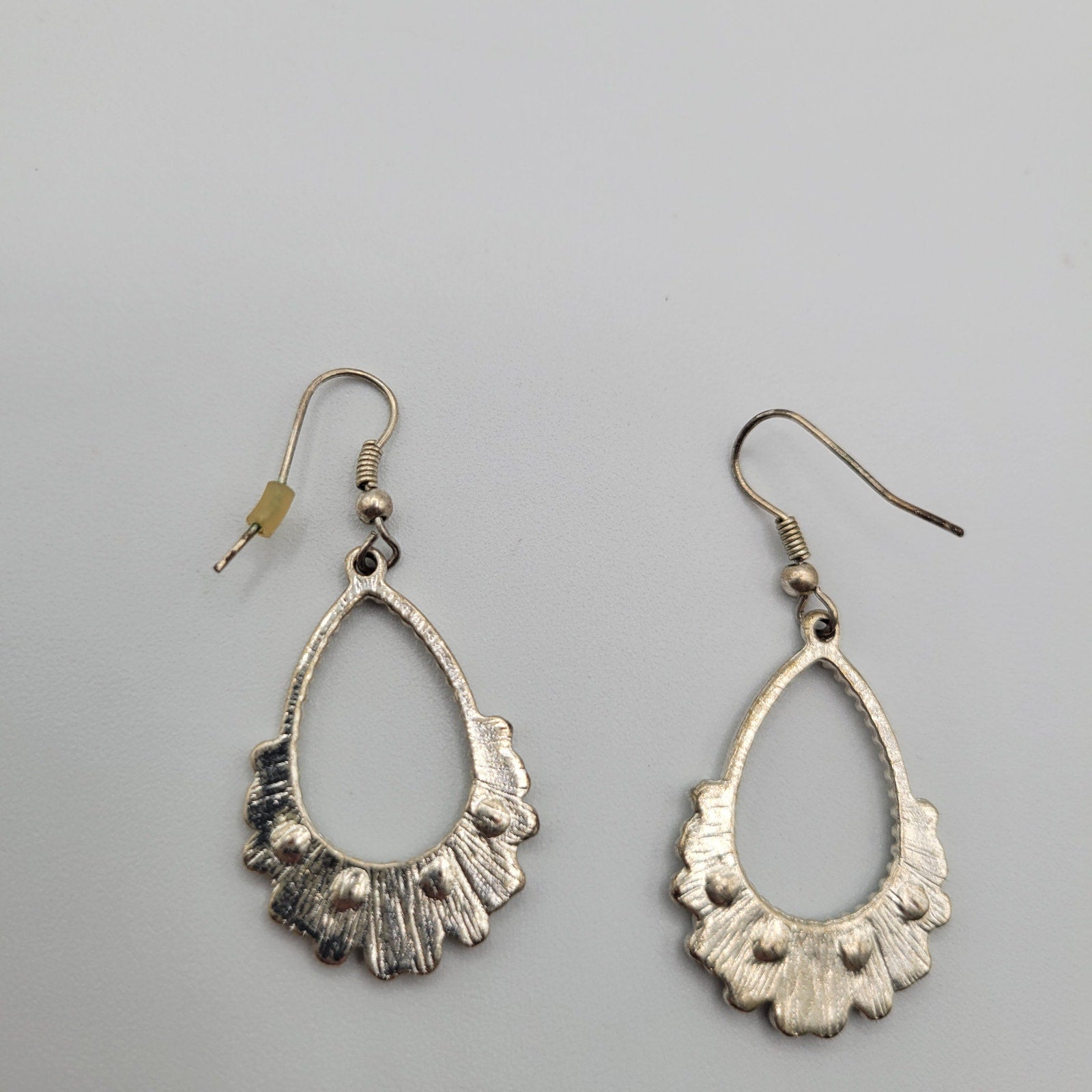 Vintage Y2K French Hook Dangle Earrings Silver Tone Green Rhinestones