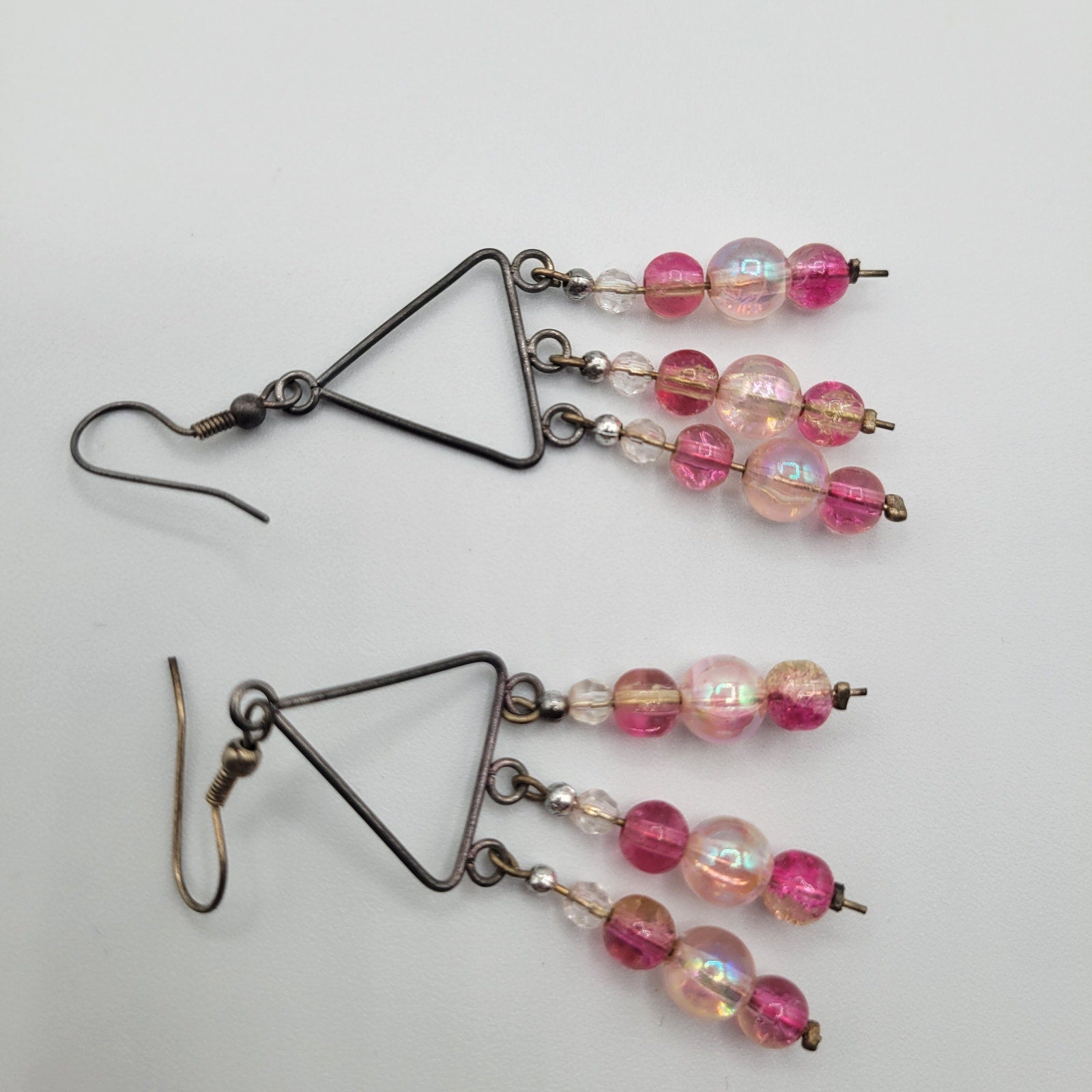 Vintage Y2K French Hook Earrings Geometric Dangle Pink Beaded