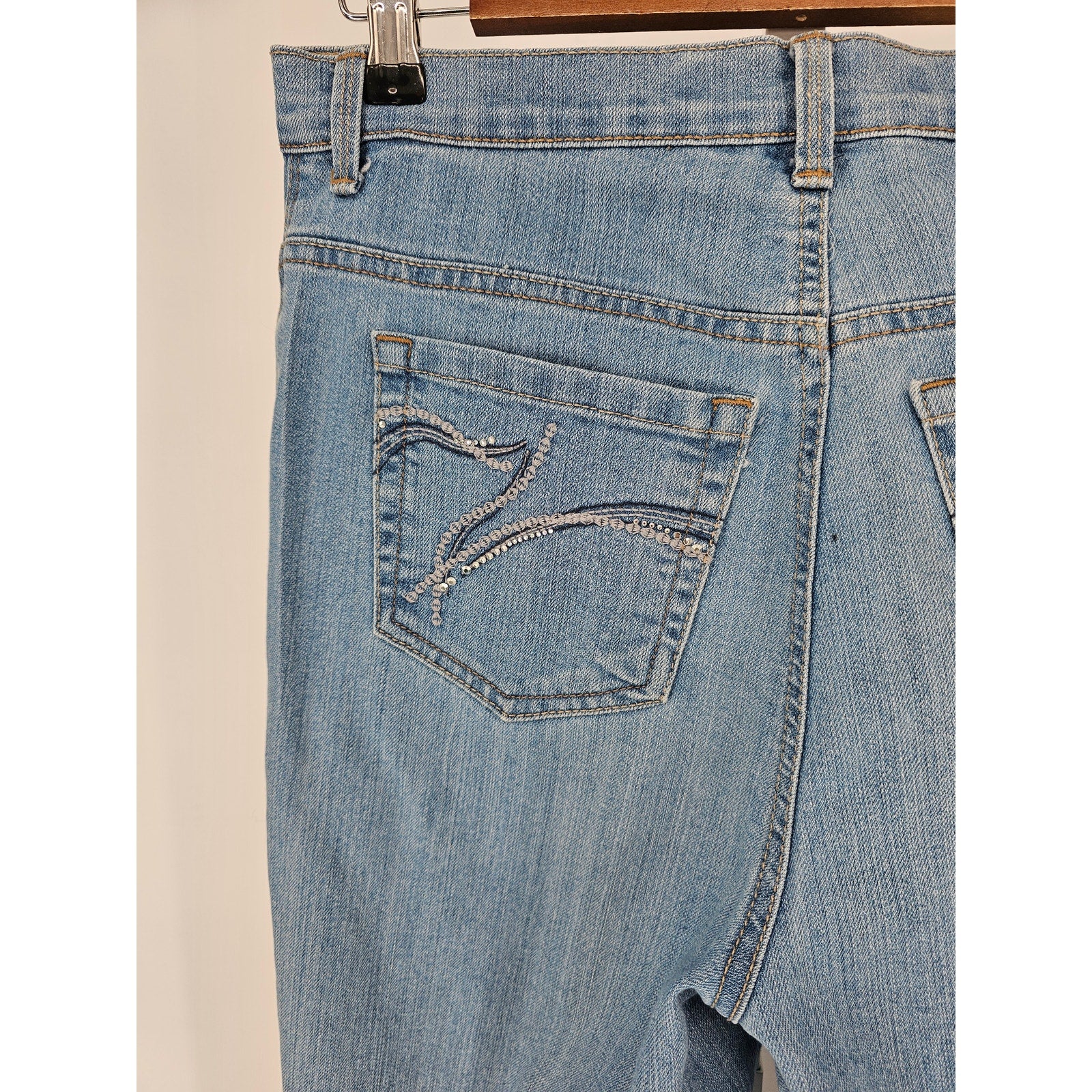 Elevate your fashion game with these vintage Y2K Gloria Vanderbilt straight leg jeans in a light wash blue. These women's jeans in size 8 are perfect for any casual or semi-formal event. The denim material is of high quality and will last you a long time. The color is stylish and versatile to match with any top. The jeans have a classic design with four pockets and a zip fly. These jeans are a statement piece for any wardrobe.