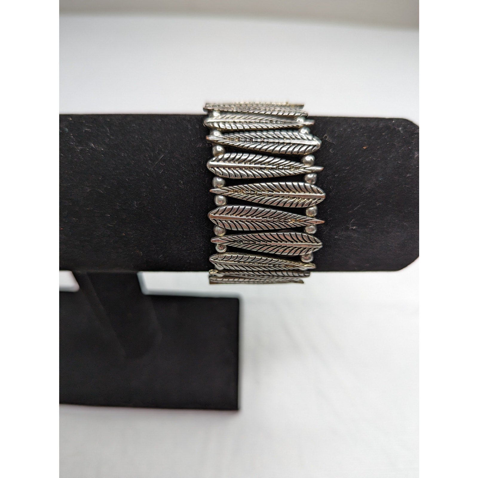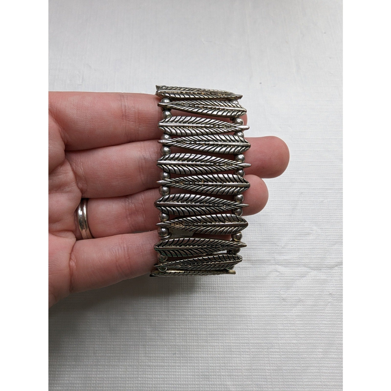 Vintage Y2K Gold Tone Feather Beaded Bangle Bracelet