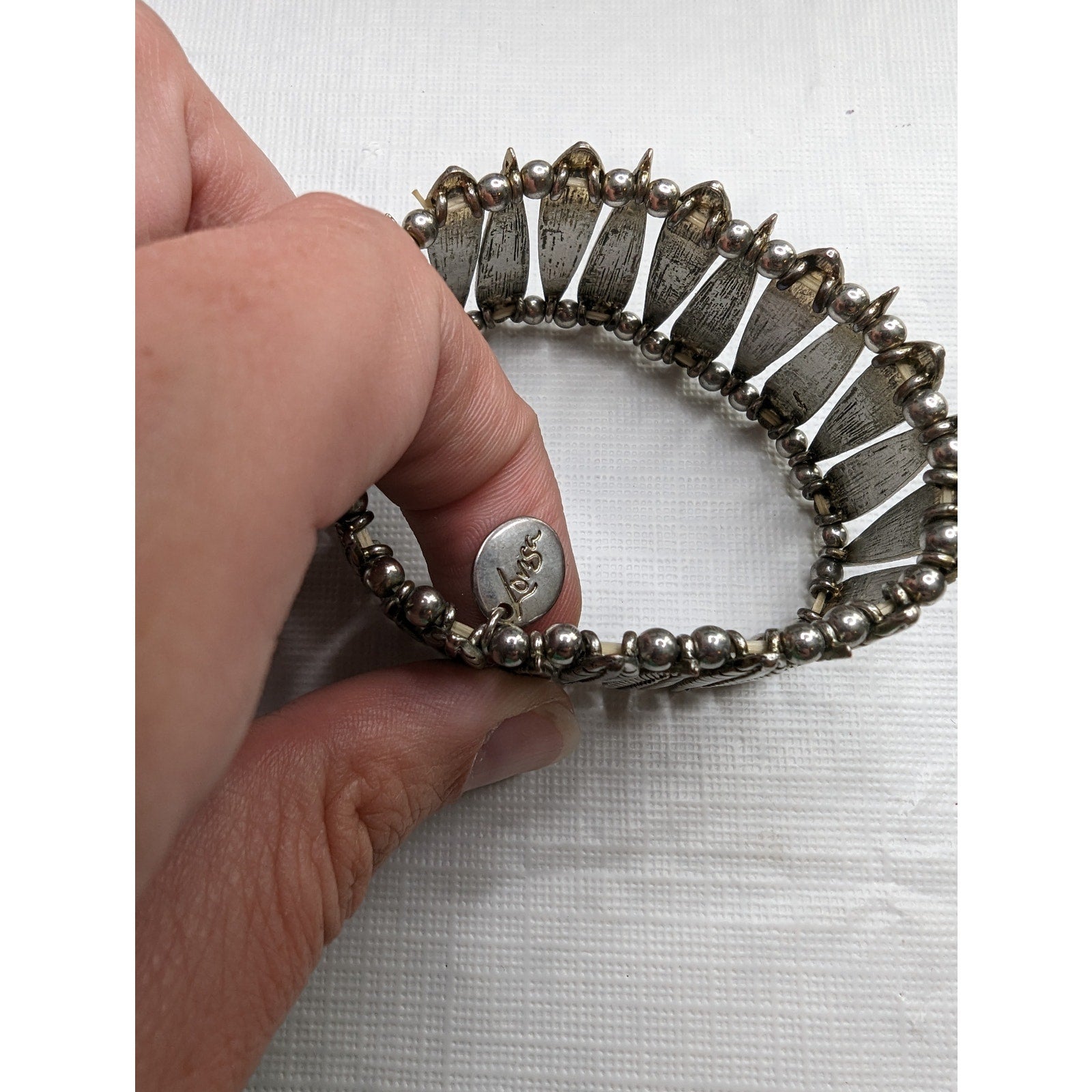 Add a touch of vintage glamour to your outfit with this stunning Y2K gold tone bangle bracelet adorned with delicate feathers and intricate beading. The perfect accessory for any occasion, this piece is sure to turn heads and spark conversation. Its unique design and attention to detail make it a must-have for any antique collector or fashion enthusiast.