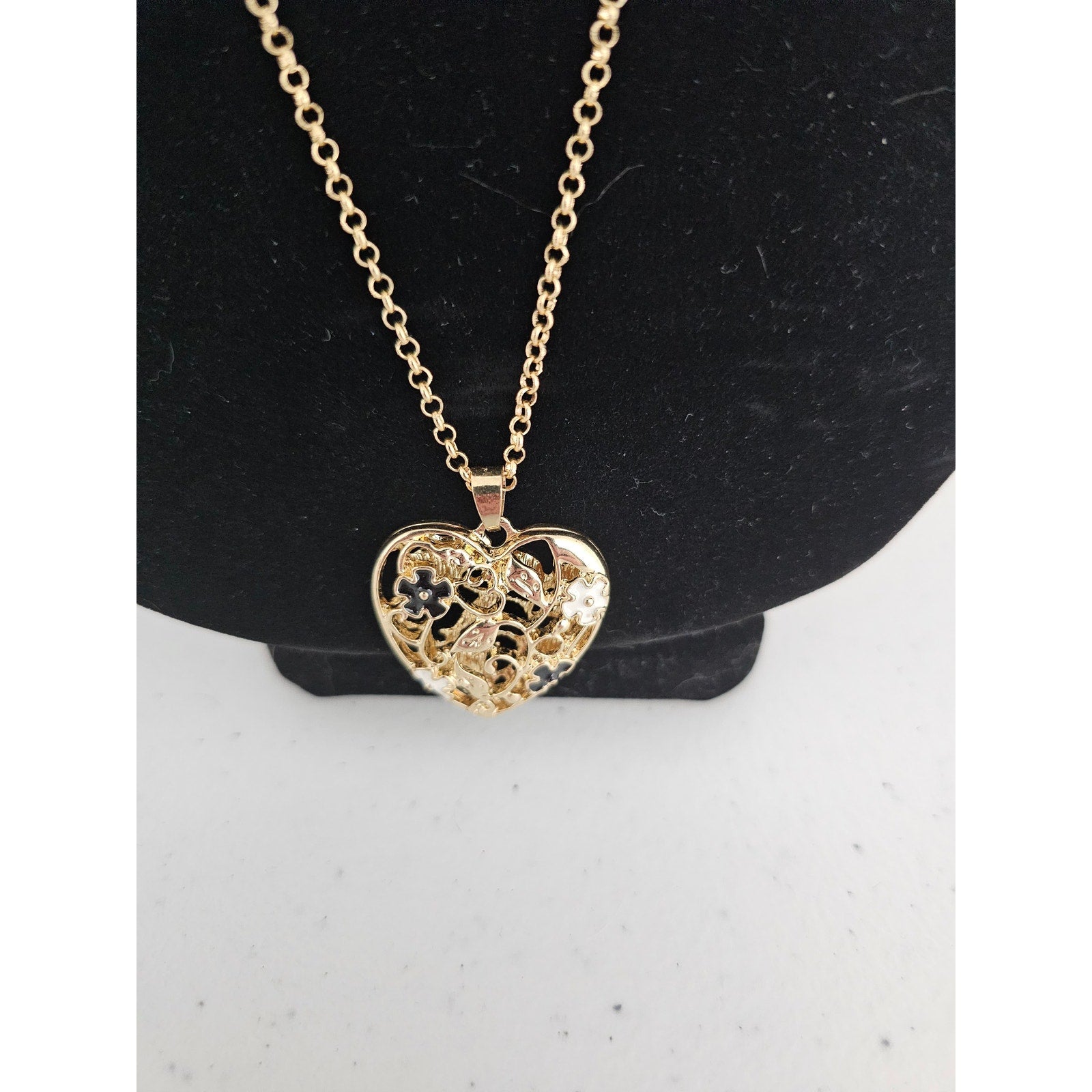 Vintage Y2K Gold Tone Pendant Necklace w/ Enamel Floral Details