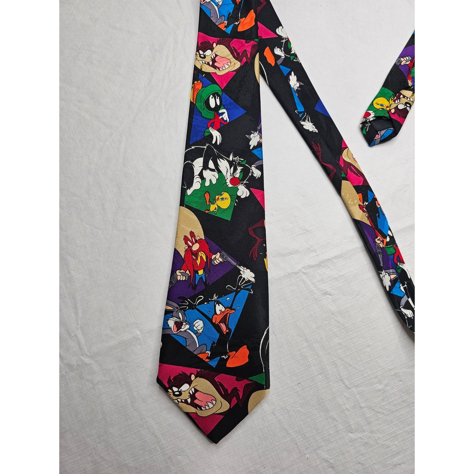 Add some fun to your wardrobe with this vintage Y2K Looney Tunes men's tie necktie! Featuring fan-favorite characters like Taz, Daffy, and Bugs Bunny, this tie is sure to make a statement. Perfect for any Looney Tunes fan or collector, this tie adds a pop of color and personality to any outfit. Made with high-quality materials, this vintage tie is a timeless piece that will never go out of style.