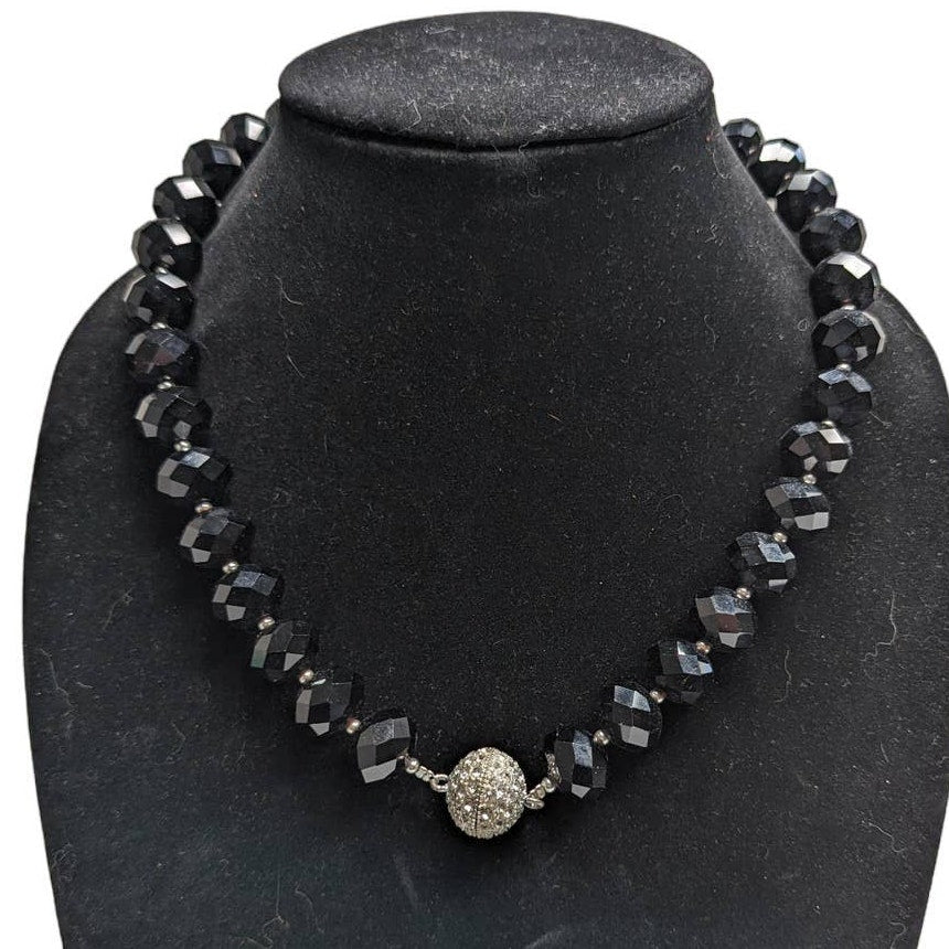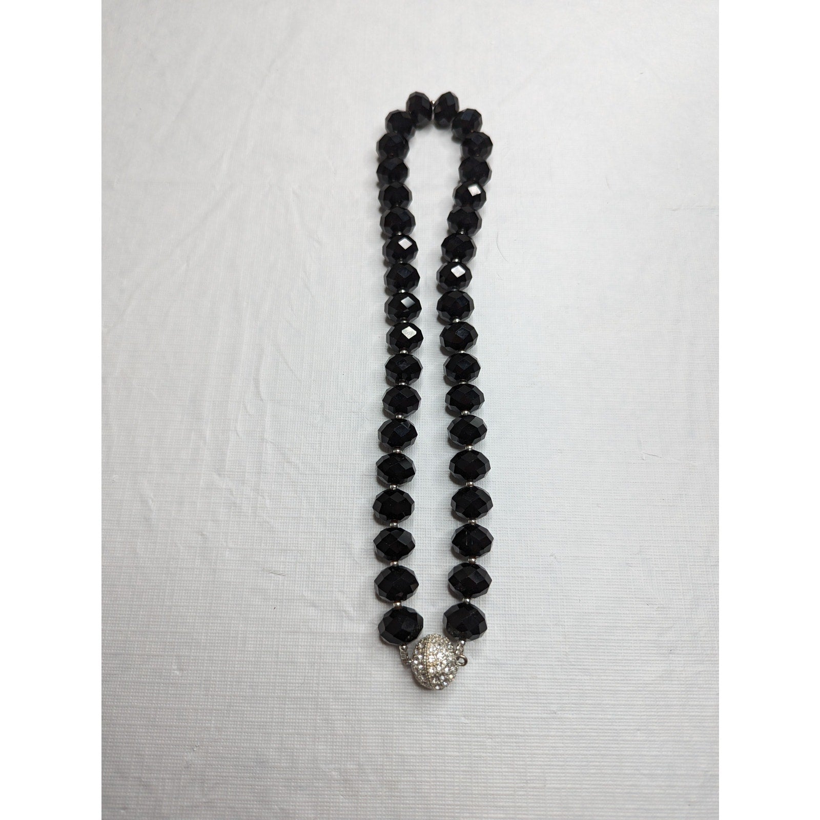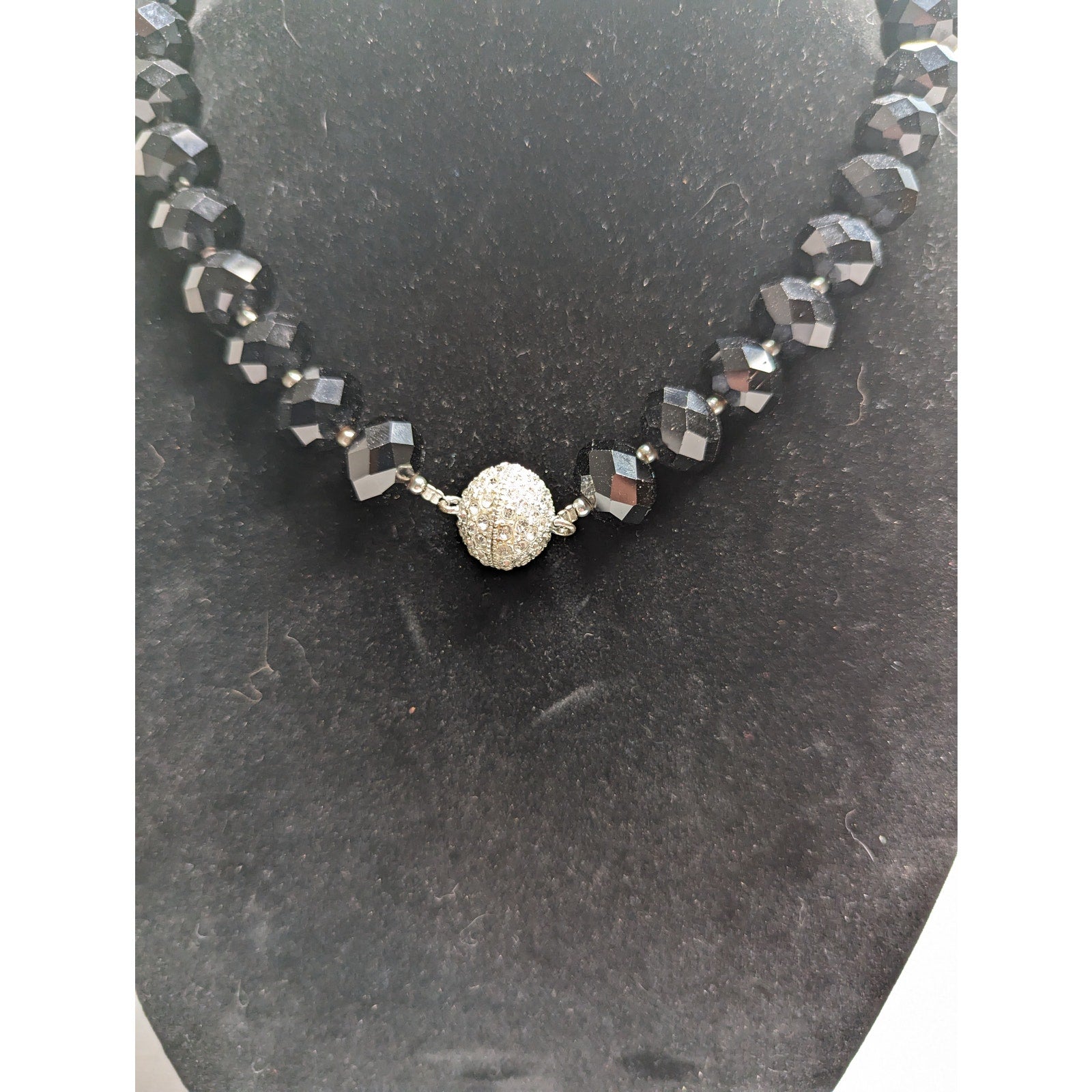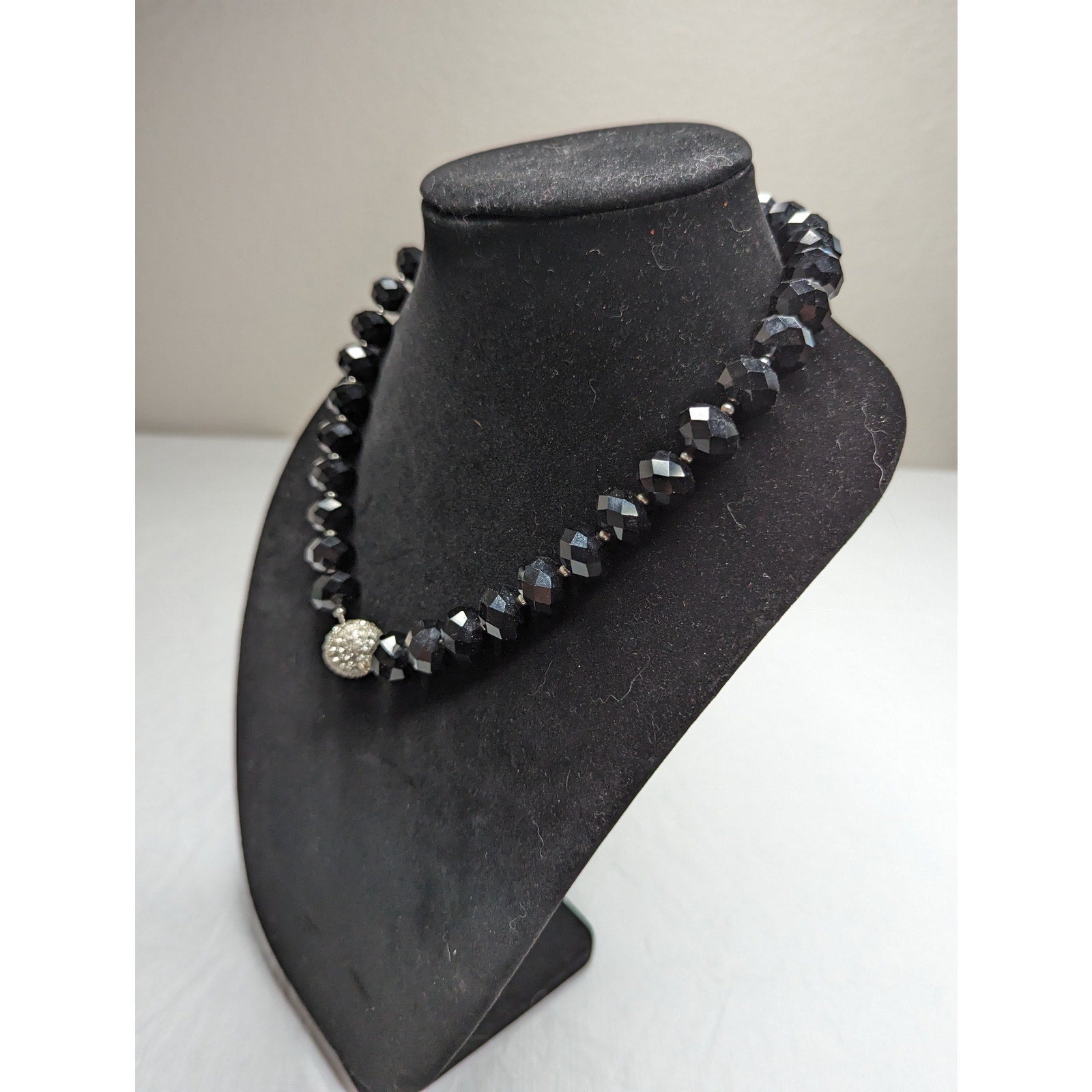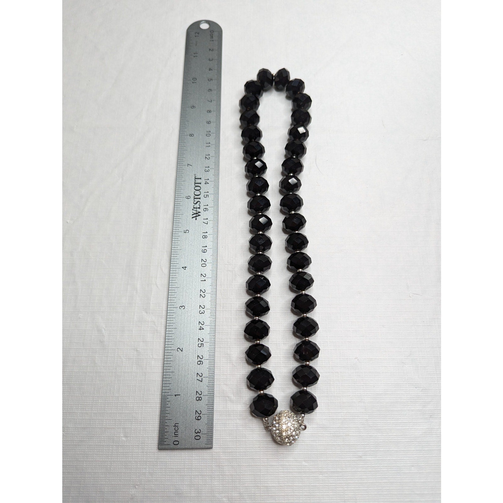 Vintage Y2K Magnetic Choker Necklace Black Beaded Rhinestone
