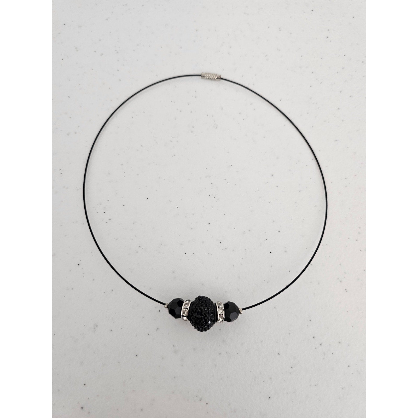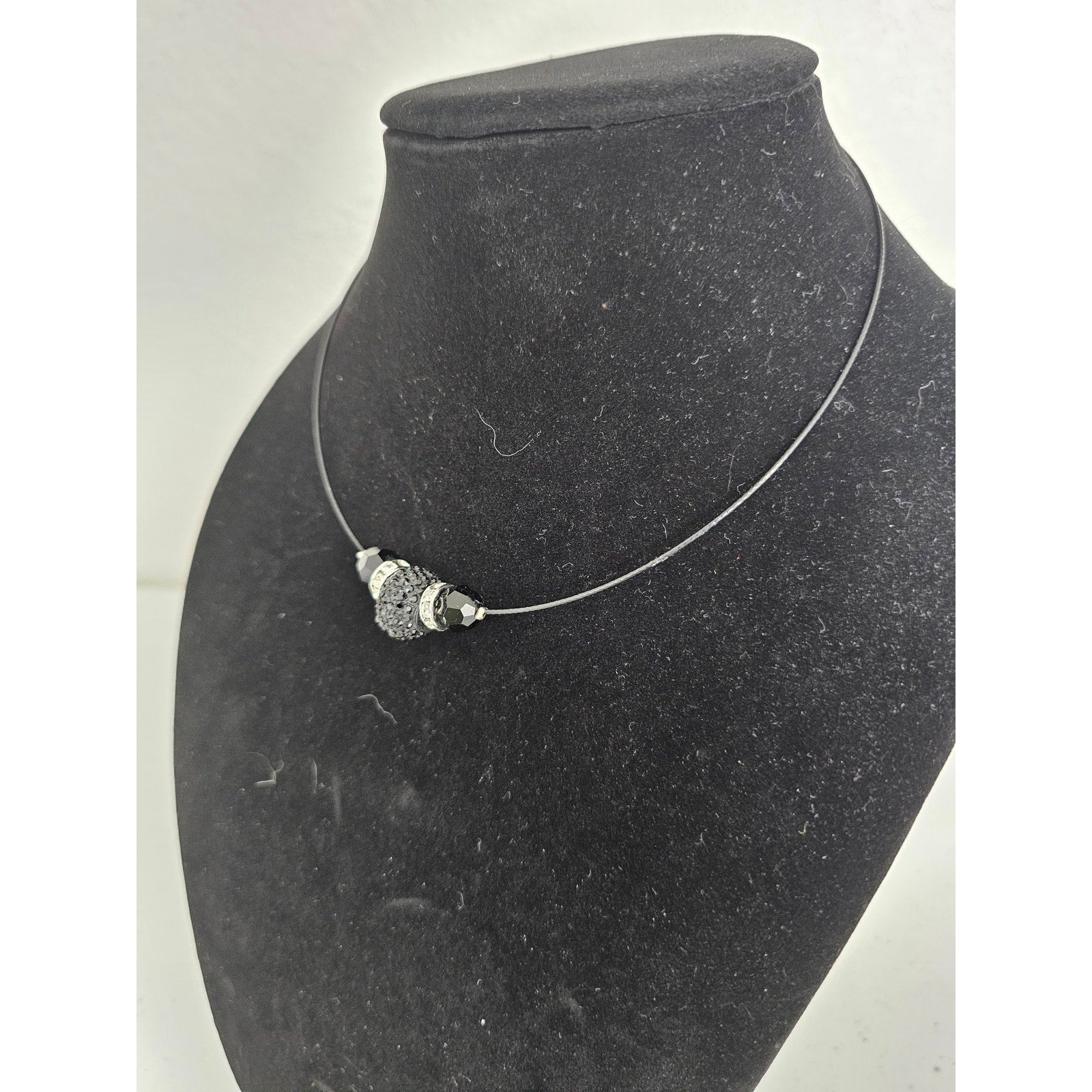 Vintage Y2K Metal Strand Beaded Necklace Black Silver Rhinestone