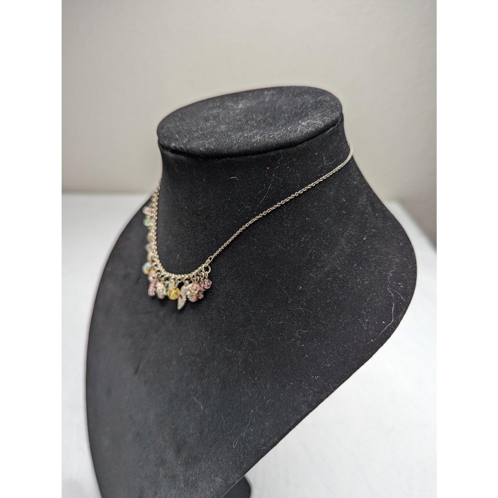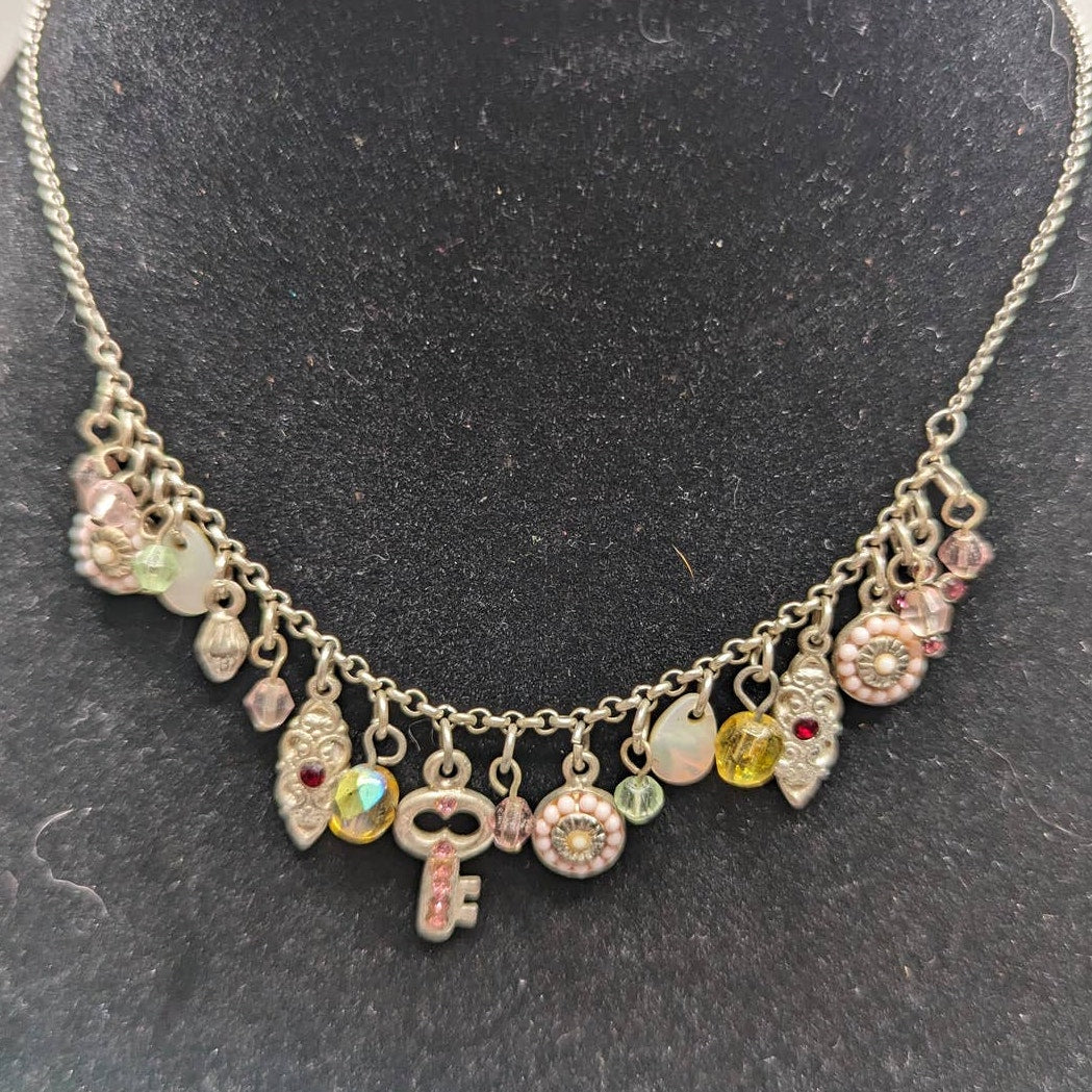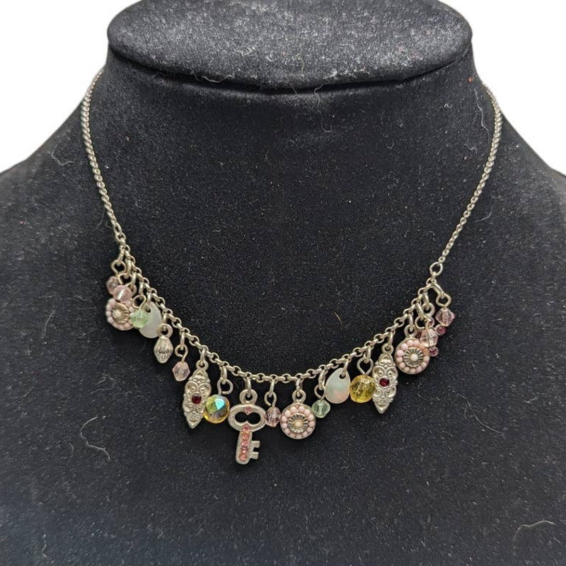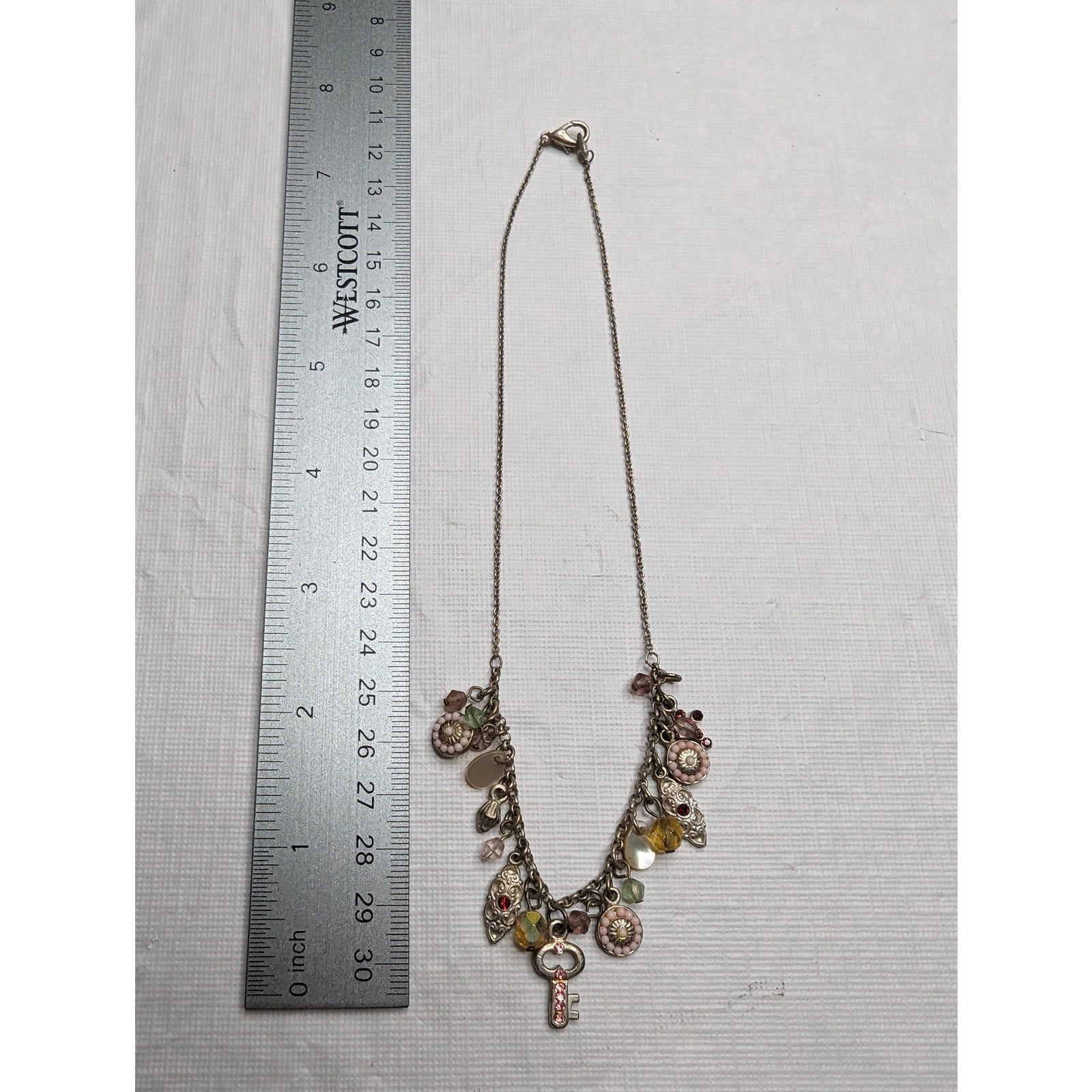 Vintage Y2K Multi Pendant Dainty Necklace Key Pink and Silver